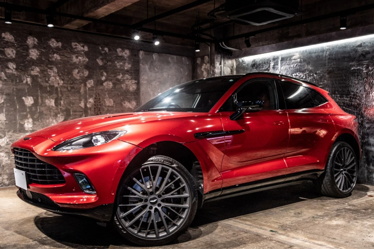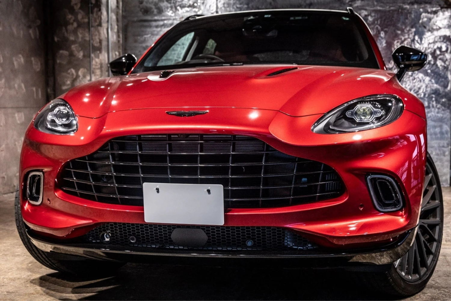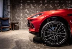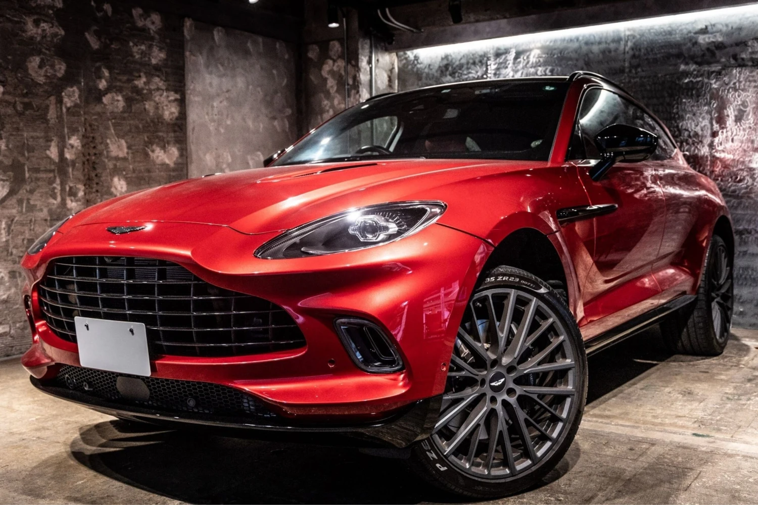 The Aston Martin DBX Base is an off-road SUV powered by a 4000cc gasoline engine with a 4WD drivetrain, finished in Hyper Red and specified with exterior and interior appearance packages.