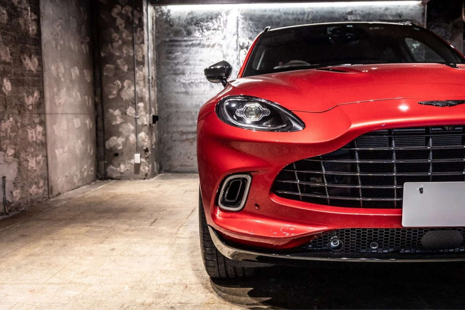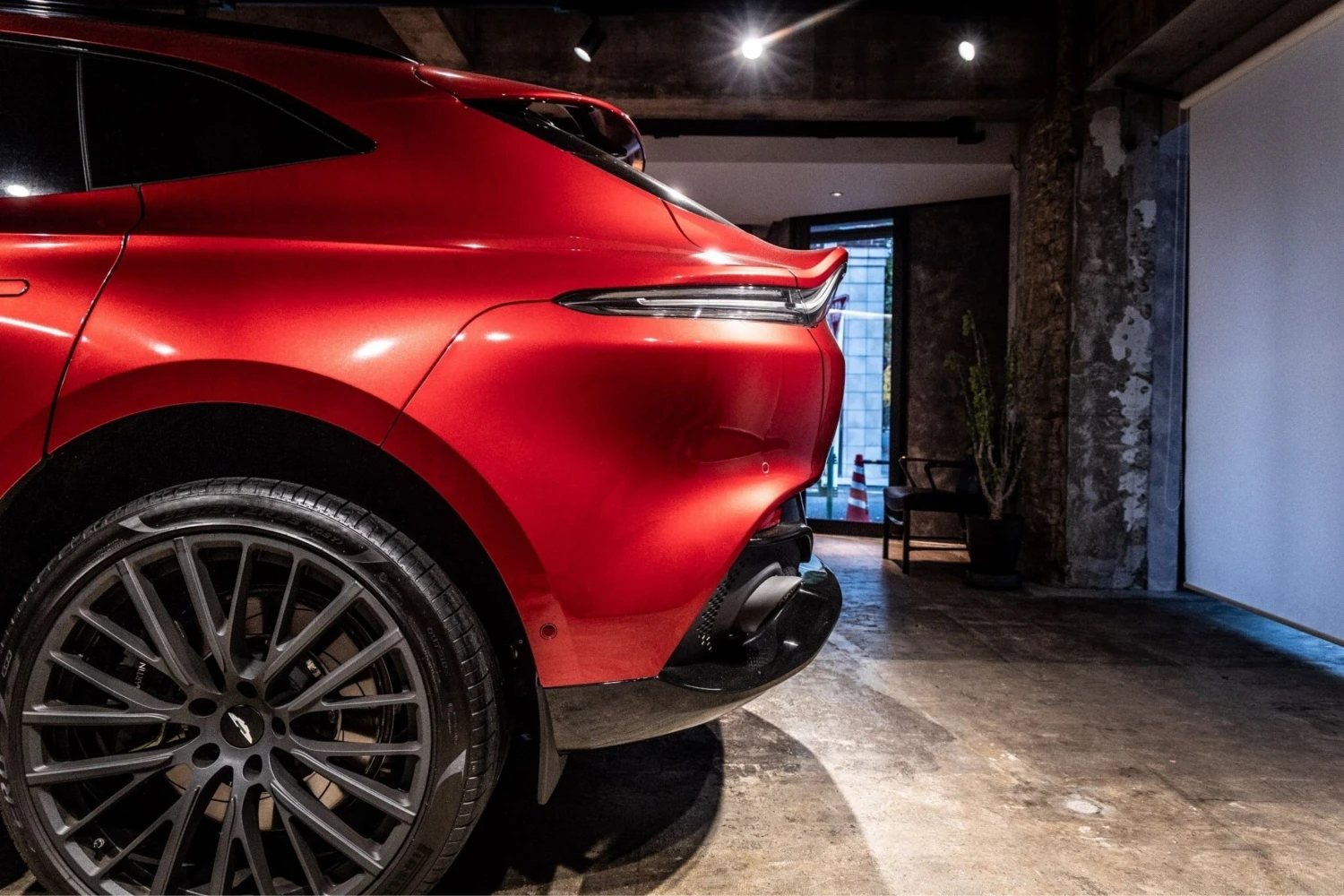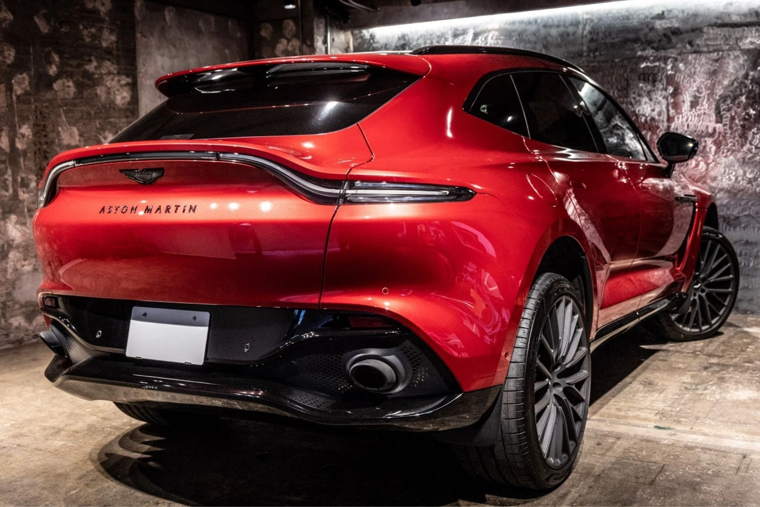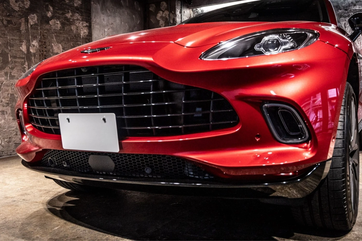 The Aston Martin DBX Base is an off-road SUV powered by a 4000cc gasoline engine with a 4WD drivetrain, finished in Hyper Red and specified with exterior and interior appearance packages.