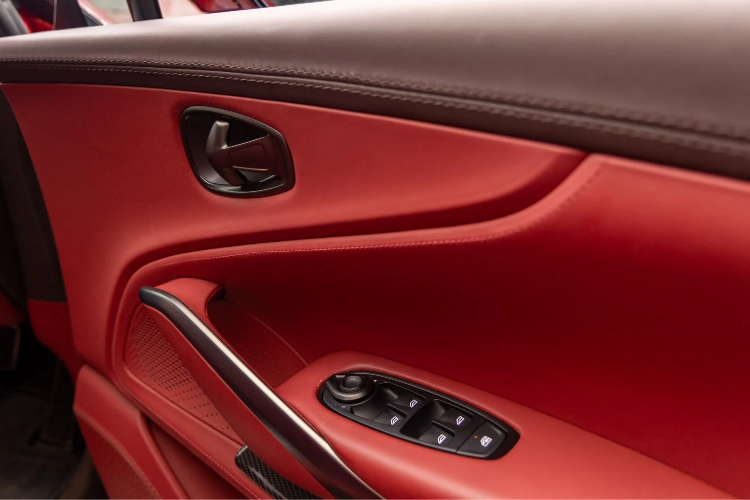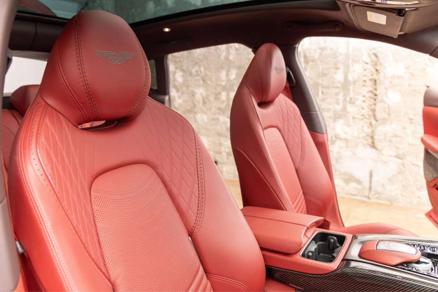 Finished in Hyper Red with the Hyper Red Exterior Pack (Gloss Black) and 23-inch Alloy Wheels, the DBX presents Aston Martin styling with adaptive LED headlights, Sunroof/Glass Roof, roof rails and aluminum wheels. Exterior appointments include gloss-black trim elements and carbon interior/exterior accents that align with the specification.