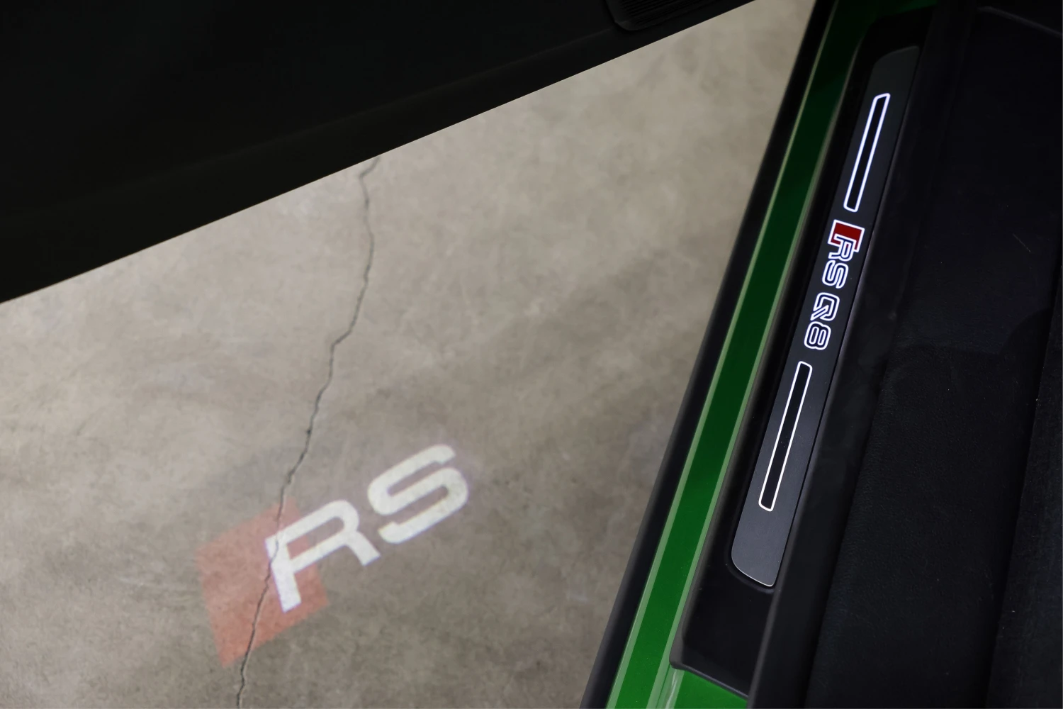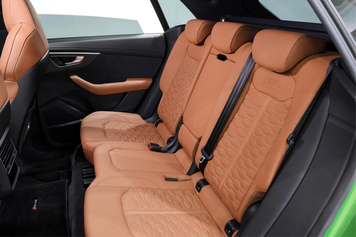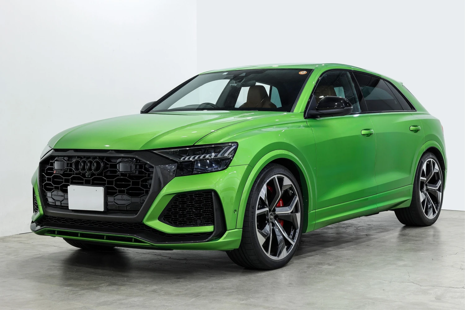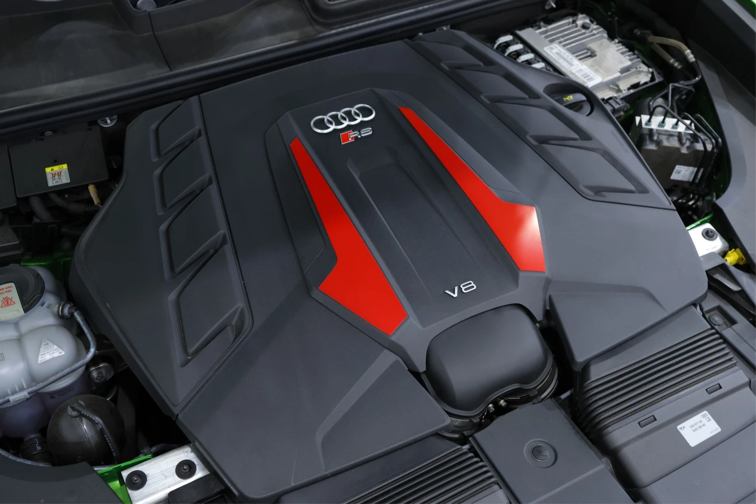 Finished in striking Java Green Metallic, the RS Q8 stands out with its aggressive and sporty design. Adaptive headlights and aluminum wheels complement the bold exterior styling.