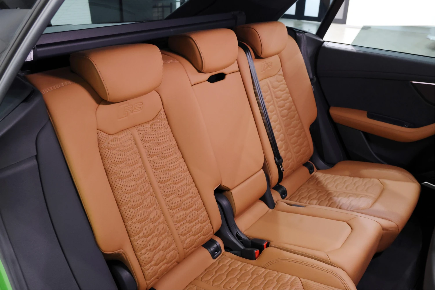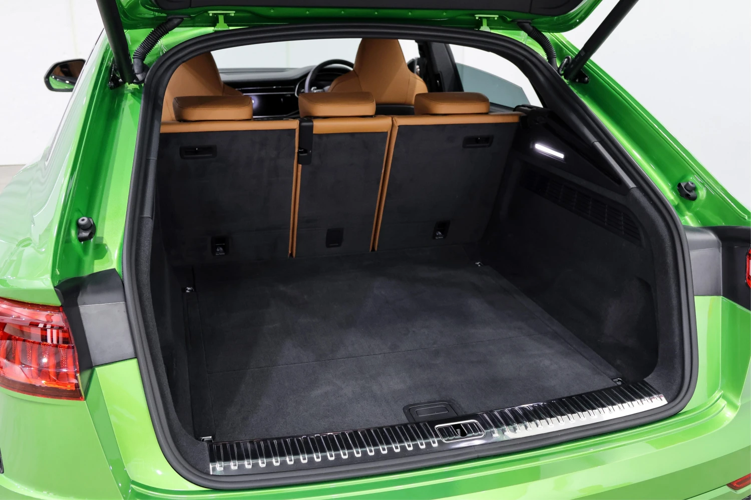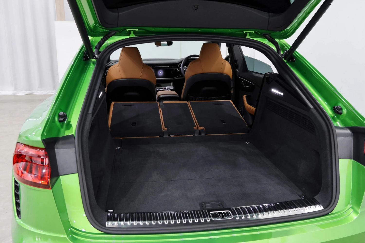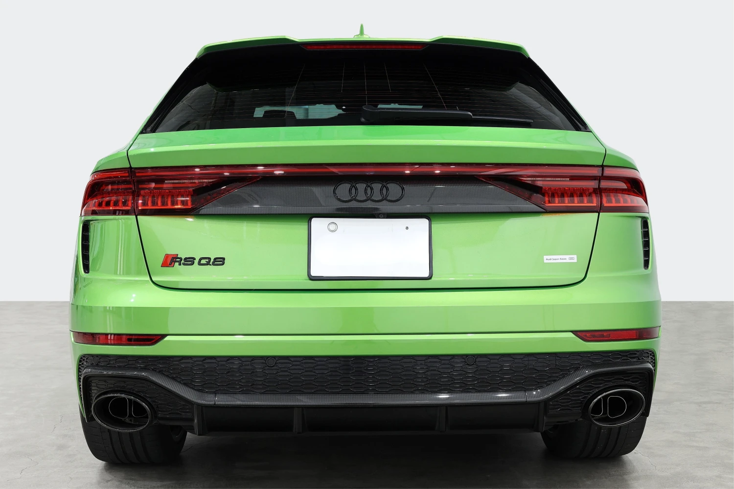 Finished in striking Java Green Metallic, the RS Q8 stands out with its aggressive and sporty design. Adaptive headlights and aluminum wheels complement the bold exterior styling.