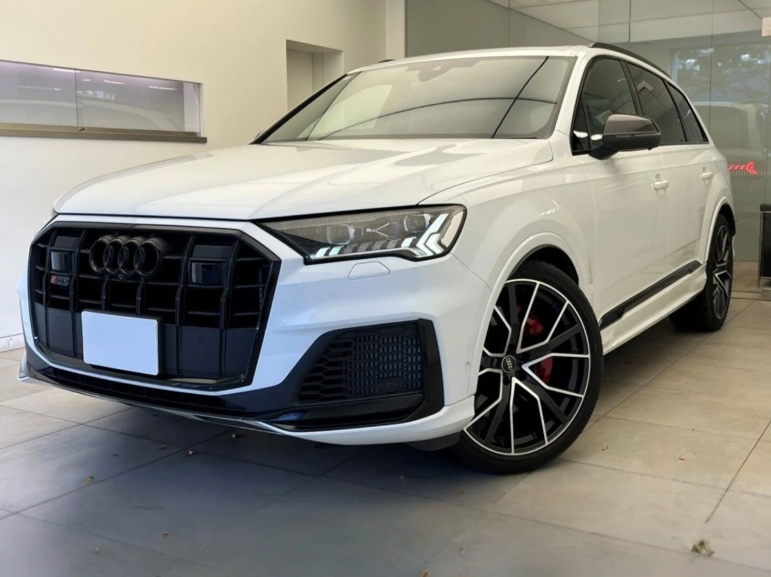 Finished in Glacier White M, the SQ7 features a bold and athletic design.