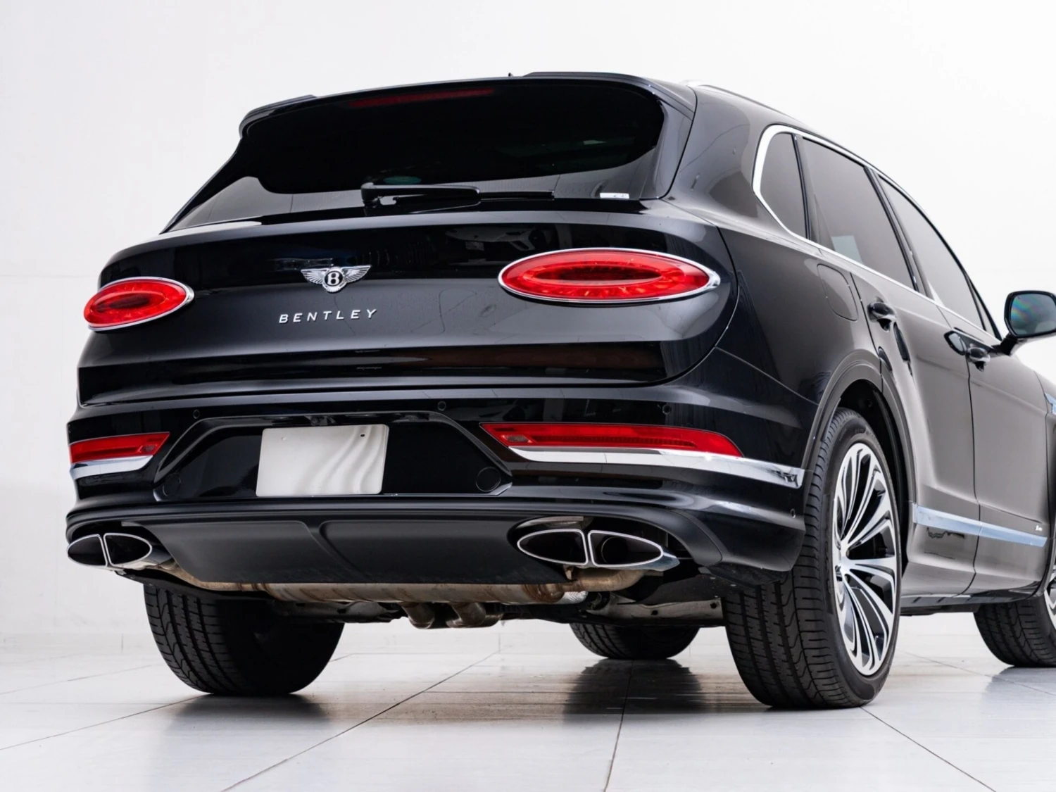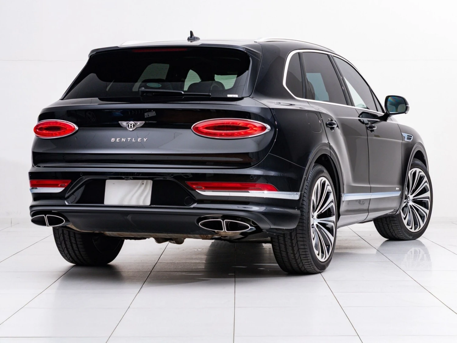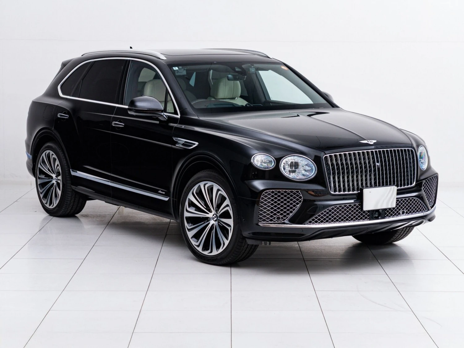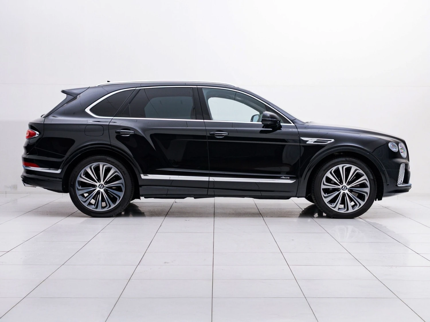 Finished in black, the SUV features adaptive LED headlights, a panoramic sunroof, and aluminum wheels. The elegant and powerful exterior design highlights the distinctive Bentley character.
