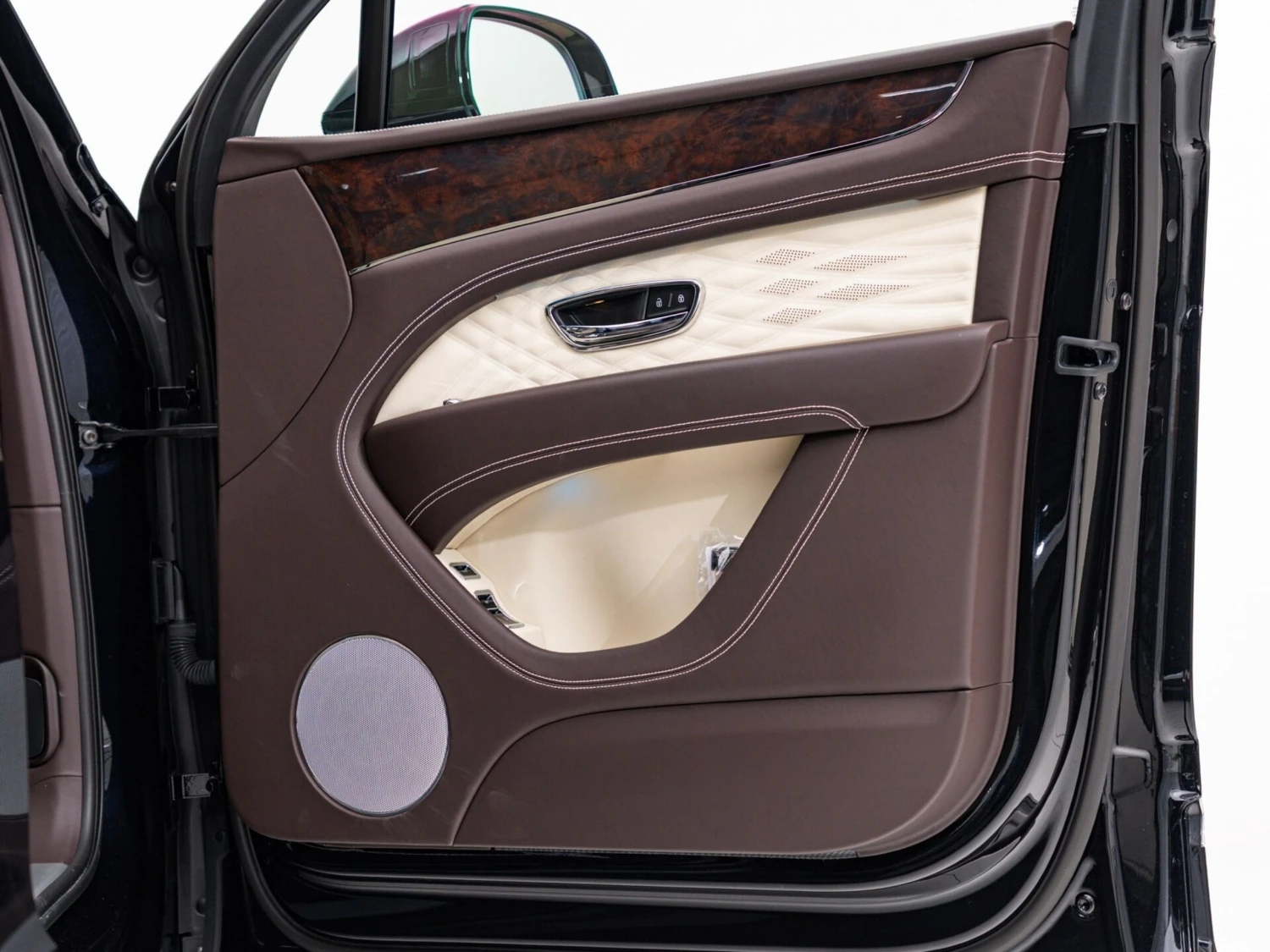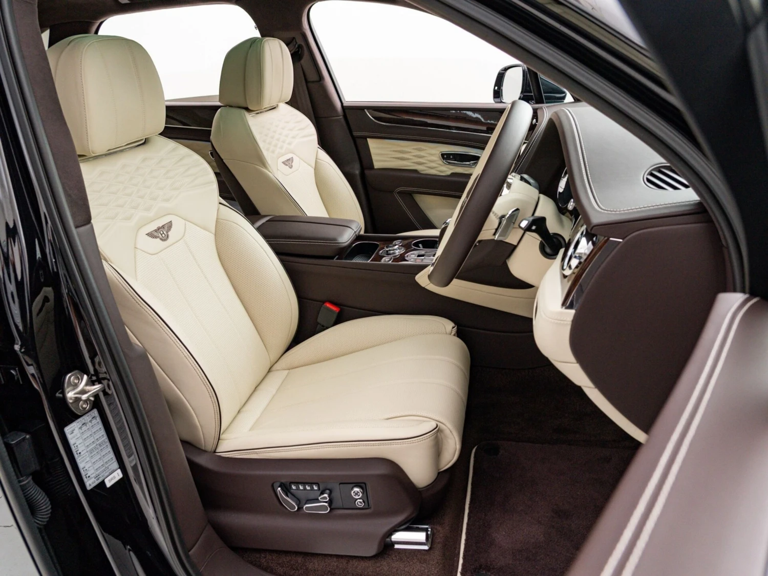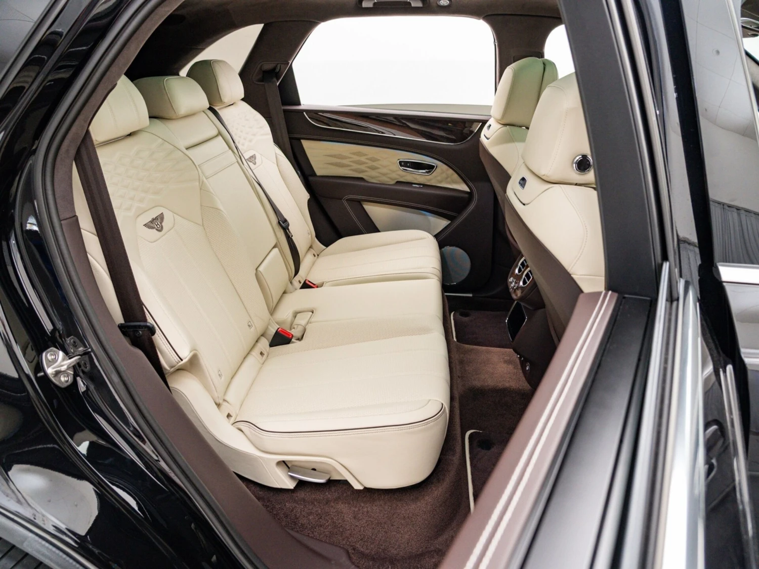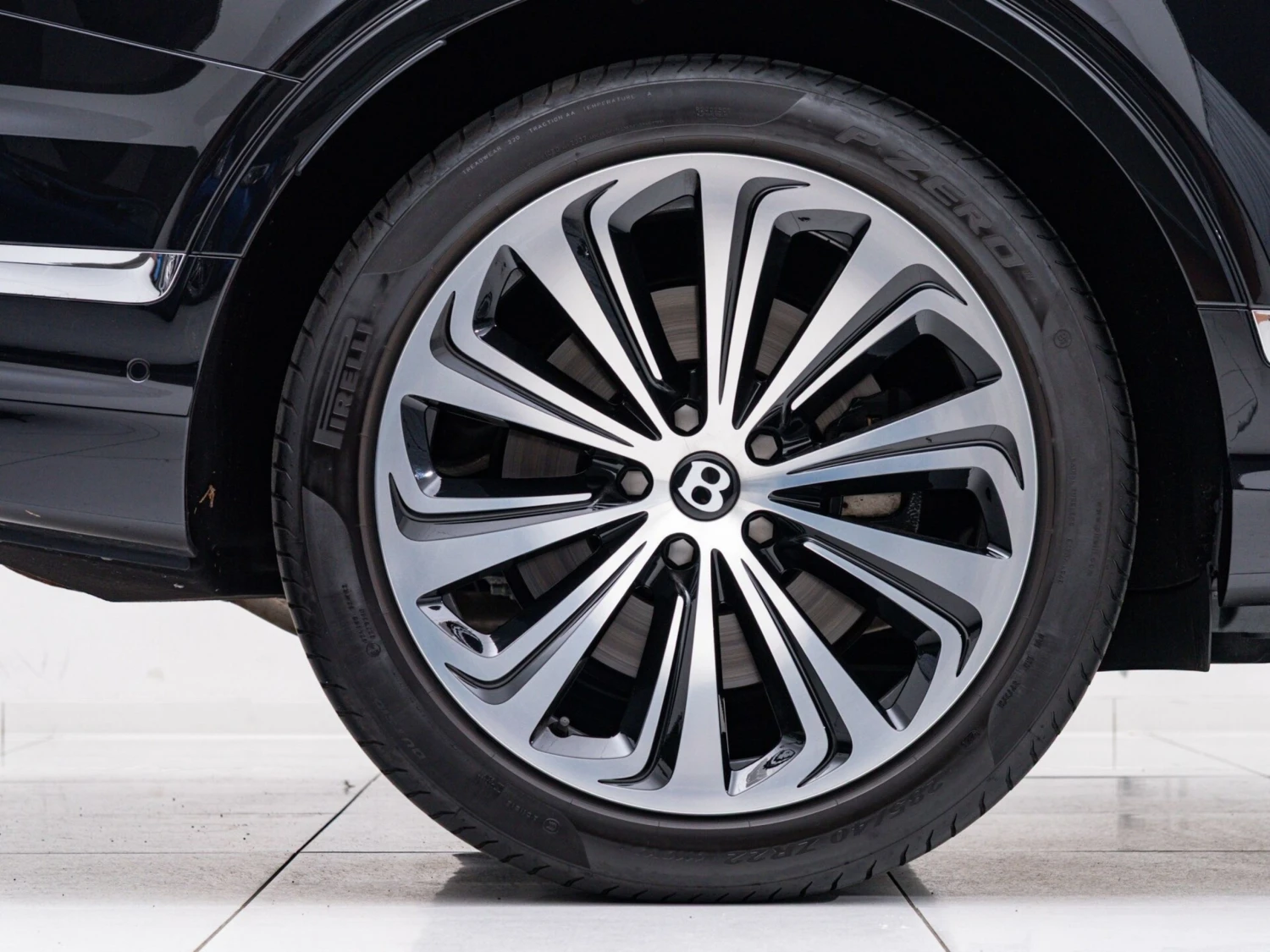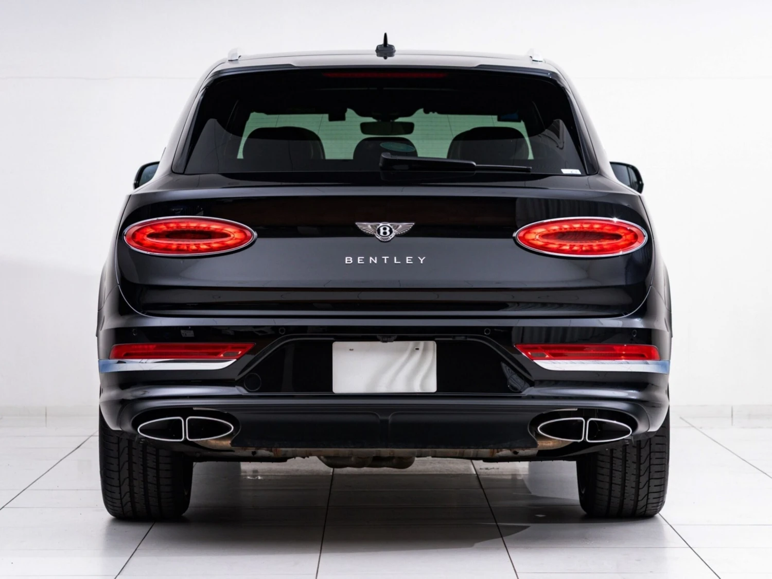 Finished in black, the SUV features adaptive LED headlights, a panoramic sunroof, and aluminum wheels. The elegant and powerful exterior design highlights the distinctive Bentley character.