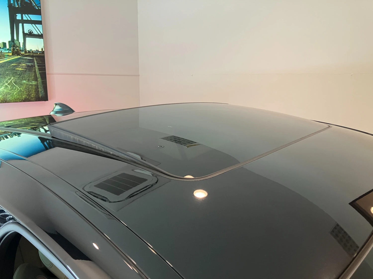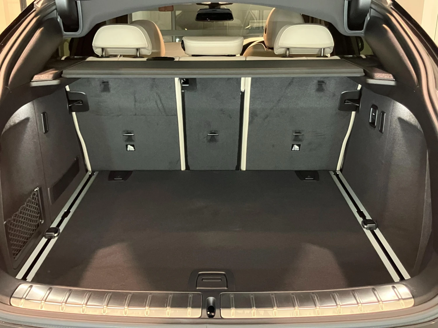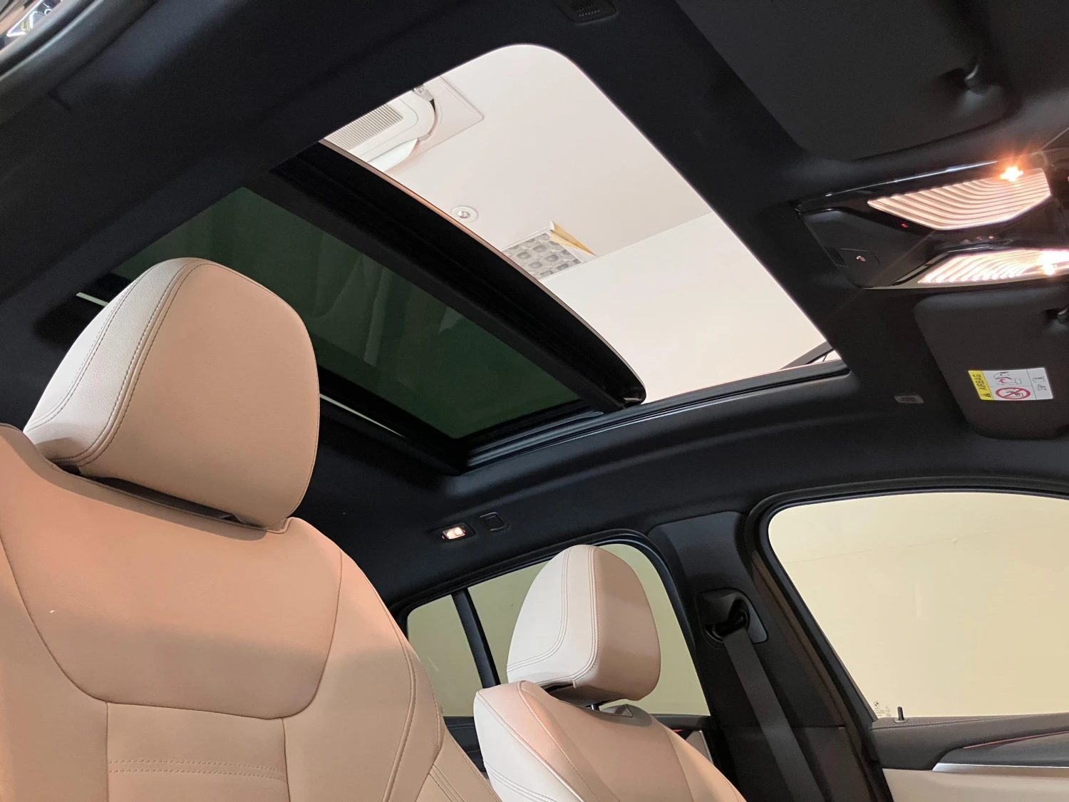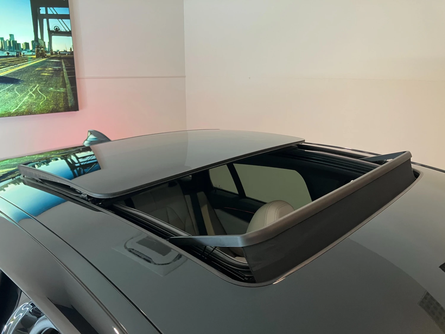 The cabin seats 5 passengers and features a driver-focused cockpit with electric and heated seats. Dual-zone climate control, genuine leather trim, and a panoramic glass roof create a refined and comfortable interior atmosphere.