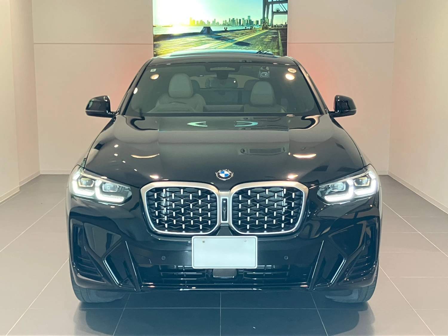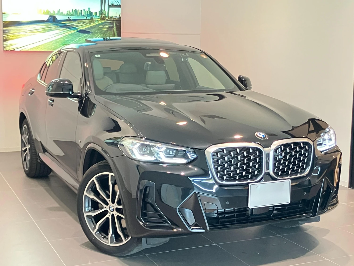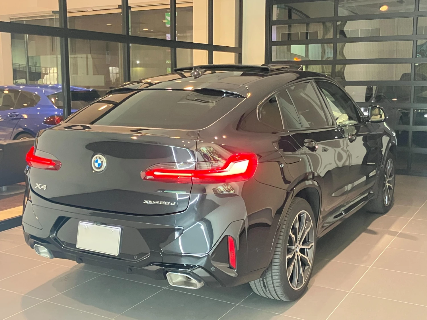 The Black Sapphire Metallic body is complemented by M Sport aerodynamic elements, LED headlights, aluminum wheels, and sporty design details. The coupe-style silhouette gives the X4 a distinctive and dynamic road presence.