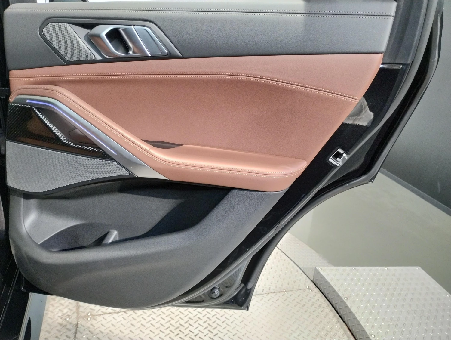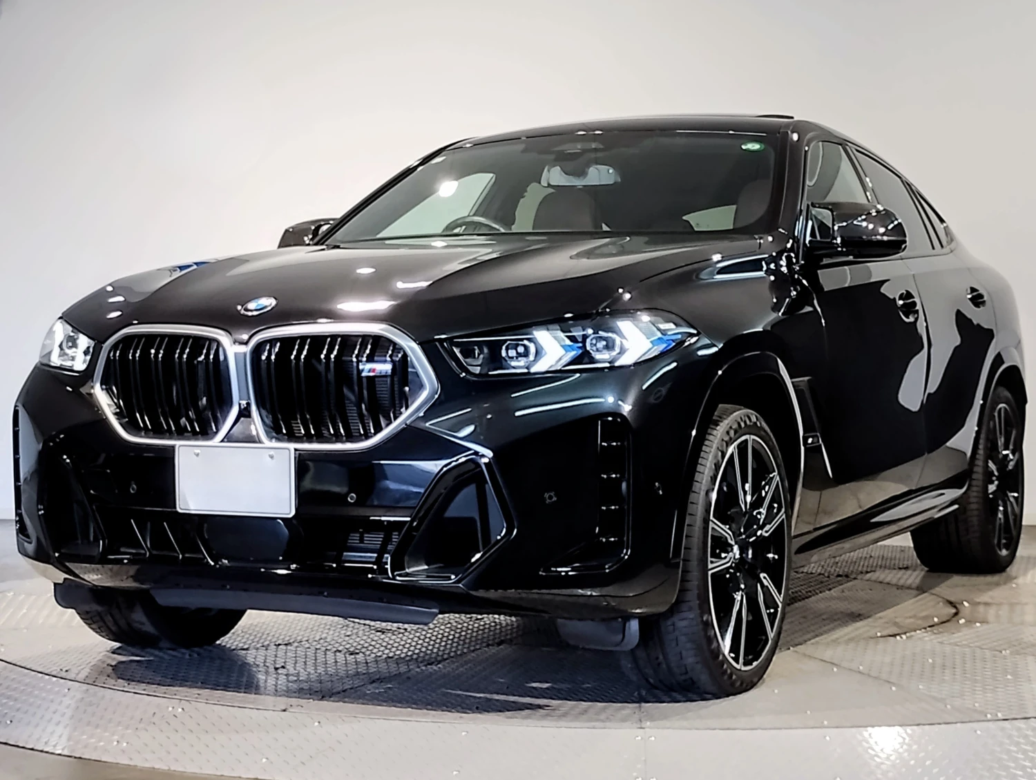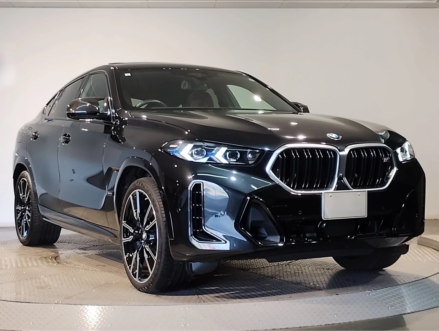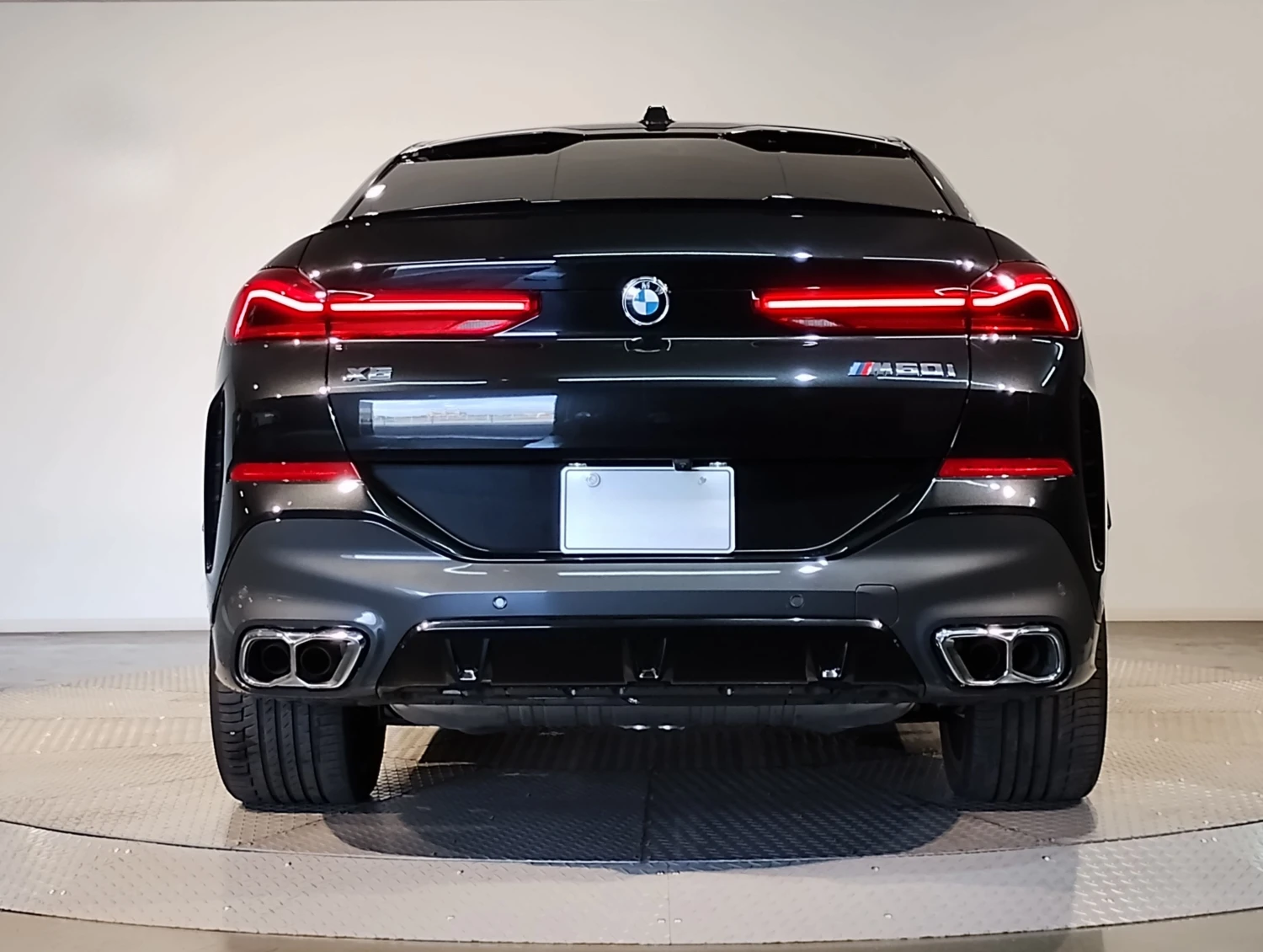 The Black Sapphire Metallic finish highlights the coupe-SUV silhouette. M Carbon Fiber mirrors and trim, aerodynamic body kit, and stylish aluminum wheels reinforce the aggressive and premium character of the BMW X6 M60i.