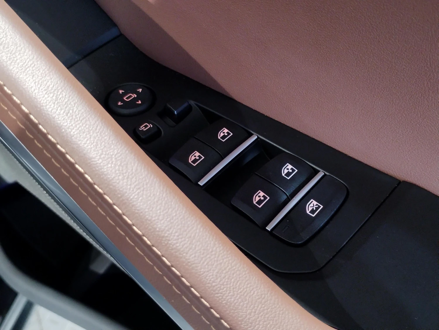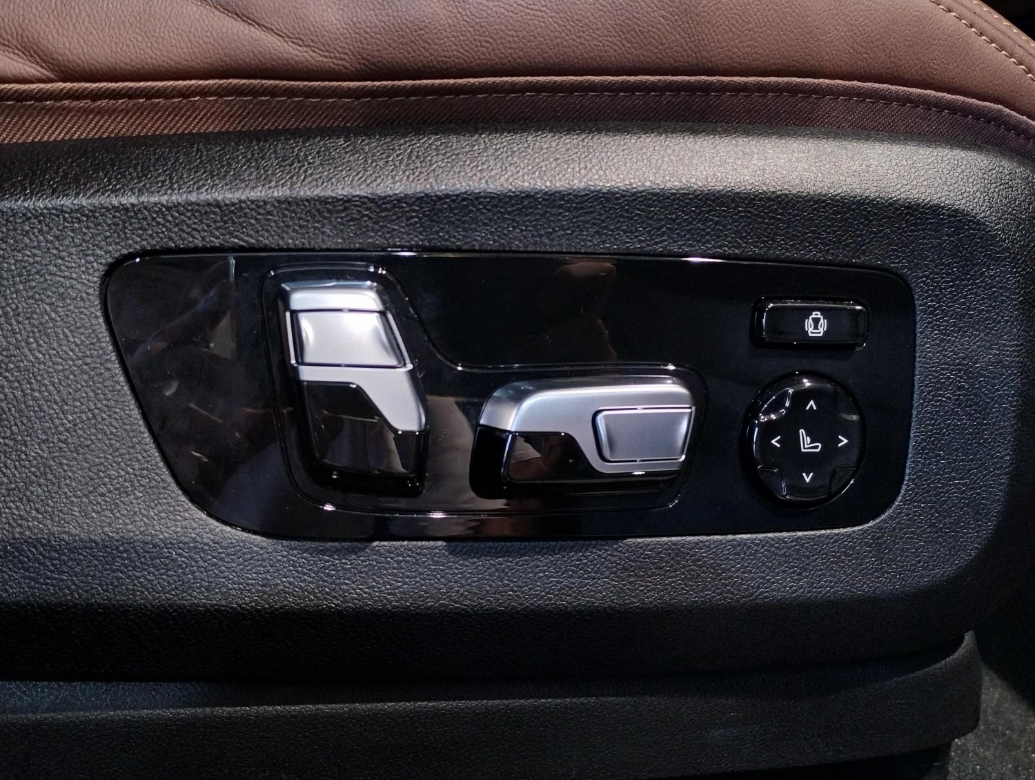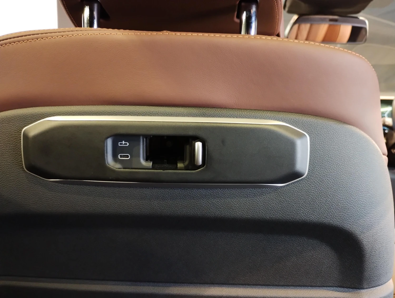 The cabin features premium coffee brown genuine leather seats with electric adjustment and heating. A Head-Up Display, HDD navigation, and advanced infotainment with Apple CarPlay and Android Auto provide convenience and connectivity, while the glass sunroof enhances the sense of space and light.