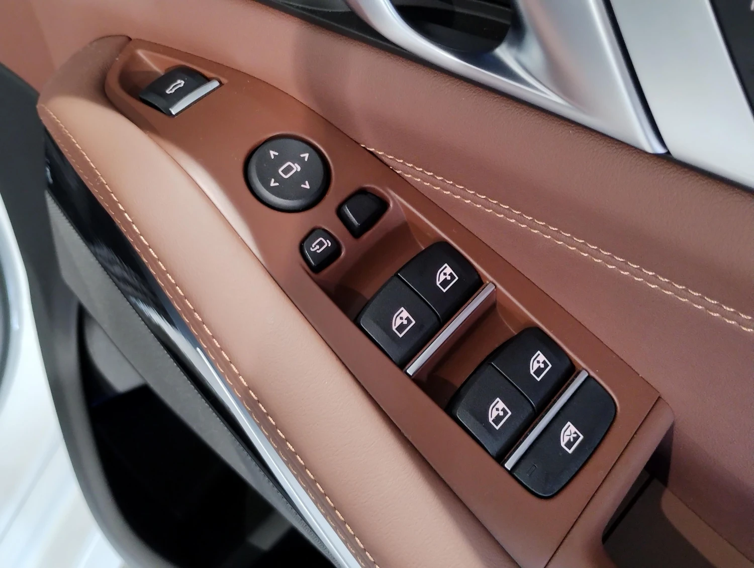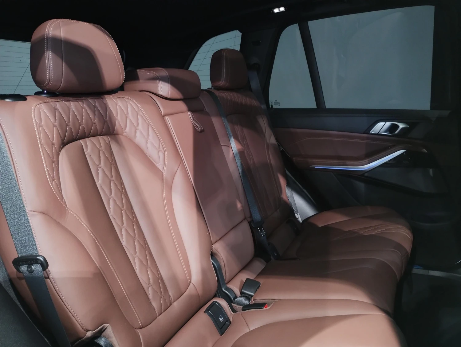 The interior is finished with genuine leather and offers three-row seating for up to seven passengers.