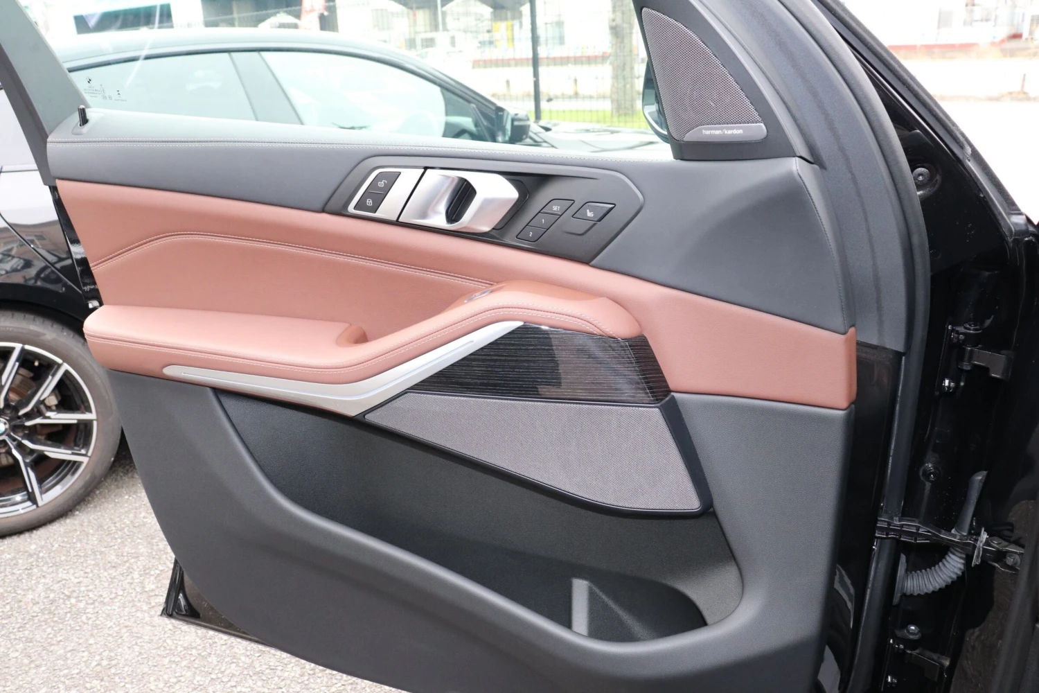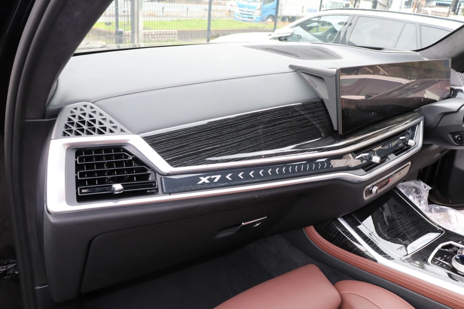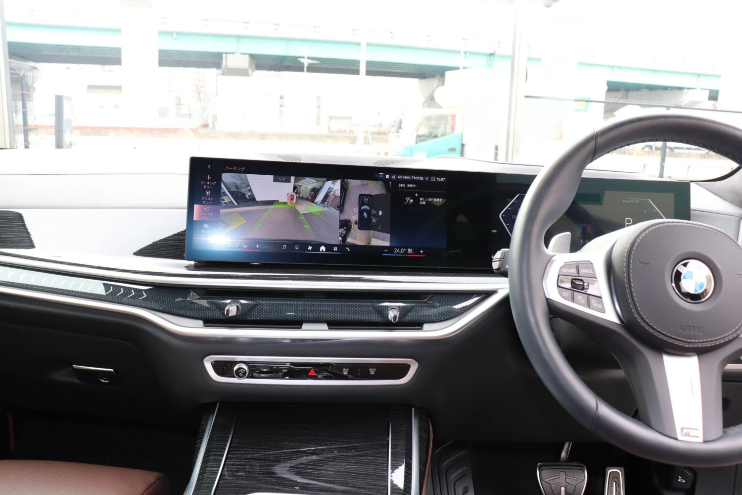 SUV / Cross-country, 4WD (xDrive), 3.0L Diesel Turbo (3000cc) with hybrid system, 8-speed automatic transmission (AT with manual mode), Right-hand drive, 7 seats (3-row), 5 doors, Black Sapphire Metallic, M Sport Package, M Sport Package Pro, Sky Lounge panoramic sunroof, Air suspension, Adaptive cruise control, Lane Keep Assist, Collision mitigation braking, Blind Spot Monitor, Parking Assist, All-around (360°) camera, Front/Side/Rear cameras, Obstacle sensors, ABS, Power steering, Anti-skid system, Hill Descent Control, Idling stop, Anti-theft system, Adaptive LED headlights, Roof rails, Aluminum wheels, Electric seats, Heated seats, Seat air conditioning, Front massage seats, Genuine brown leather interior, Head-Up Display (HUD), Harman Kardon premium sound system, Navigation system (HDD), Full-segment TV, Display Audio (Apple CarPlay / Android Auto), ETC, Keyless entry & smart key, Power windows