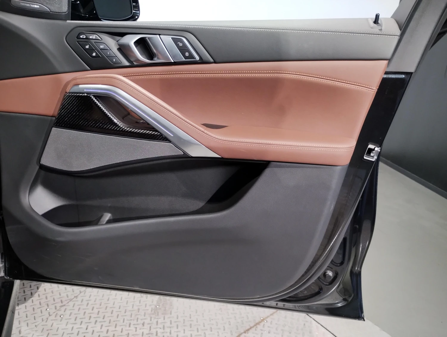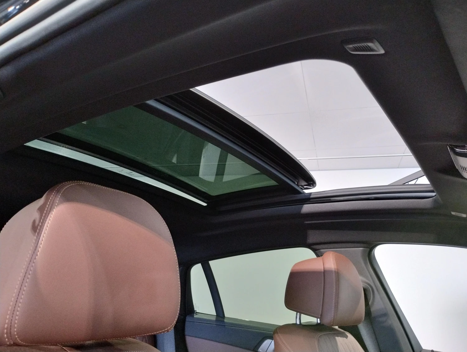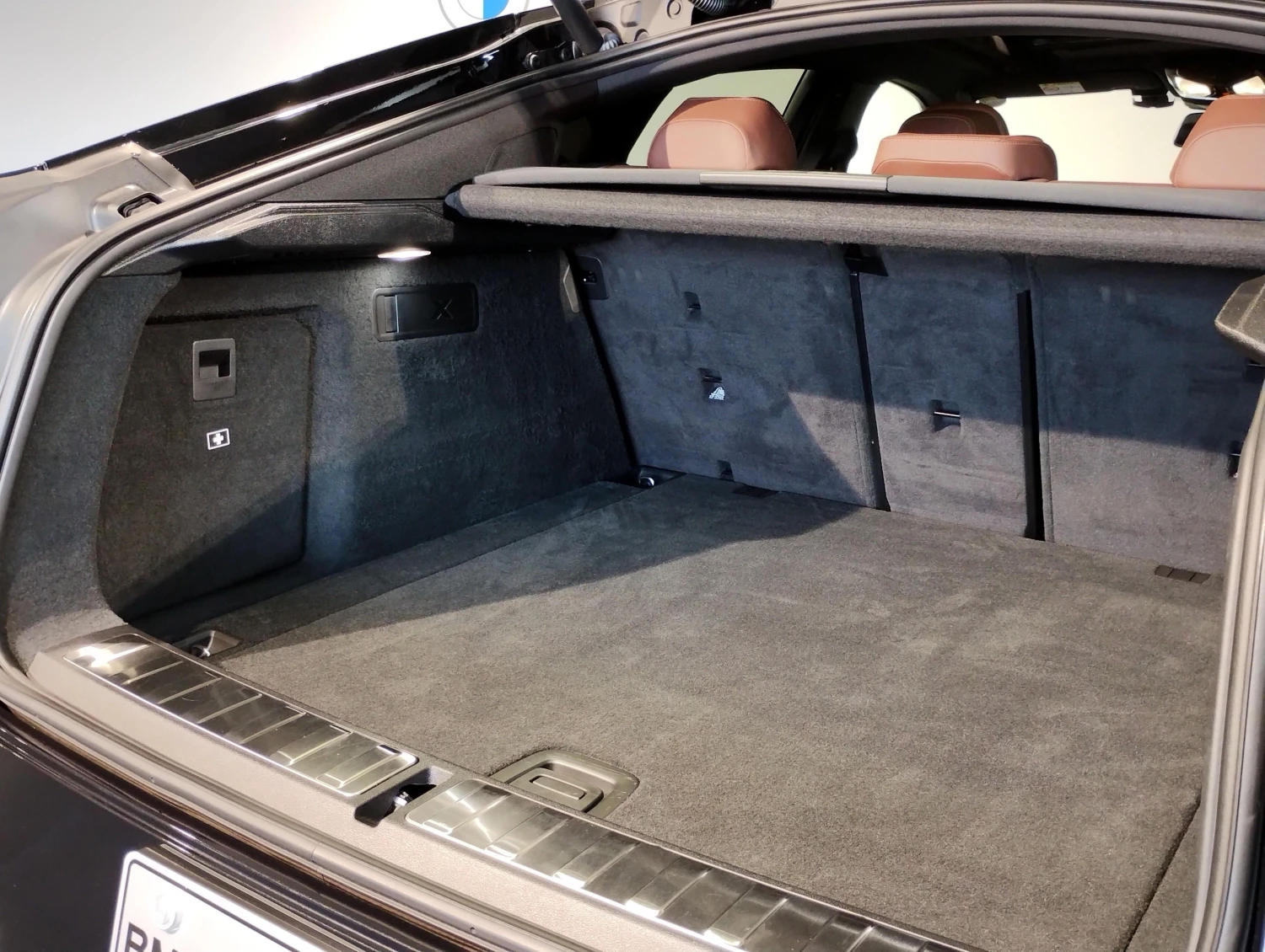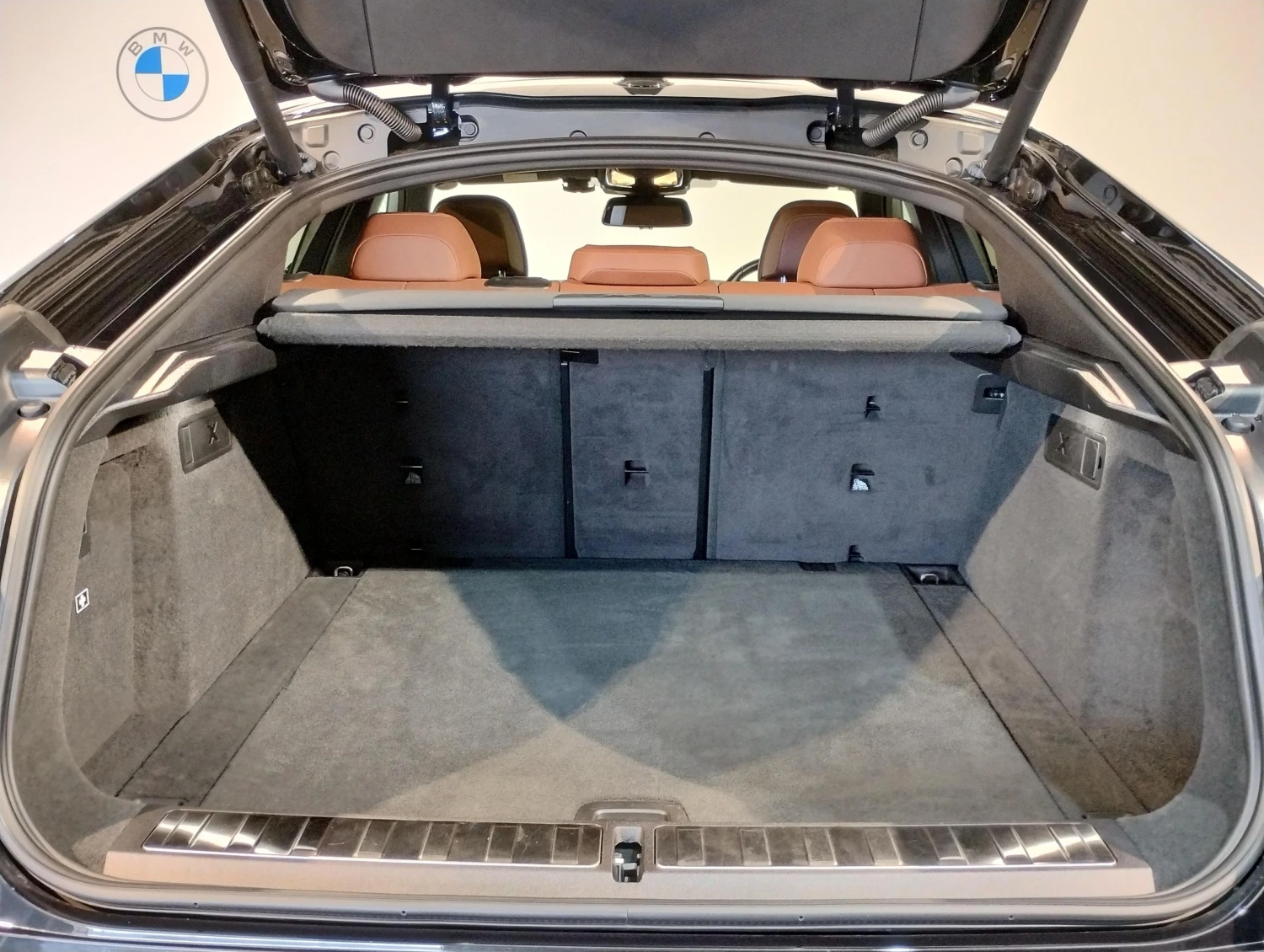 The cabin in Black Sapphire Metallic exterior with premium leather interior offers seating for 5 passengers. Electric seats, seat ventilation, heated seats, and dual-zone climate control create a refined and comfortable atmosphere, complemented by high-quality materials and advanced infotainment features.