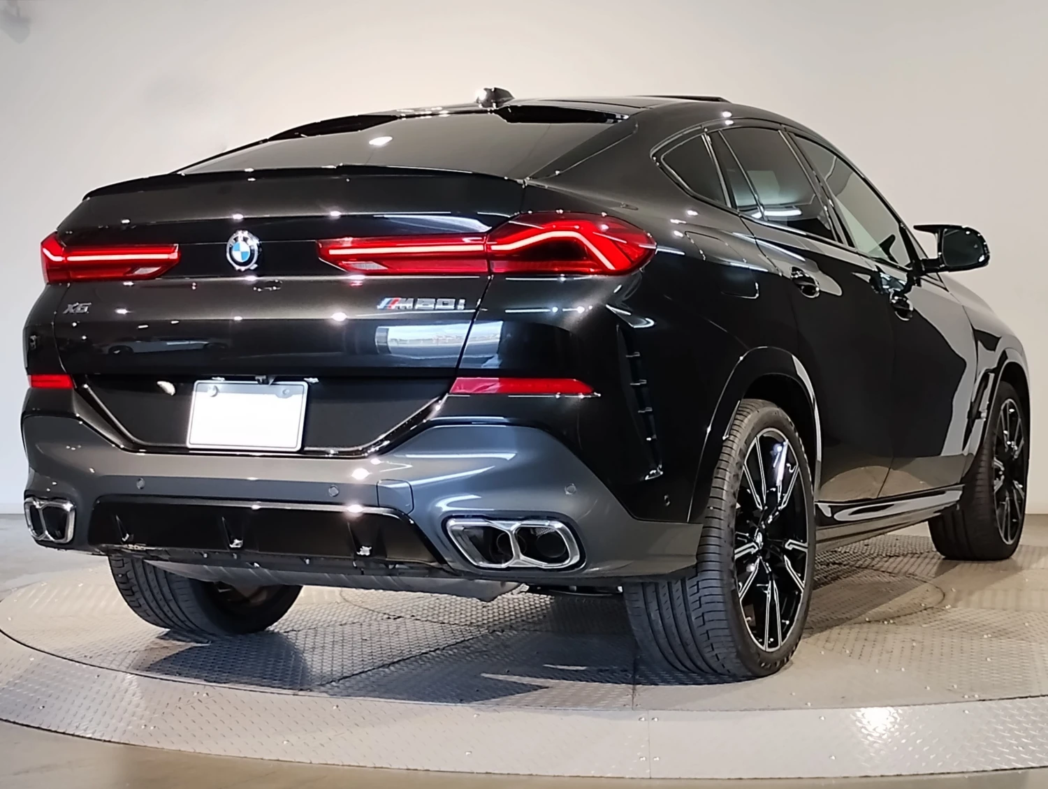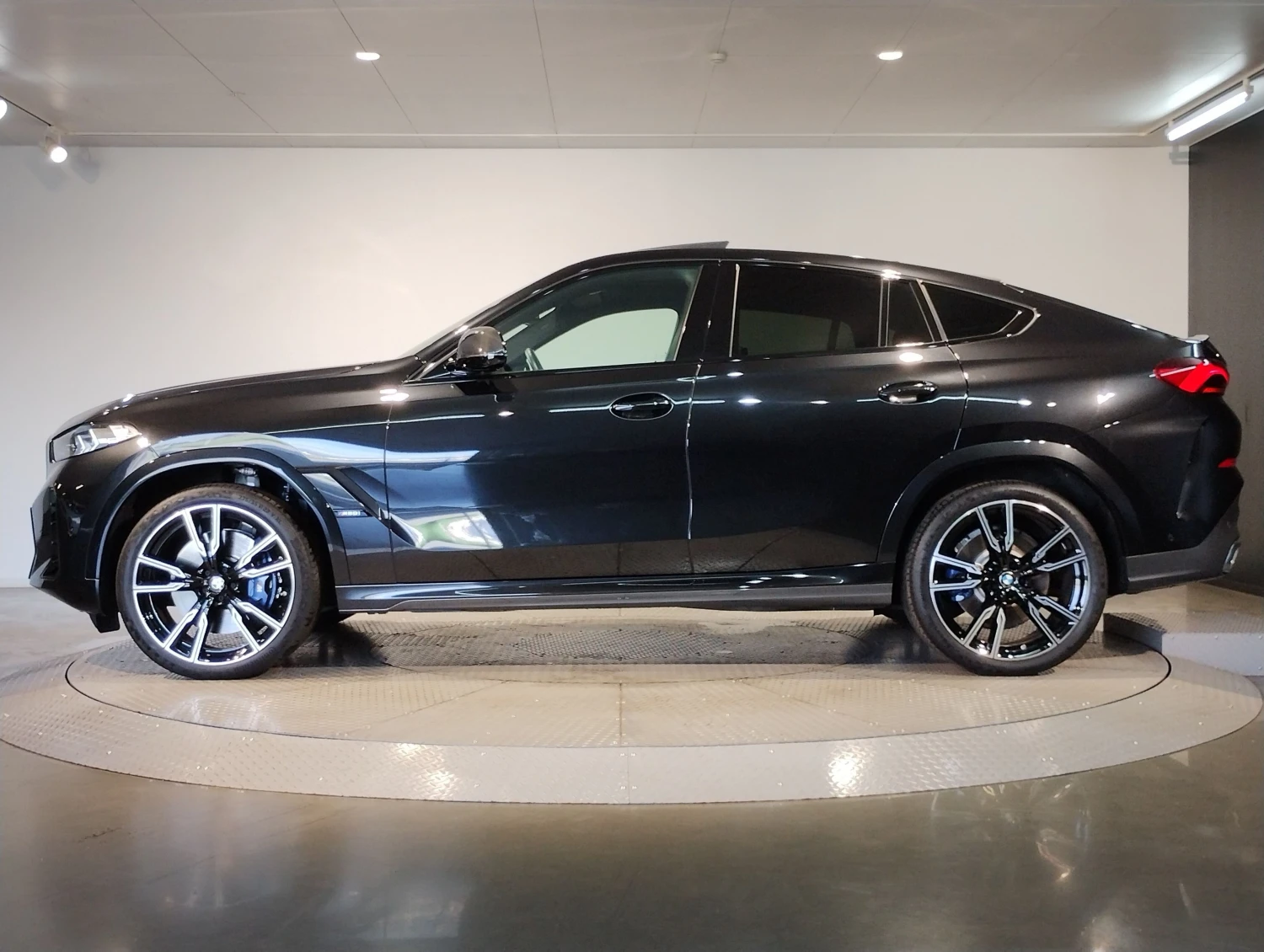 Finished in Black Sapphire Metallic, the BMW X6 M60i features adaptive LED headlights, a glass sunroof, aerodynamic styling elements, and aluminum wheels. Its coupe-SUV silhouette highlights the sporty and commanding presence of the X6 lineup.