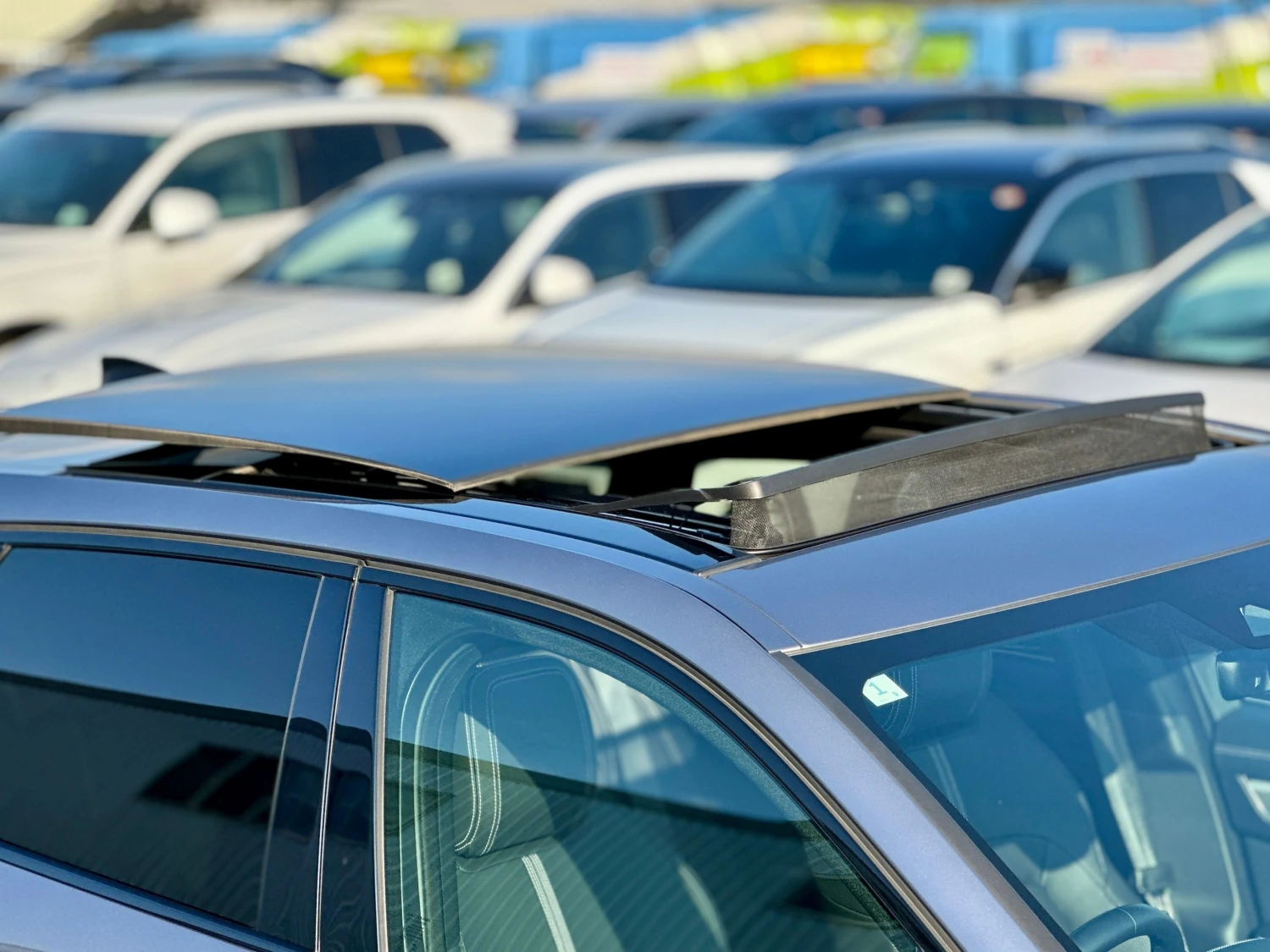 The SUV design is complemented by aluminum wheels and a panoramic glass roof for a refined yet sporty presence.