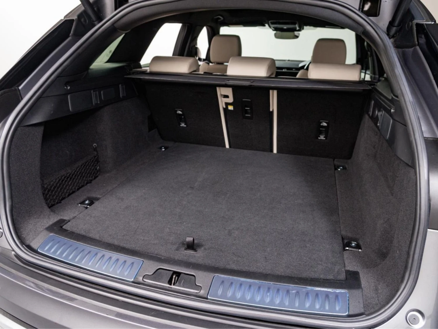 The cabin accommodates 5 passengers and offers a clean, minimalist design with premium materials. Electric and heated seats, dual-zone climate control, and a panoramic glass roof create a comfortable and upscale atmosphere.