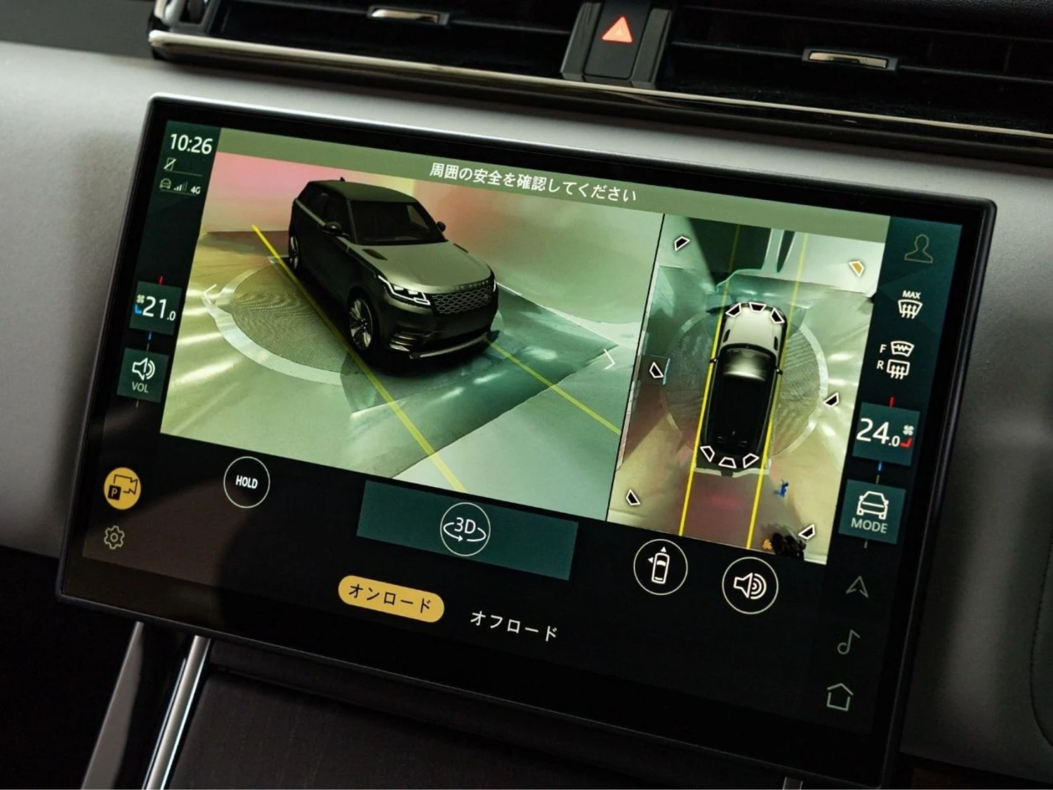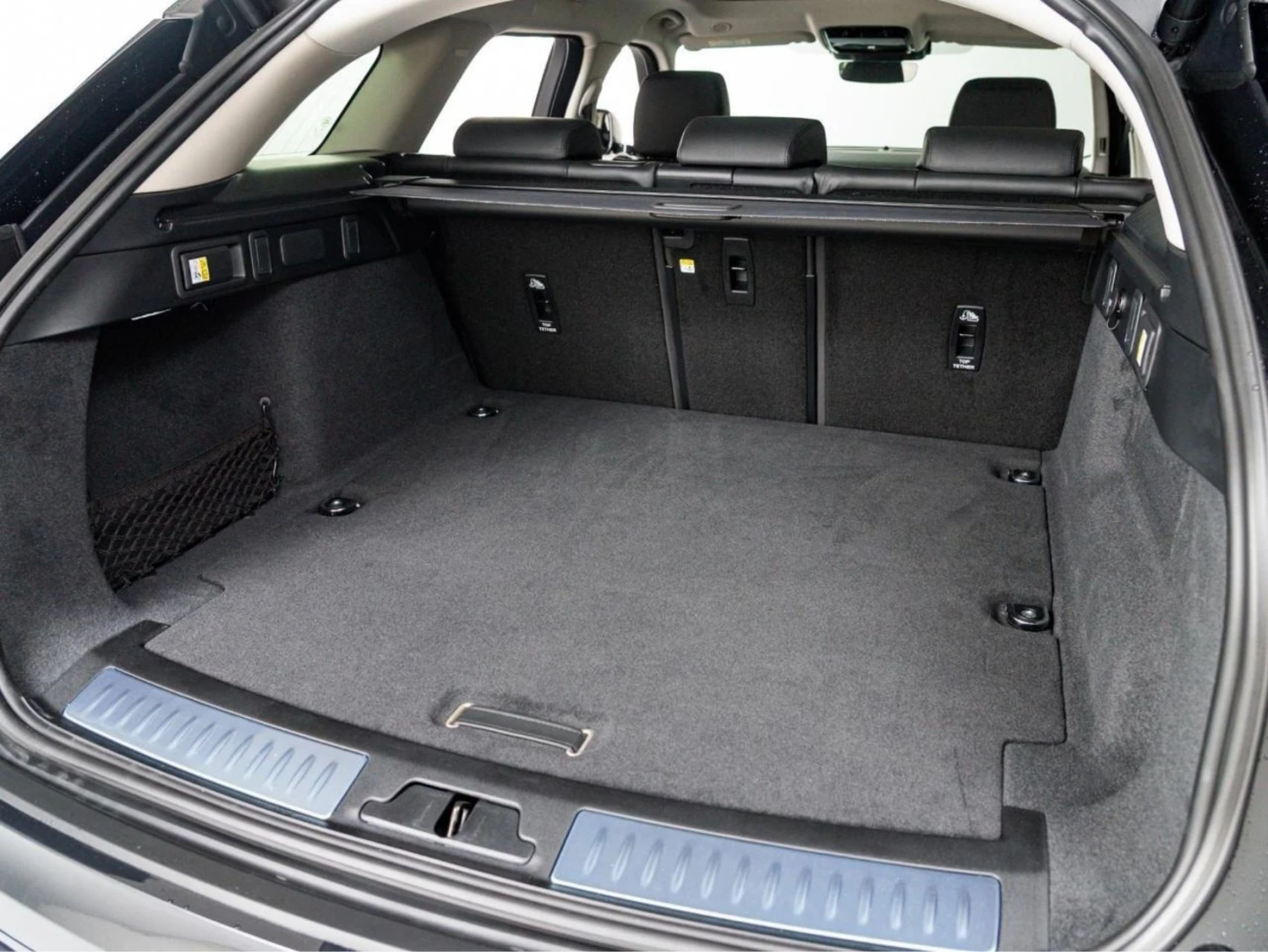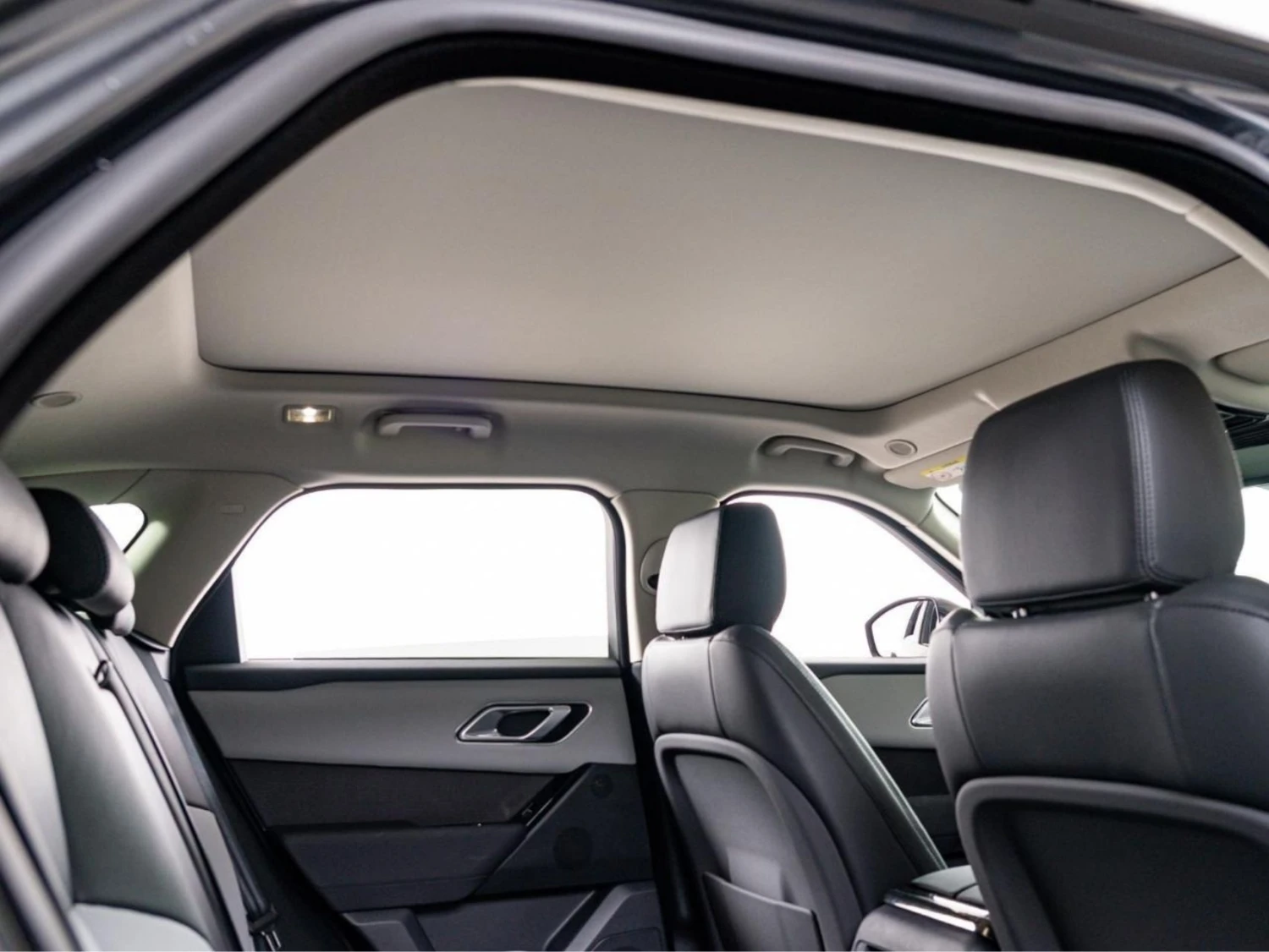 The cabin offers premium comfort with genuine leather seats, heating and ventilation functions, and a panoramic glass roof that enhances the sense of space. Electric seat adjustment, dual-zone climate control, and the Meridian sound system create a high-end driving atmosphere.