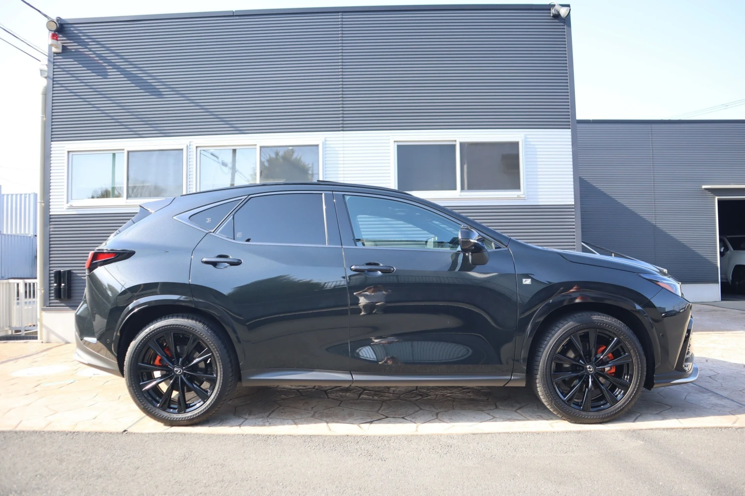 Presented in Graphite Black Glass Flakes, the SUV combines a sporty F Sport appearance with practical design. LED adaptive headlights, aluminum wheels, roof rails, and a glass sunroof complete the exterior.