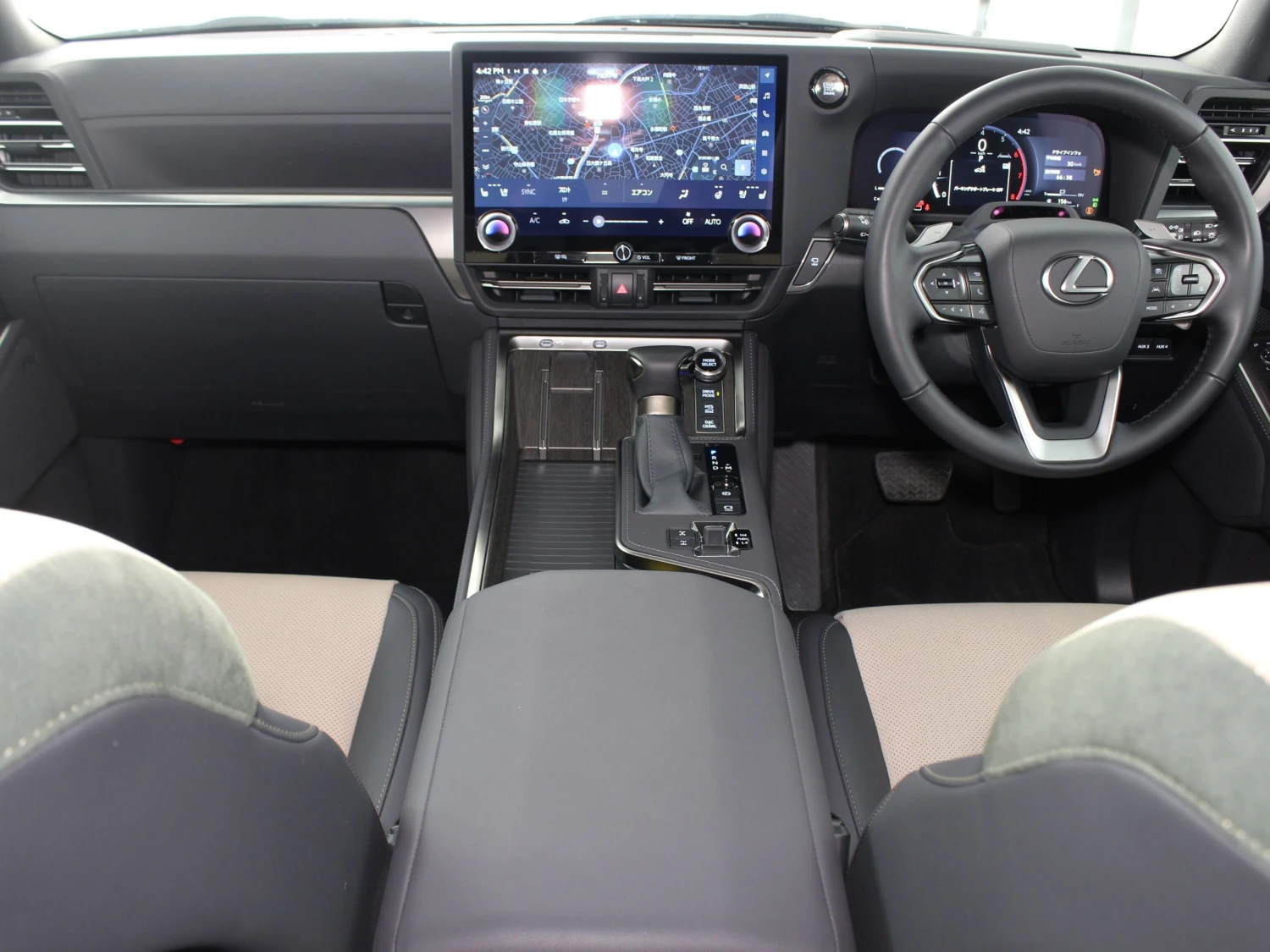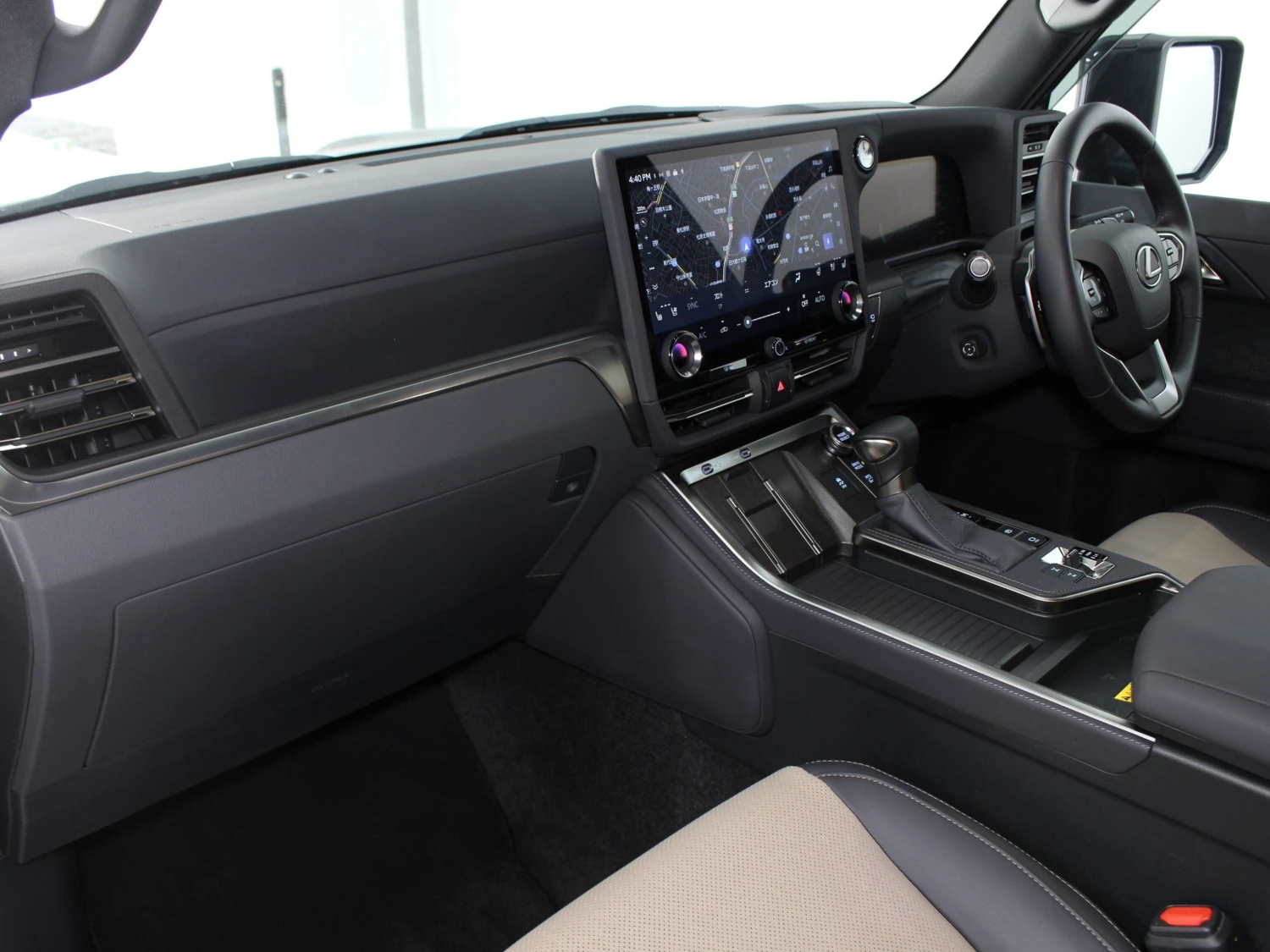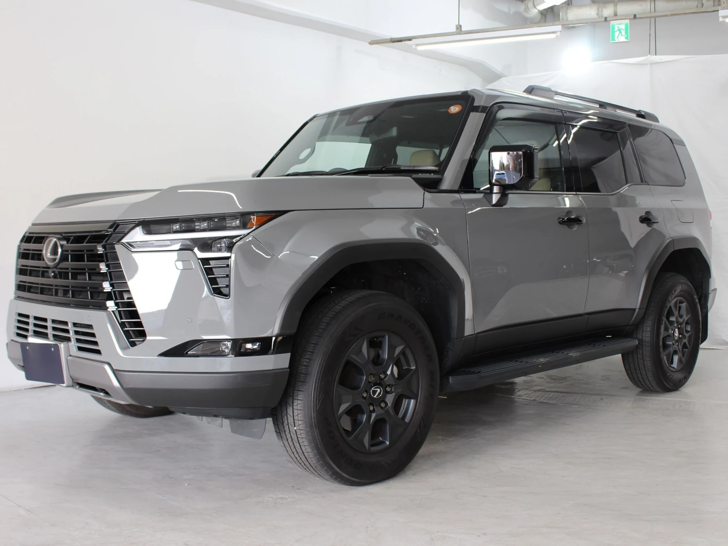 Premium mid-size SUV / Cross-country, 4WD, 3.4L (3400cc) twin-turbo gasoline engine, 10-speed automatic transmission (10AT with manual mode), Right-hand drive, 5 seats, 5 doors, Titanium Carbide Gray, Lexus Safety System+, Lexus Teammate, Adaptive cruise control, Lane Keep Assist, Collision mitigation braking, Blind Spot Monitor / Rear Traffic Alert, Parking Assist, All-around (360°) camera, Front/Side/Rear cameras, Digital inner rearview mirror, Dashcam, ABS, Power steering, Anti-skid system, Automatic high beam, Front fog lamps, Sunroof, Roof rails, Aluminum wheels (OEM), Multi-Terrain system, Digital differential lock, Heated and ventilated seats, Electric seats, Smart key & keyless entry, Double air conditioner, Navigation system (memory), Display Audio (Apple CarPlay / Android Auto), ETC, McIntosh premium surround sound system, Cold region specifications
