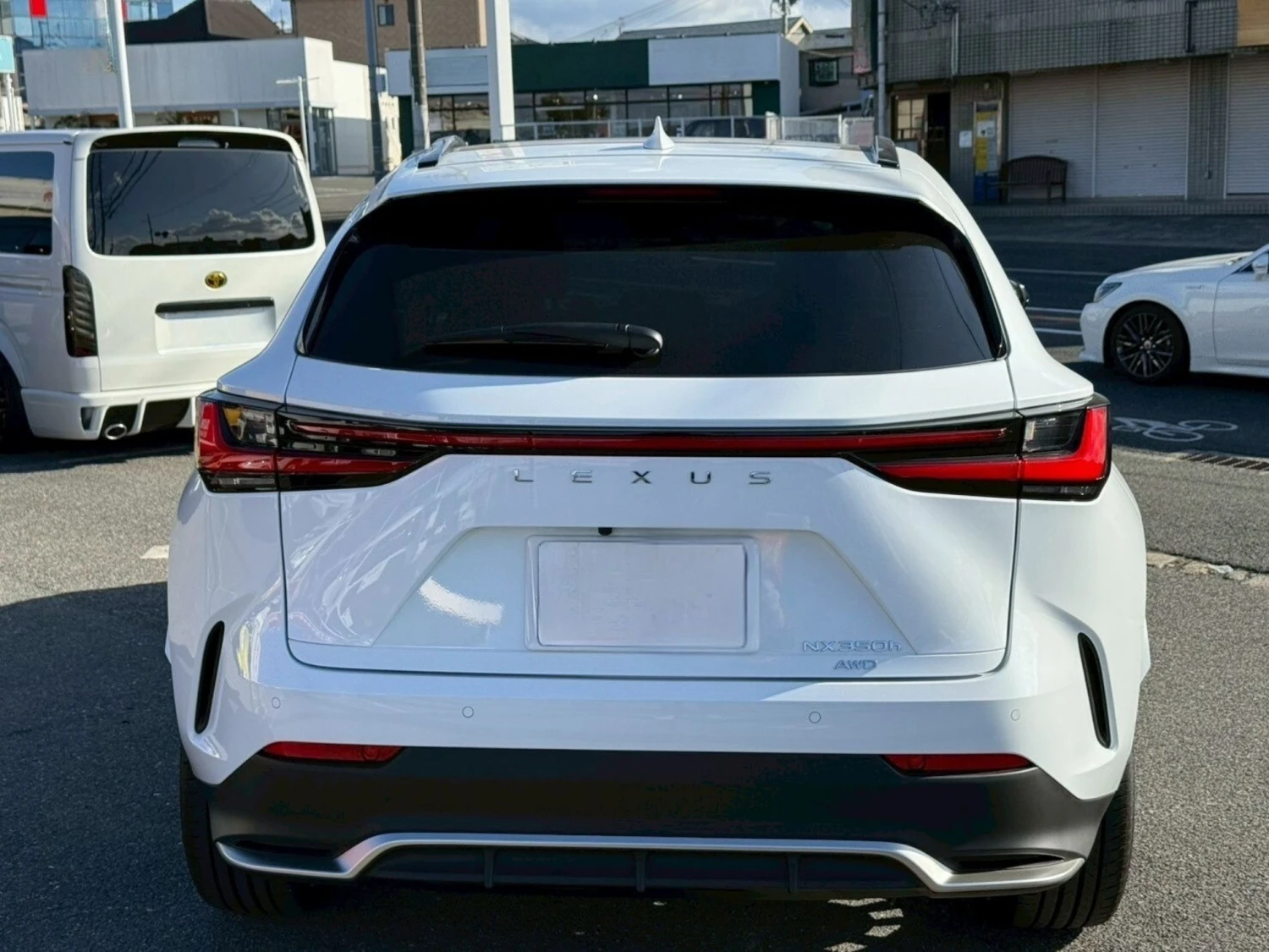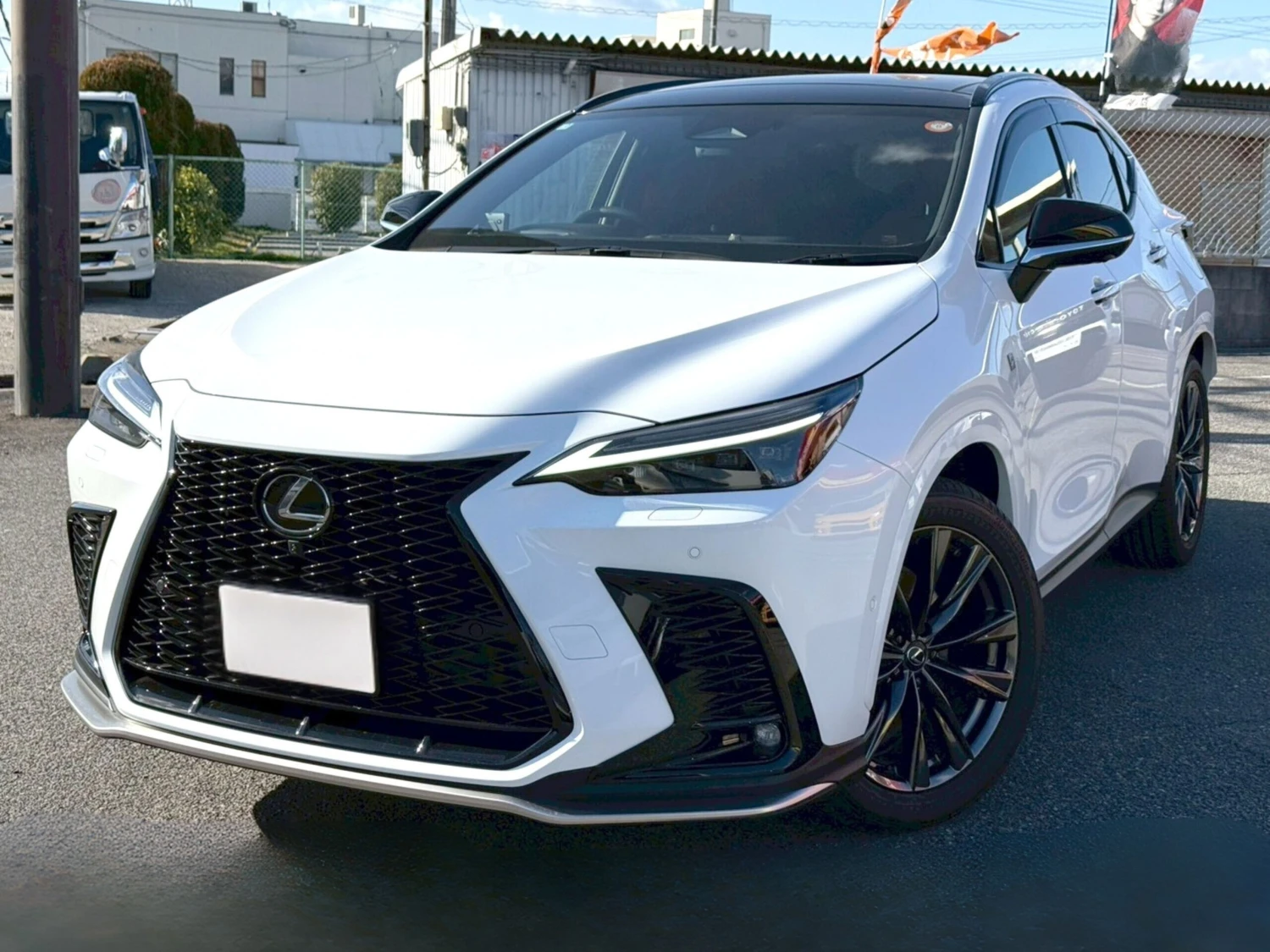 The Lexus NX350h F Sport 2025 is a hybrid SUV with 4WD, finished in White Nova Glass Flakes.