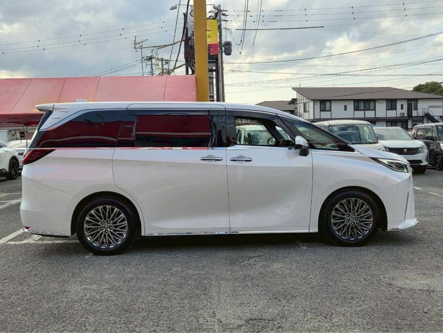 Finished in elegant White Pearl, the Lexus LM500h Version L features adaptive LED headlights, electric sliding doors on both sides, 19-inch alloy wheels, and refined styling that reflects its premium executive character.