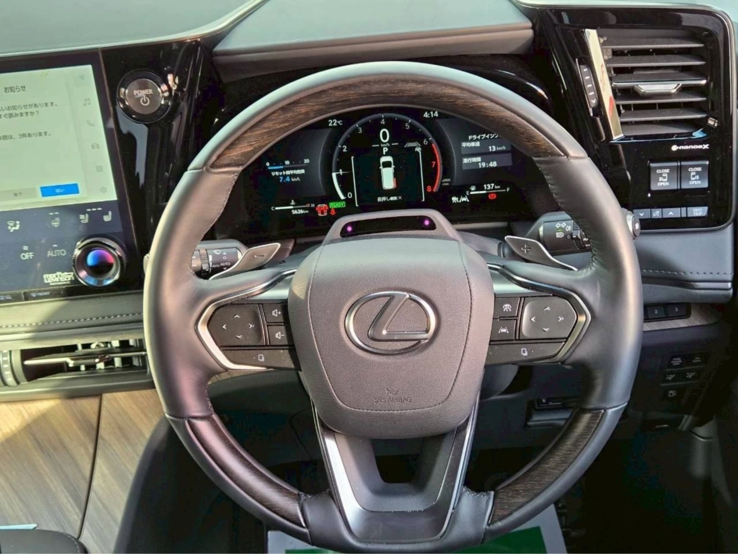 Minivan, 4WD, 2.4L hybrid engine (2400cc), 6-speed automatic transmission (6AT with manual mode), Right-hand drive, Power steering, ABS, Adaptive cruise control, Lane Keep Assist, Collision mitigation braking, Blind Spot Monitor, Rear Cross Traffic Alert, Parking assist, Obstacle sensors, Airbags (Driver/Passenger/Side/Curtain), Anti-skid device, Automatic high beam, LED adaptive headlights, Front fog lamps, Moonroof, Electric sliding doors (both sides), Aluminum wheels (19”), Keyless entry, Smart key, Power windows, Electric seats, Heated seats, Ottoman seats, 3-row seating (6 passengers), Rear seat entertainment monitor, 14-inch navigation system, Display Audio (Apple CarPlay / Android Auto), Mark Levinson audio system, 1500W power supply, ETC, Dashcam, Cold weather specification