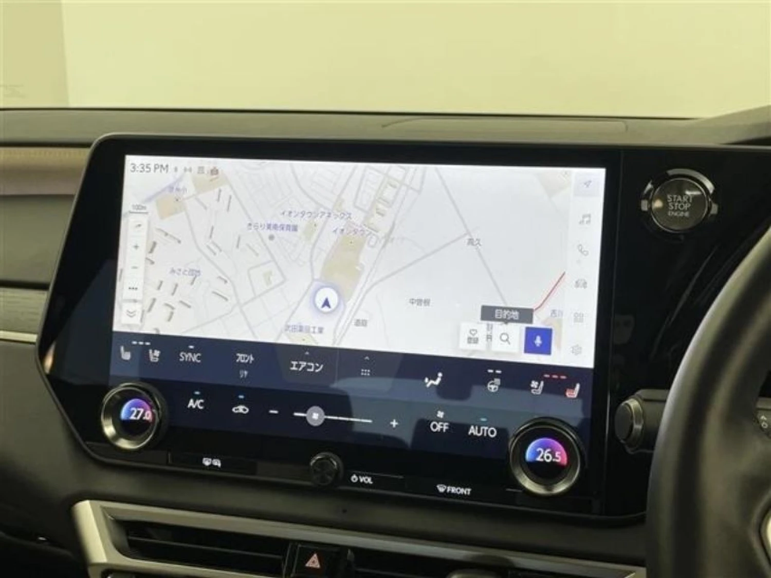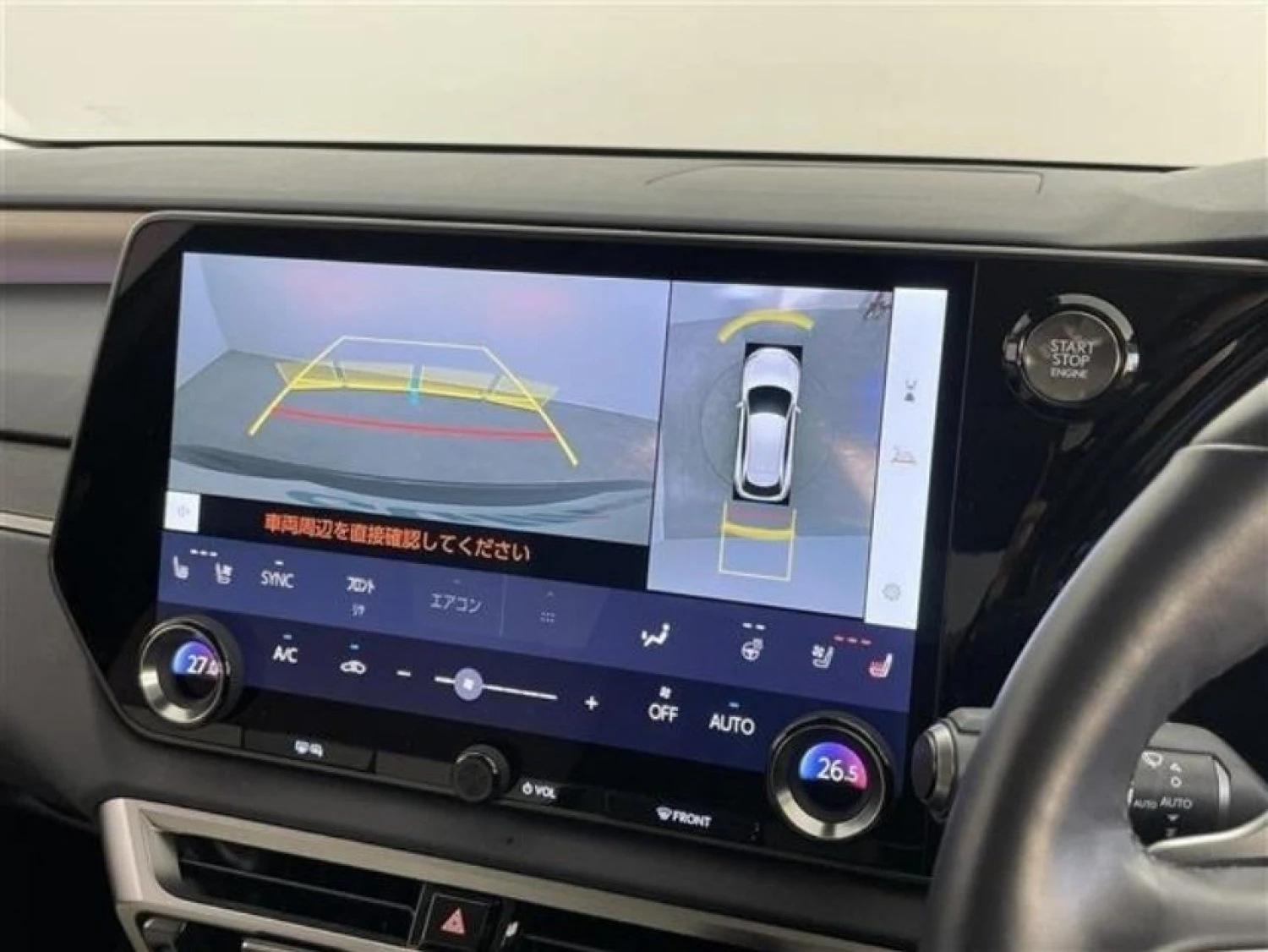 Crossover/SUV, 2WD, 2.4L gasoline engine (2400cc), 8-speed automatic transmission with manual mode, Right-hand drive, 5 seats, Sonic Chrome, Adaptive cruise control (Radar Cruise Control), Lane Keep Assist, Collision mitigation braking, Blind Spot Monitoring (BSM), Parking Assist, Panoramic view monitor (360° camera), Front/Side/Rear cameras, Digital rear-view mirror, Head-Up Display (HUD), ABS, Power steering, Anti-skid system, Anti-theft system, Idling stop, Double air conditioning, Factory navigation system (Memory), Display Audio (Apple CarPlay / Android Auto), ETC, TV (Full-seg), Electric seats with memory, Heated & ventilated seats, Heated steering wheel, Half leather interior (white), Smart key & Keyless entry, Power windows, Triple LED adaptive headlights, Front fog lamps, Sunroof, Aluminum wheels