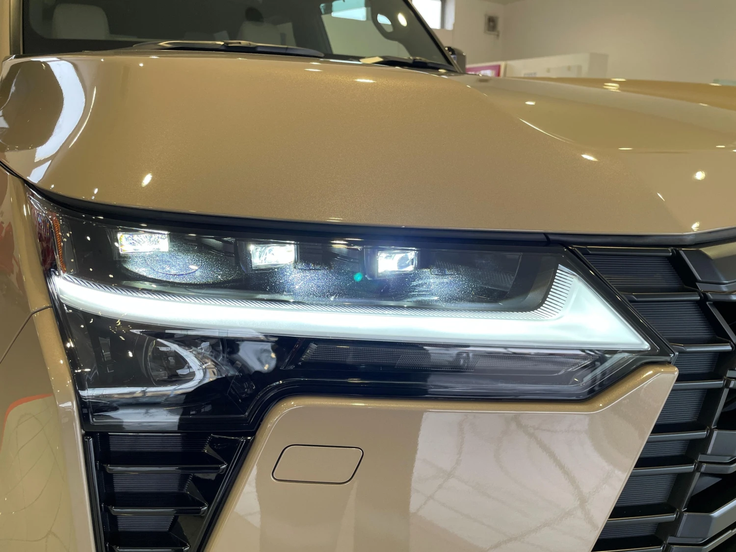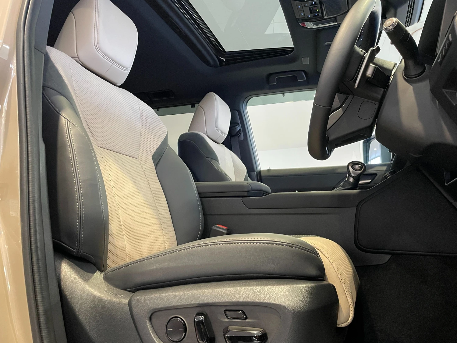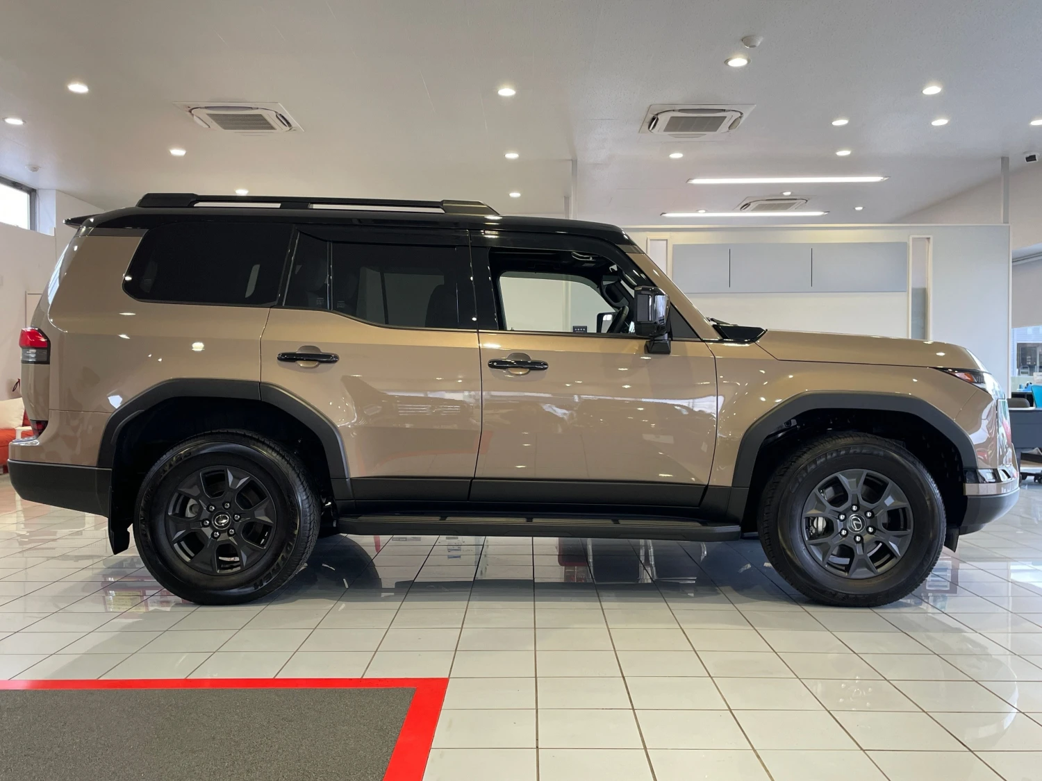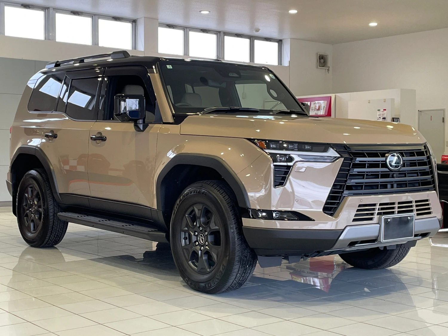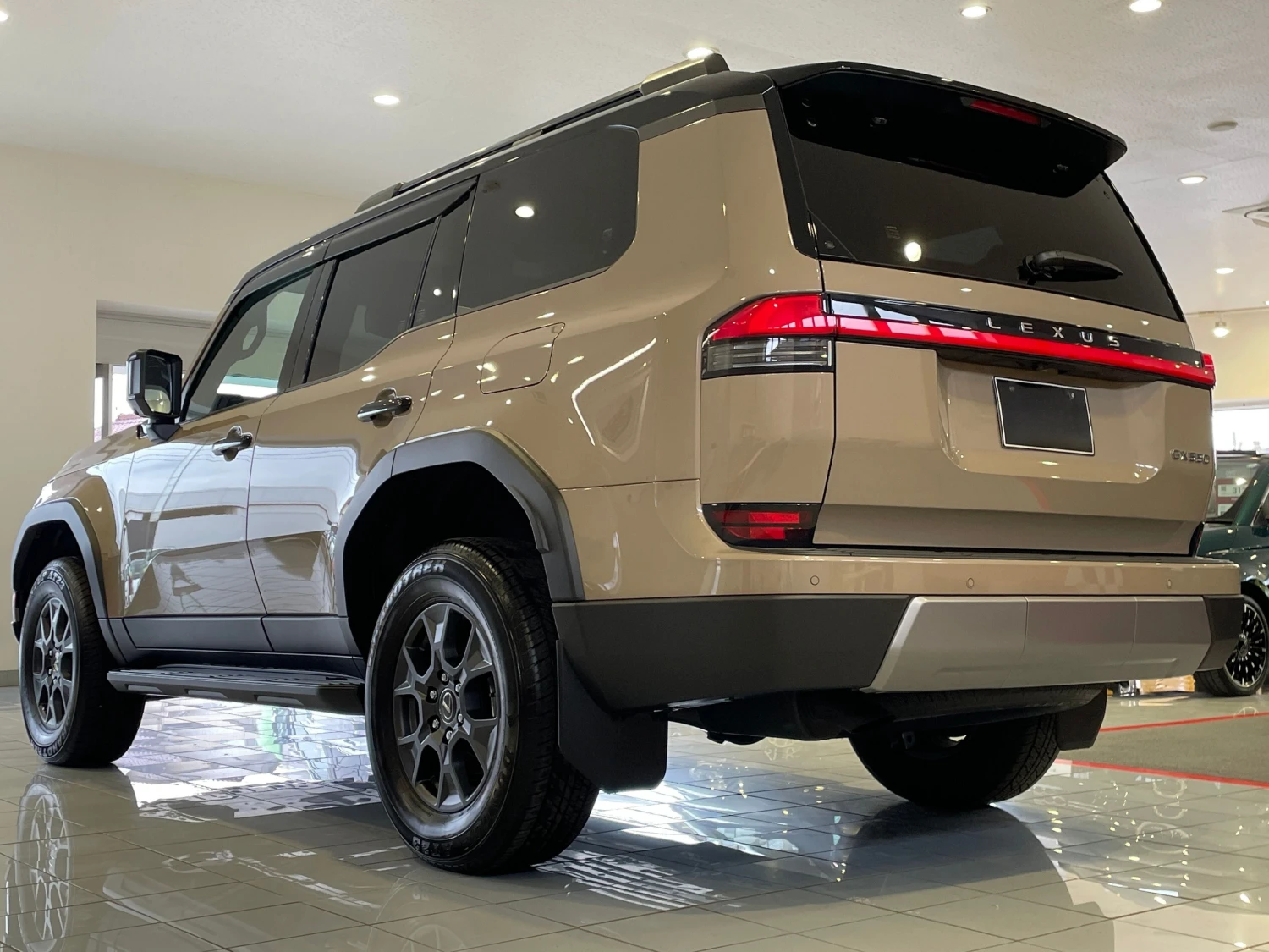 Finished in Moon Desert & Black, the GX550 Overtrail+ stands out with its bold SUV design. Triple LED headlights, aluminum wheels, roof rails, moonroof, and rugged styling elements emphasize both luxury and off-road readiness.