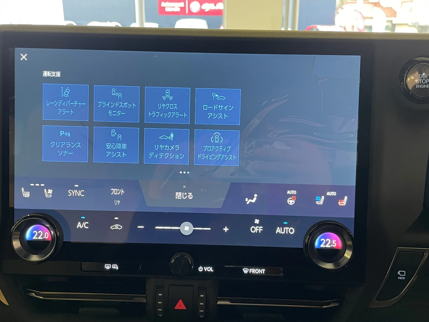 SUV, 4WD, 3.4L gasoline engine (3400cc), 10-speed automatic transmission (10AT with manual mode), Right-hand drive, Power steering, ABS, Adaptive cruise control, Lane Keep Assist, Collision mitigation braking, Blind Spot Monitor, Rear Cross Traffic Alert, Hill Descent Control, Parking sensors, 360° panoramic view monitor (Front/Side/Back cameras), Digital inner mirror, Airbags (Driver/Passenger/Side/Curtain), Anti-skid device, Anti-theft system, LED headlights (Triple LED), Automatic high beam, Front fog lamps, Moonroof, Roof rails, Aluminum wheels, Power back door, Electric seats, Heated seats, Seat ventilation, Genuine leather seats, Dual-zone climate control, 14-inch navigation display with TV, Display Audio (Apple CarPlay / Android Auto), Mark Levinson premium audio system, Head-Up Display, Cooler box, ETC, Smart key, Keyless entry, Power windows, Dashcam
