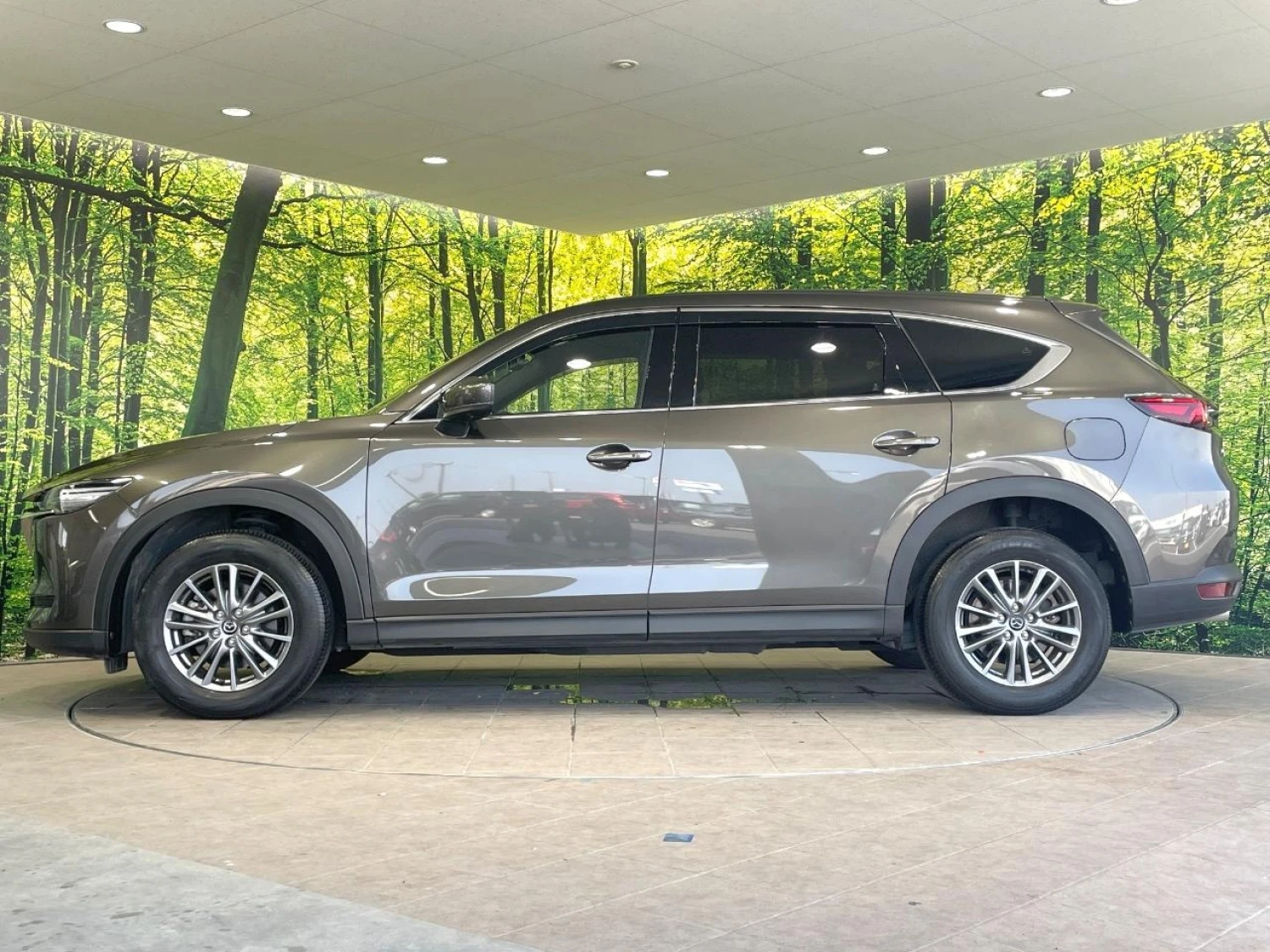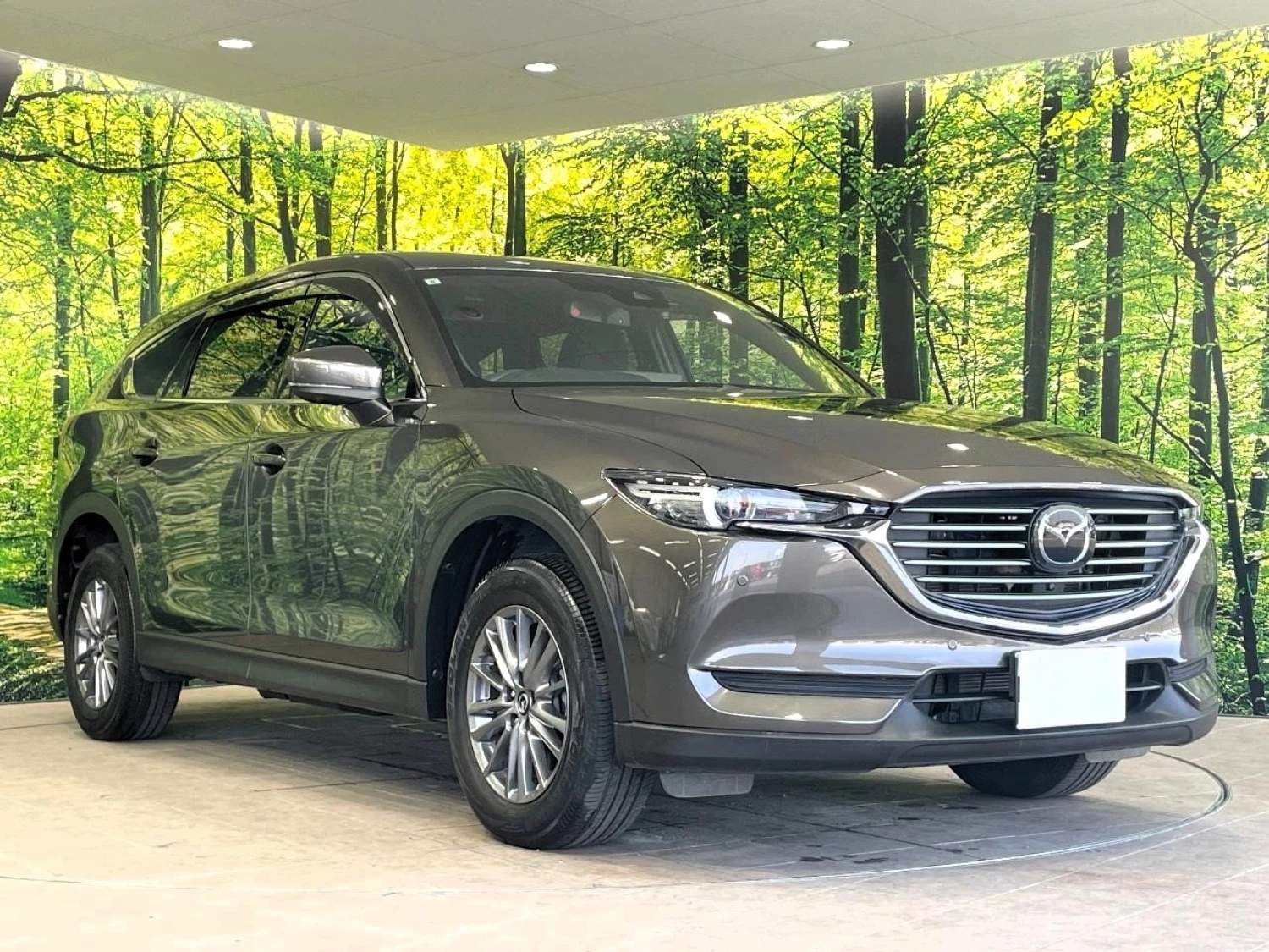 This CX-8 comes in the refined Machine Gray Premium Metallic finish, emphasizing the premium and modern character of the SUV. With its 5-door crossover body, it blends elegance with practicality, while the Smart Edition trim adds stylish details that enhance its upscale appearance.
