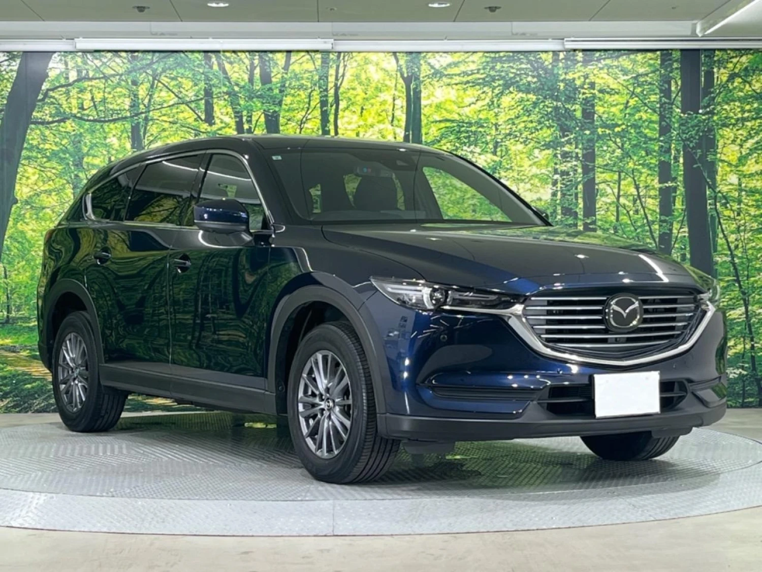 This CX-8 is presented in a striking Deep Crystal Blue Mica finish, giving the SUV a bold yet refined look. Its crossover body design emphasizes strength and elegance, while practical 5-door access enhances family usability. The Smart Edition trim adds stylish touches that complement the SUV’s premium stance.