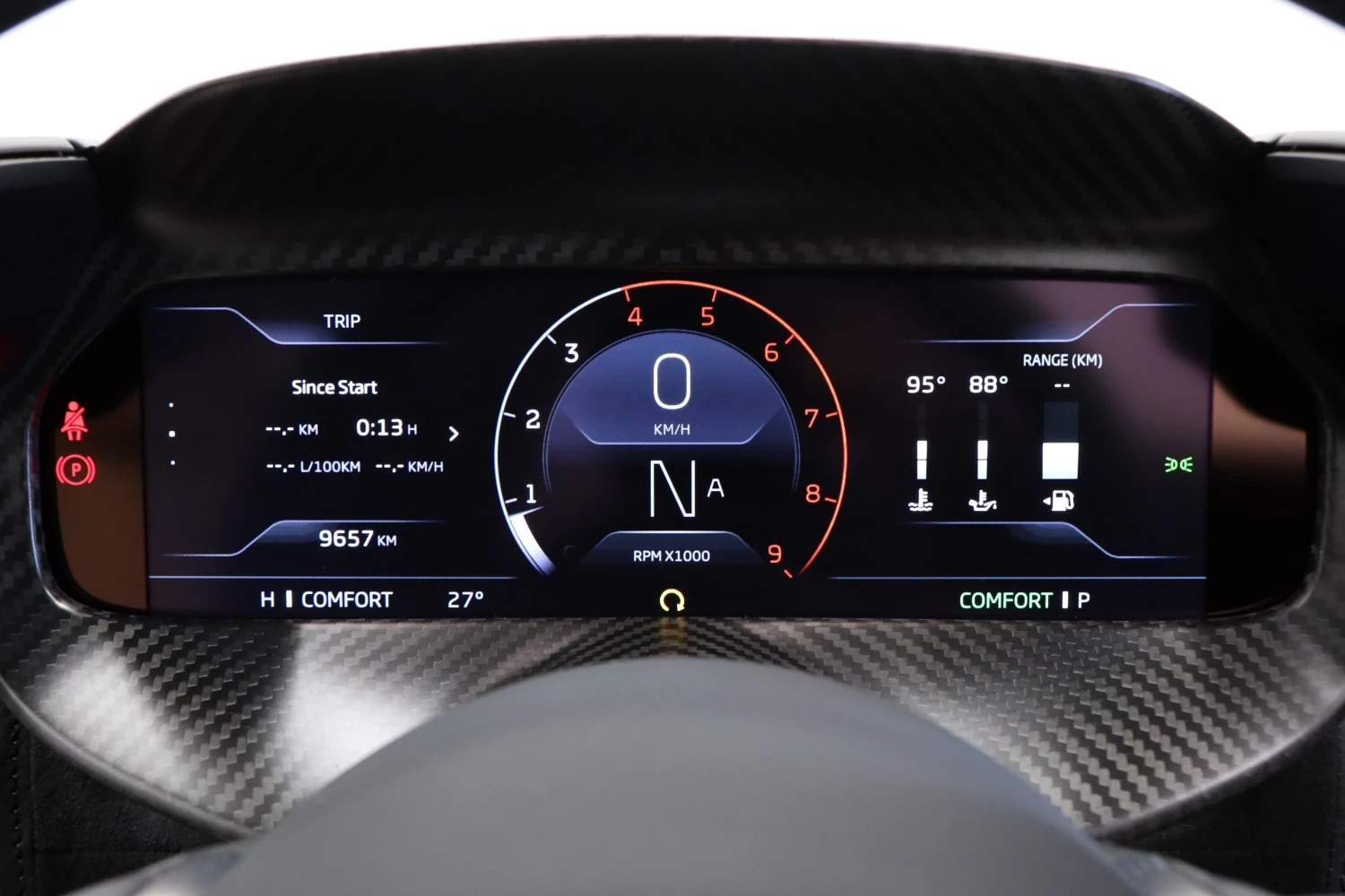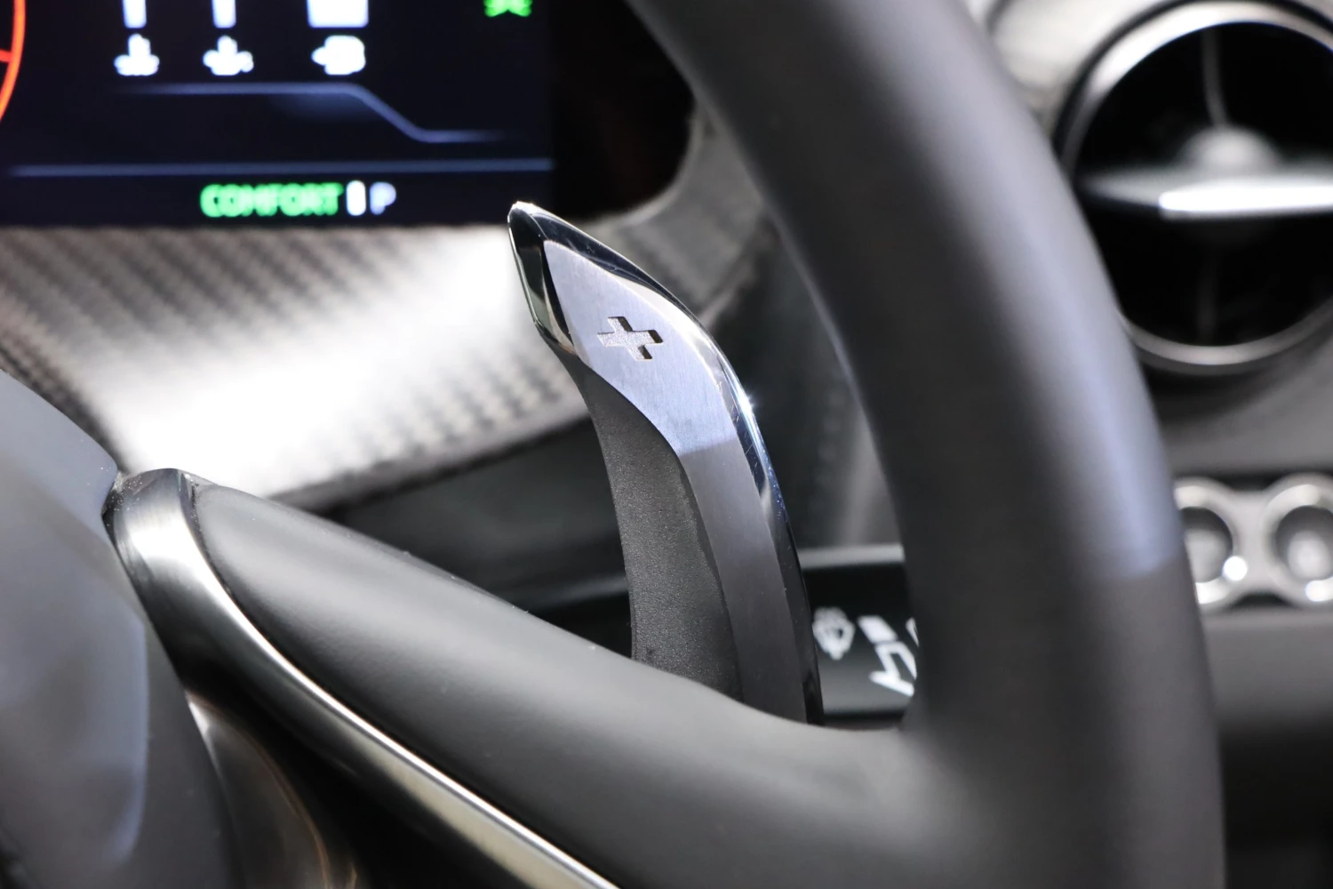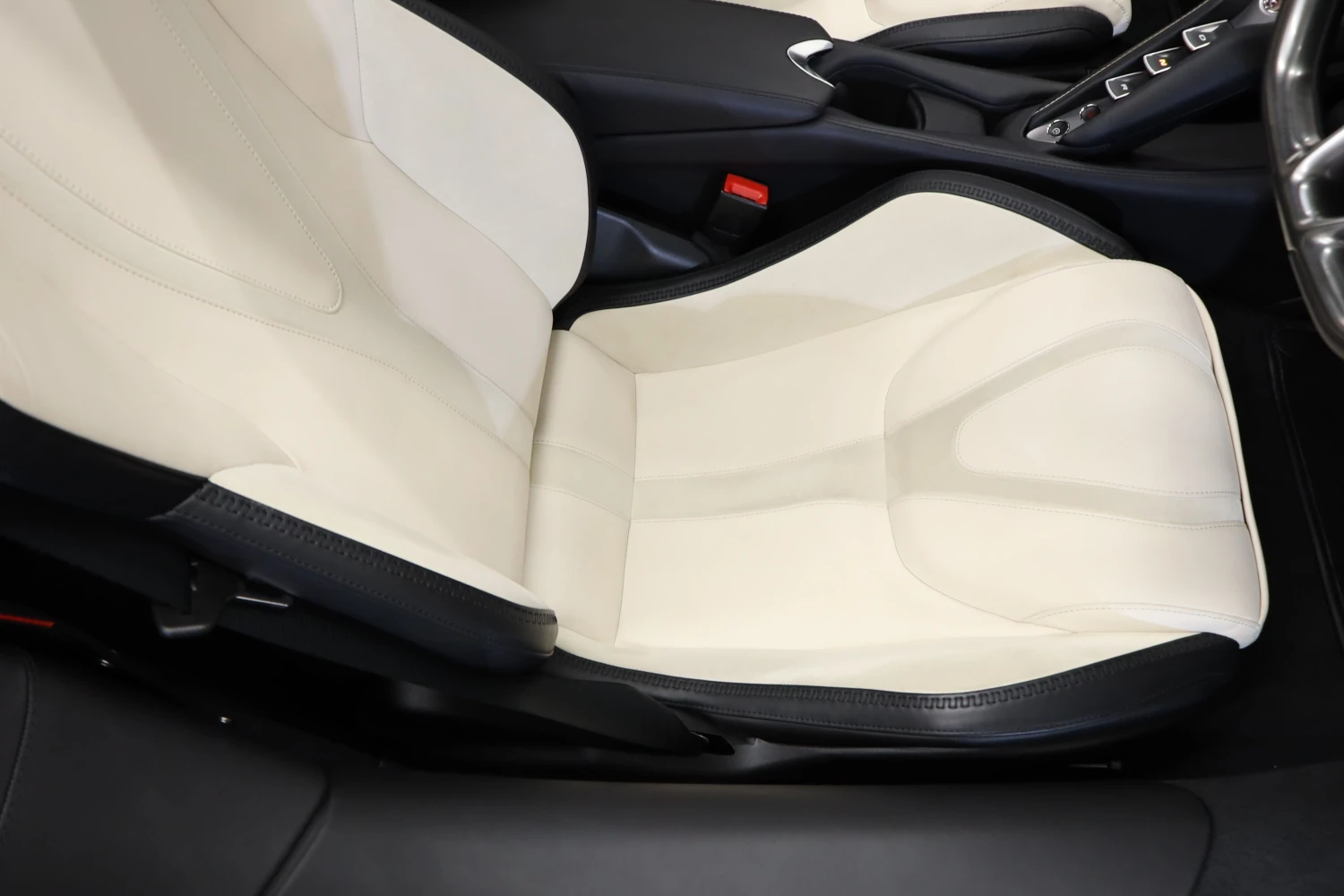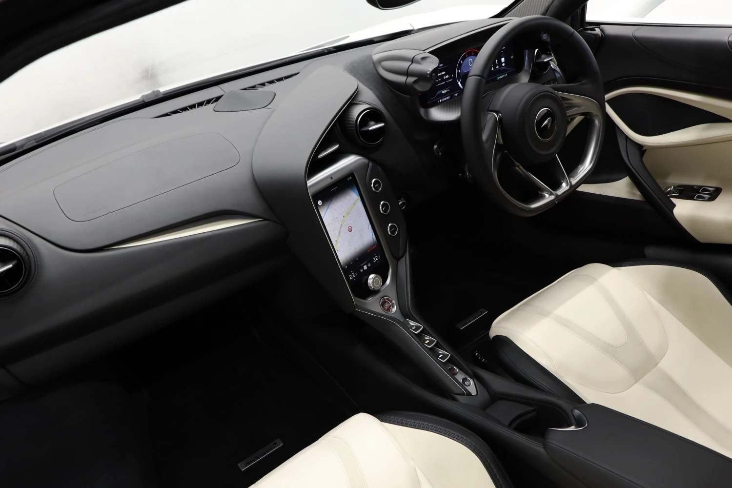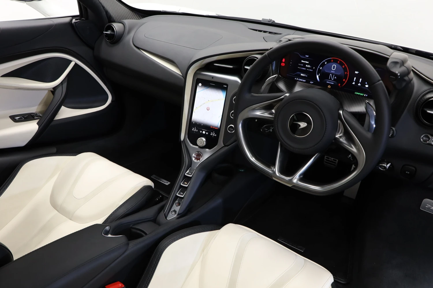 The interior accommodates 2 people in a driver-focused layout. The cabin provides a refined and performance-oriented environment.