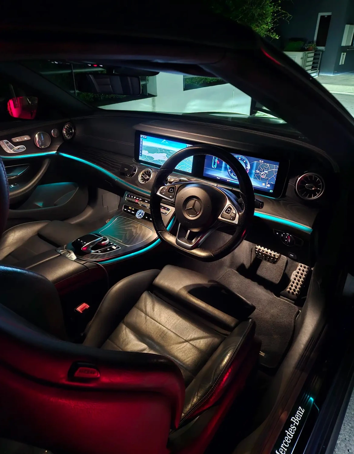 This E-Class Convertible stands out with its 19" AMG 5-twin-spoke alloy wheels in titanium grey with a high-sheen finish. The AMG styling kit and rear boot spoiler add dynamic character, while the 64-colour ambient lighting elevates the cabin atmosphere. The acoustic soft-top provides improved climate comfort and significantly reduced wind noise, ensuring enjoyable driving with the roof both open and closed.