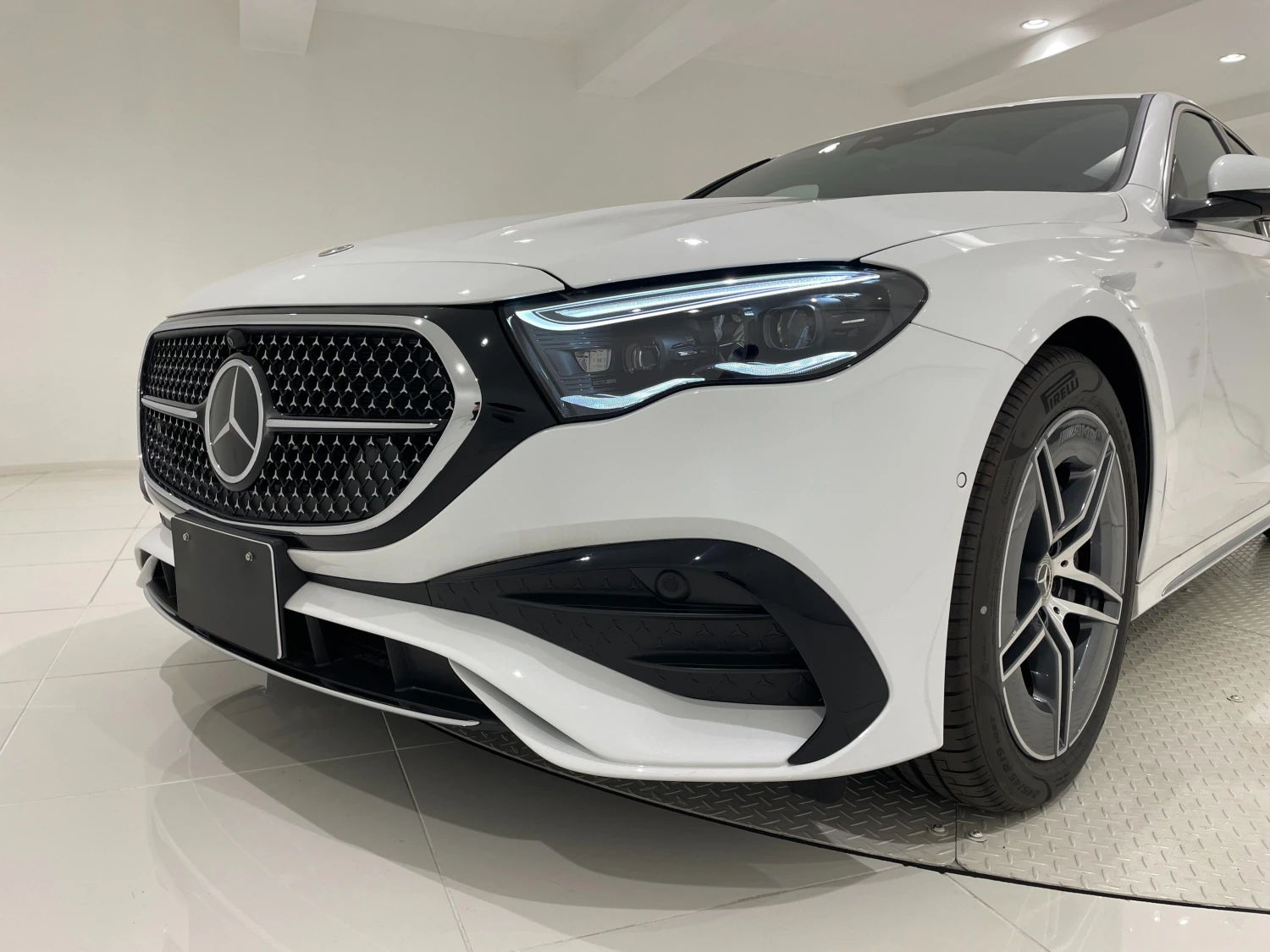 This sedan is finished in Opalis White and presents a clean and elegant appearance. The body style reflects the executive nature of the Mercedes-Benz E-Class.