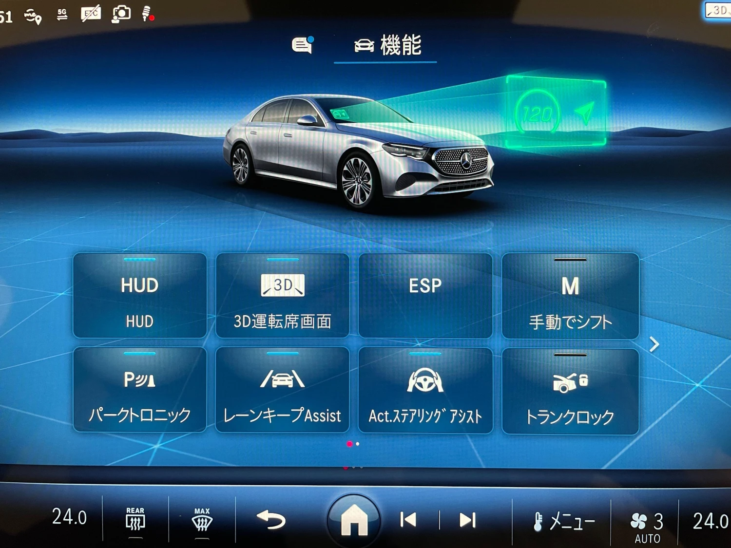 2WD, 9AT with column MT mode, Power steering, ABS, Support car, Collision mitigation braking, Adaptive cruise control, Lane Keep Assist, Parking Assist, Obstacle Sensor, Airbags: Driver's seat/Passenger seat/Side/Curtain, All-around camera, Camera: Front/Side/Back, Monitor: Blind Spot/Rear Traffic, Anti-skid device, Idling stop, Anti-theft devices, Automatic high beam, Supercharger setting model, Air conditioners and coolers, Car navigation system: HDD, TV: Full-seg, ETC, Display Audio (Apple CarPlay, Android Auto, etc.), Keyless, Smart key, Power windows, Electric seats, Heated seats, Genuine leather seats, Headlights: LED, adaptive, Aluminum wheels