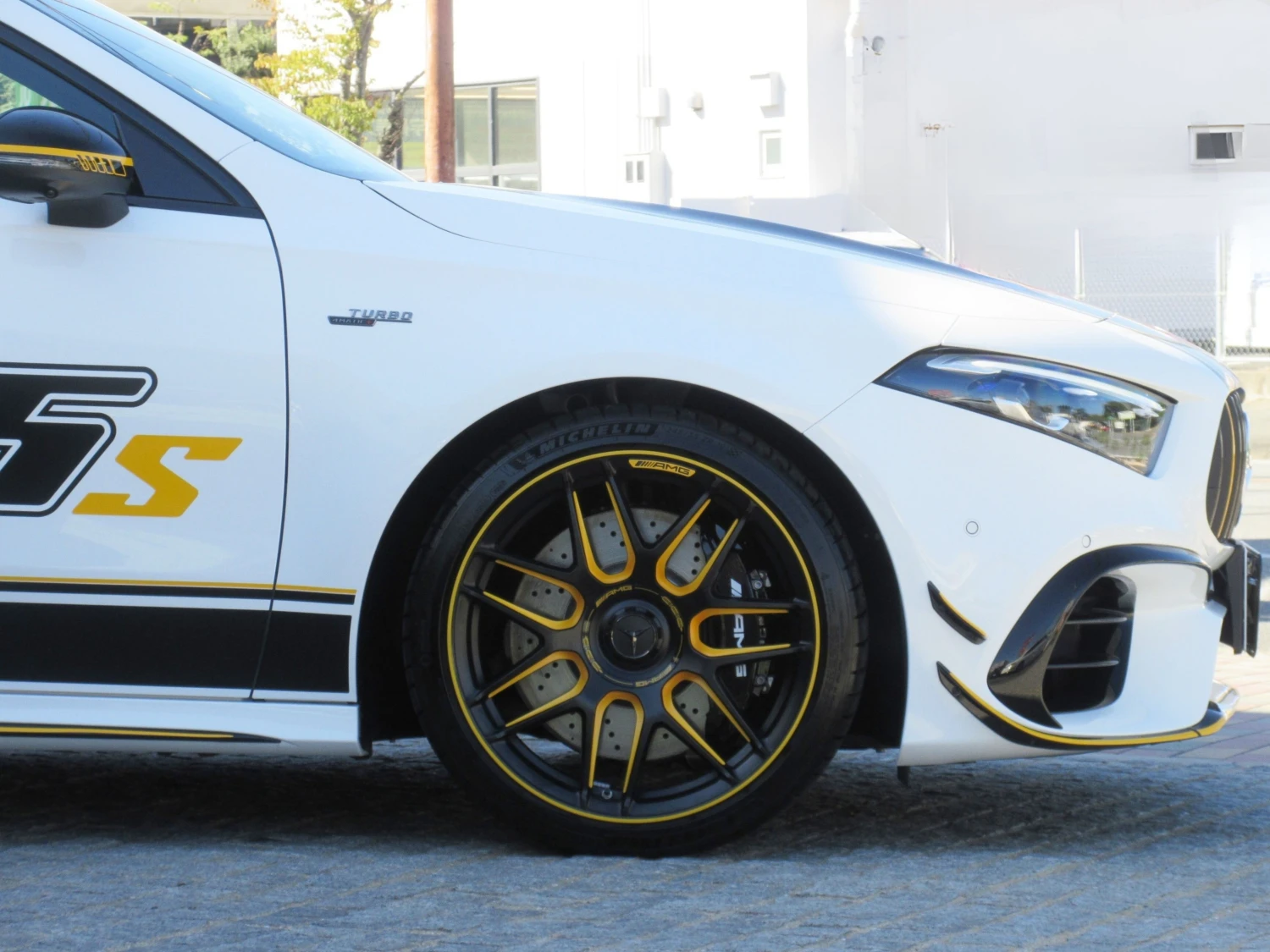 This hatchback model is presented in Polar White. The aggressive AMG styling, aerodynamic elements and distinctive design details emphasize its exclusive Final Edition character.