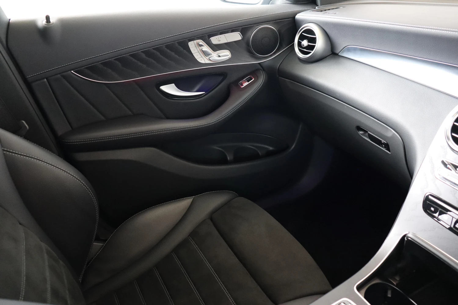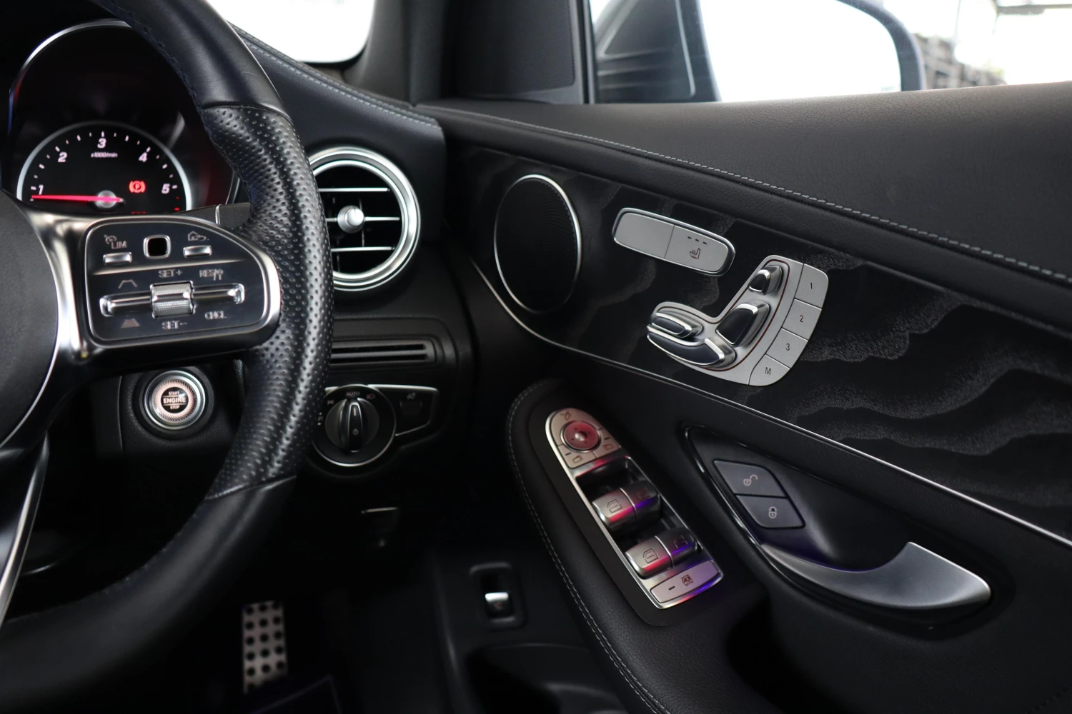 This AMG Line model comes equipped with the Radar Safety Package, including Collision Mitigation Braking, Adaptive Cruise Control, Lane Keep Assist, Blind Spot Assist, and Lane Change Assist. These systems work together with multiple airbags and electronic stability programs to ensure maximum protection and peace of mind.