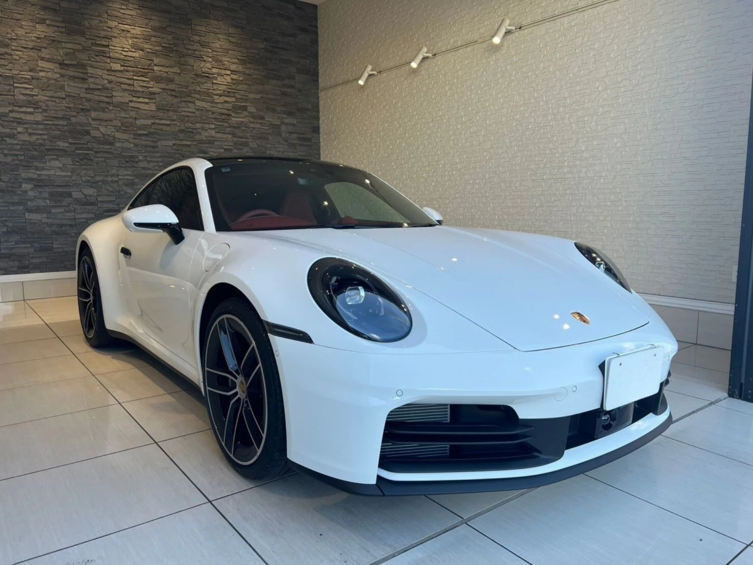 Targa / Coupe, 4WD (Carrera 4S), 3.0L gasoline engine (3000cc), 8-speed PDK automatic transmission, Right-hand drive, Power Steering Plus, ABS, Cruise control, Lane Keep Assist, Obstacle Sensor, Airbags (Driver/Passenger/Side), 360° all-around camera, Camera: Front/Side/Back, Anti-skid device, Anti-theft system, Idling stop, Dual-zone climate control, Navigation system (memory), Audio system / Music server, TV, Music player connection possible, ETC, Keyless entry, Smart key, Power windows, Electric seats, Heated seats, Seat ventilation, Genuine leather seats, Adaptive LED headlights, Sliding glass roof (Targa), 20/21-inch aluminum wheels, Sport Chrono Package, Sport exhaust system