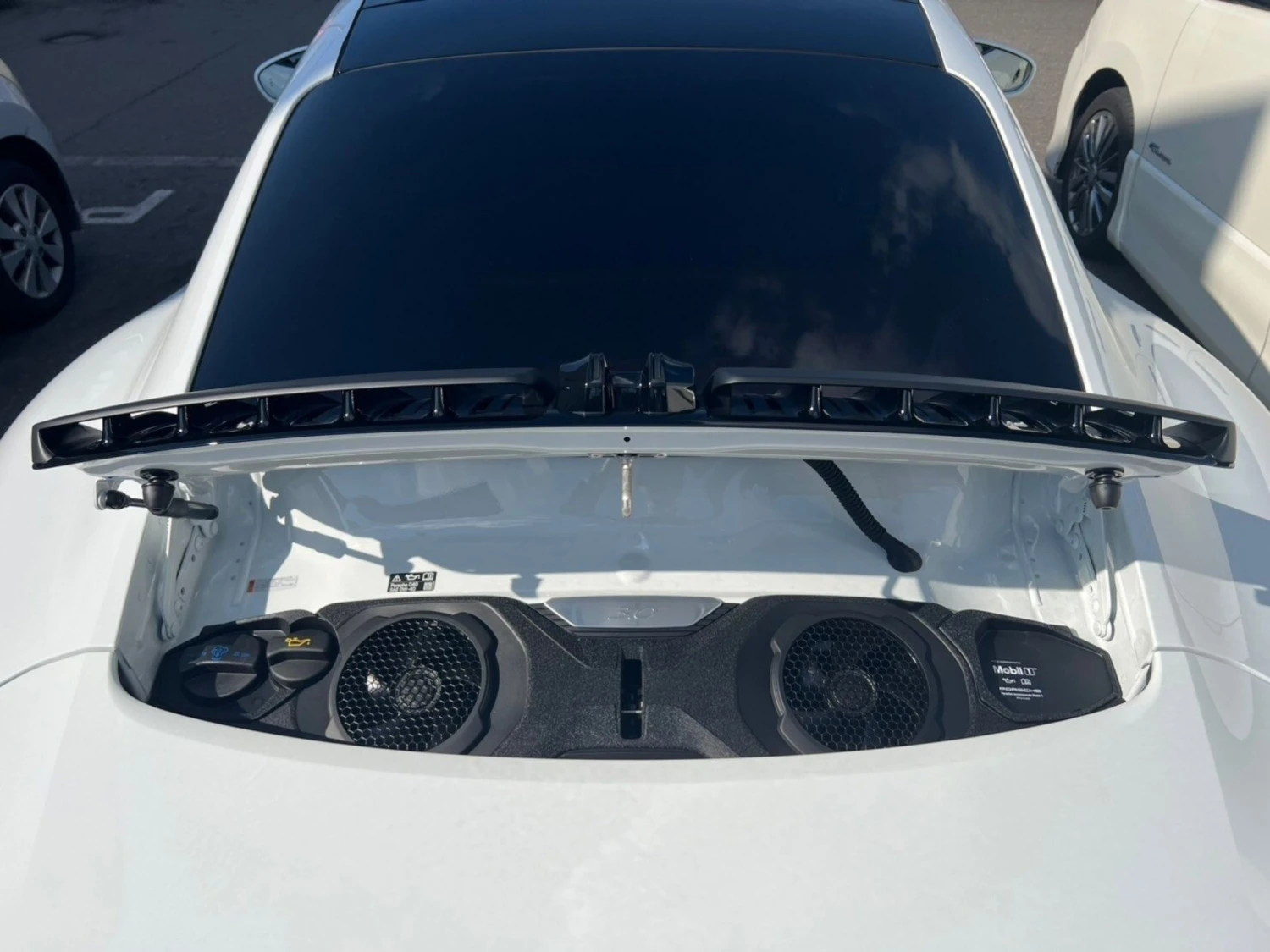 The White exterior highlights the timeless design of the 911 Targa. Adaptive LED headlights, distinctive Targa sliding glass roof, and 20/21-inch alloy wheels emphasize its sporty yet elegant character. The Sport Exhaust system enhances both sound and visual appeal.