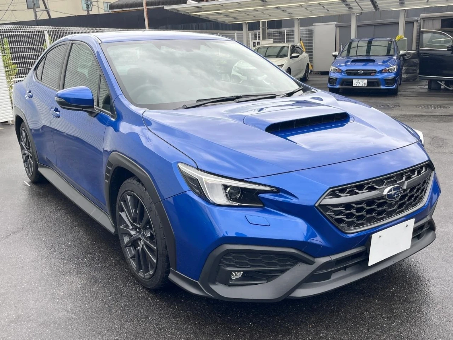 This Subaru WRX S4 GT‑H EX sedan combines aggressive, sporty styling with daily usability. Painted in a striking WR Blue Pearl, it features bold wide fenders, a functional hood scoop, sharp LED headlights, blacked‑out grille, and stylish alloy wheels. The EX package adds refined exterior accents and advanced lighting elements.