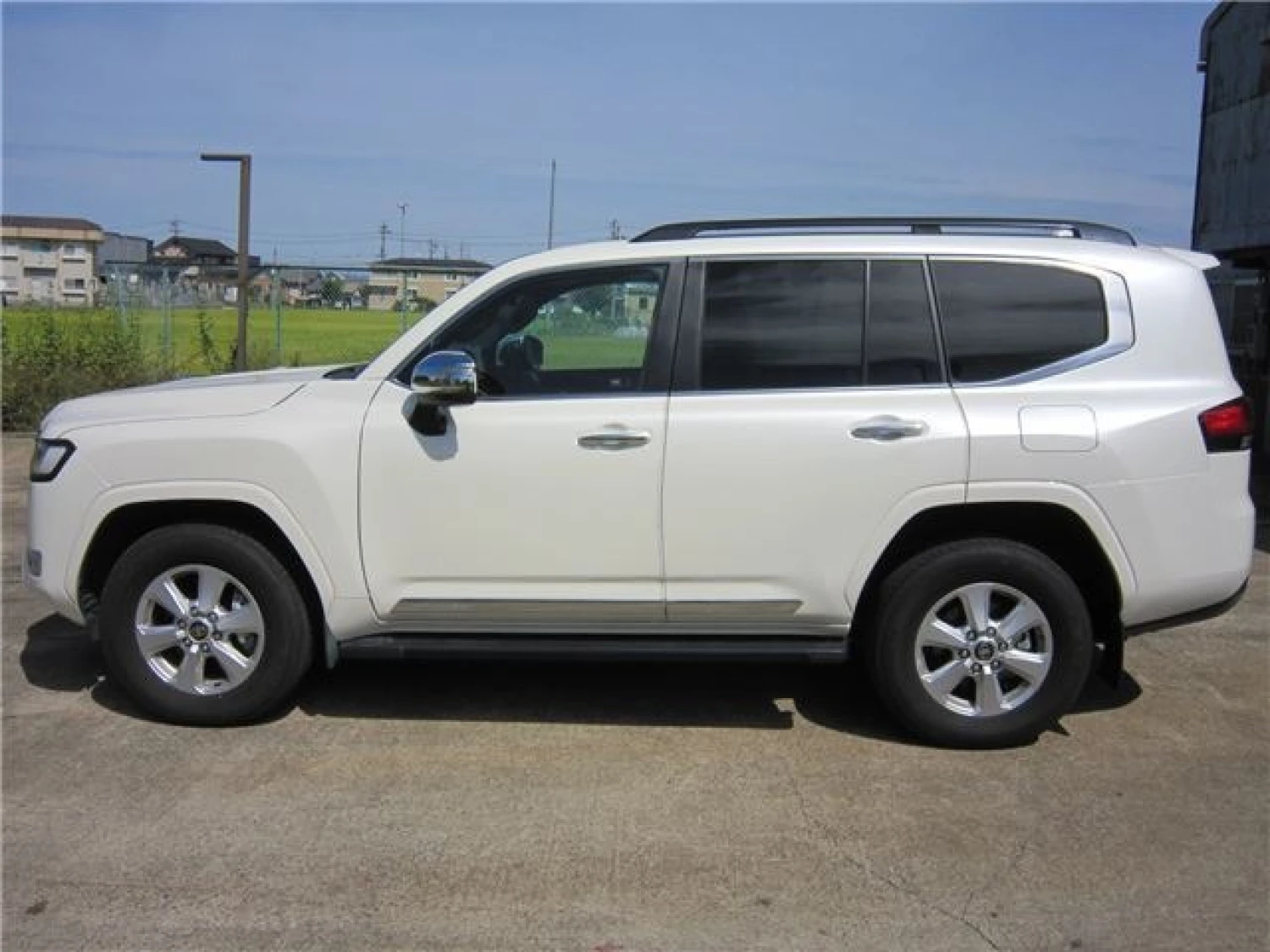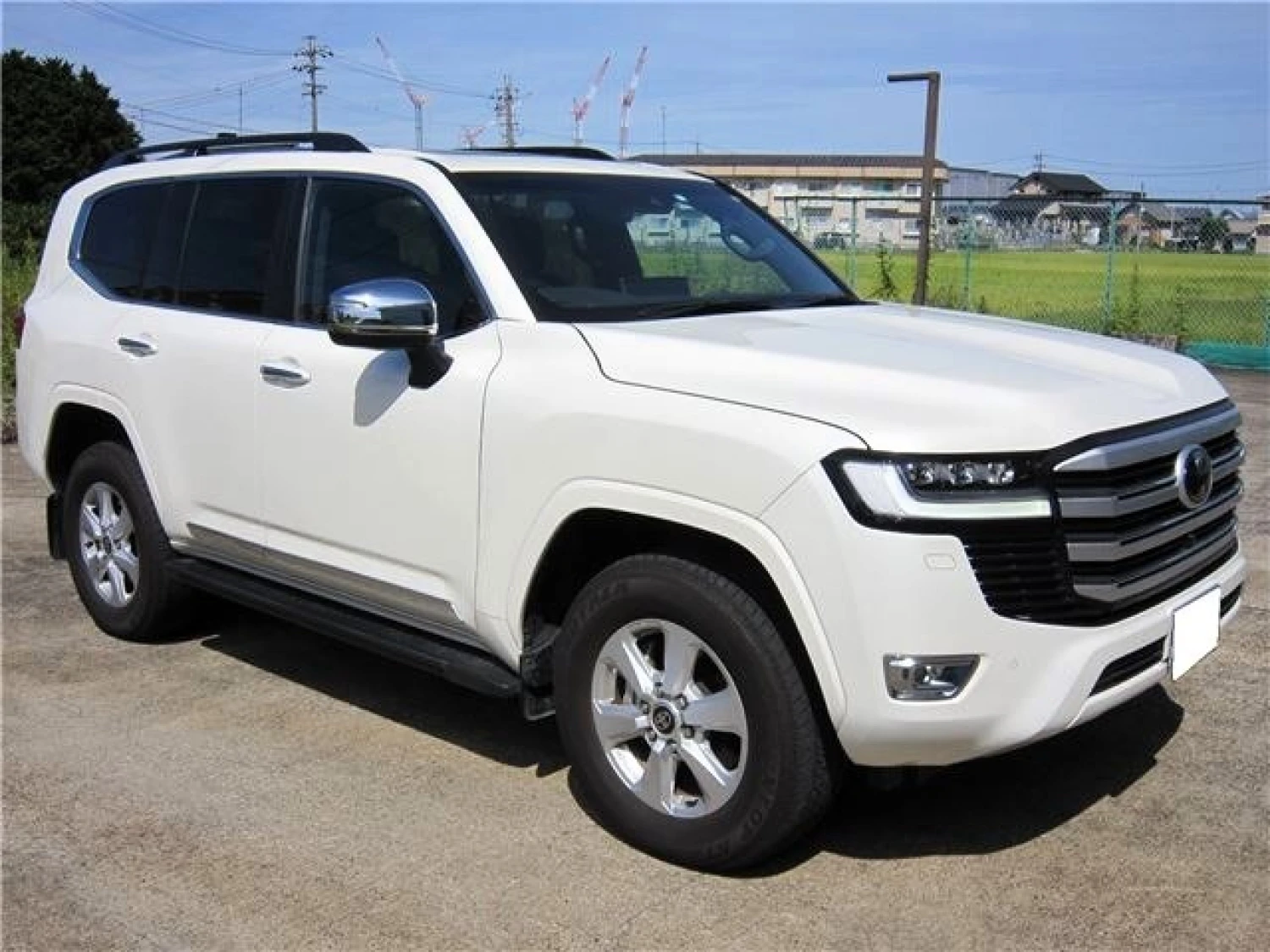 The exterior design showcases a powerful and commanding presence, staying true to the Land Cruiser heritage. Key highlights include an electric sunroof, black roof rails, and LED lighting. The Pearl White body emphasizes luxury and elegance, while balanced proportions make it a versatile premium SUV for any environment.