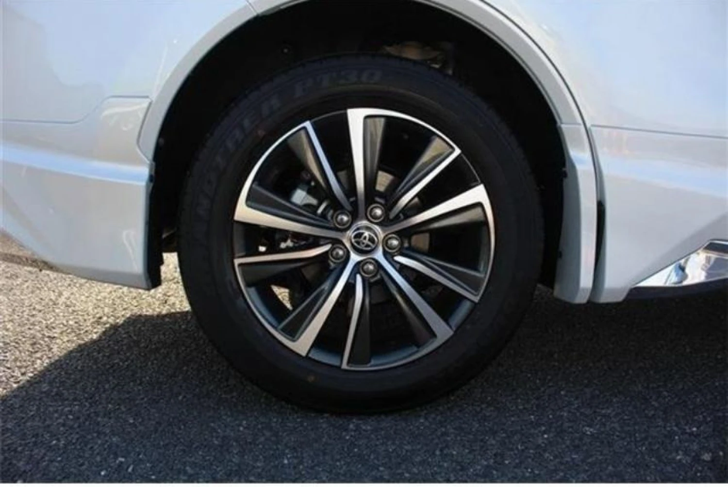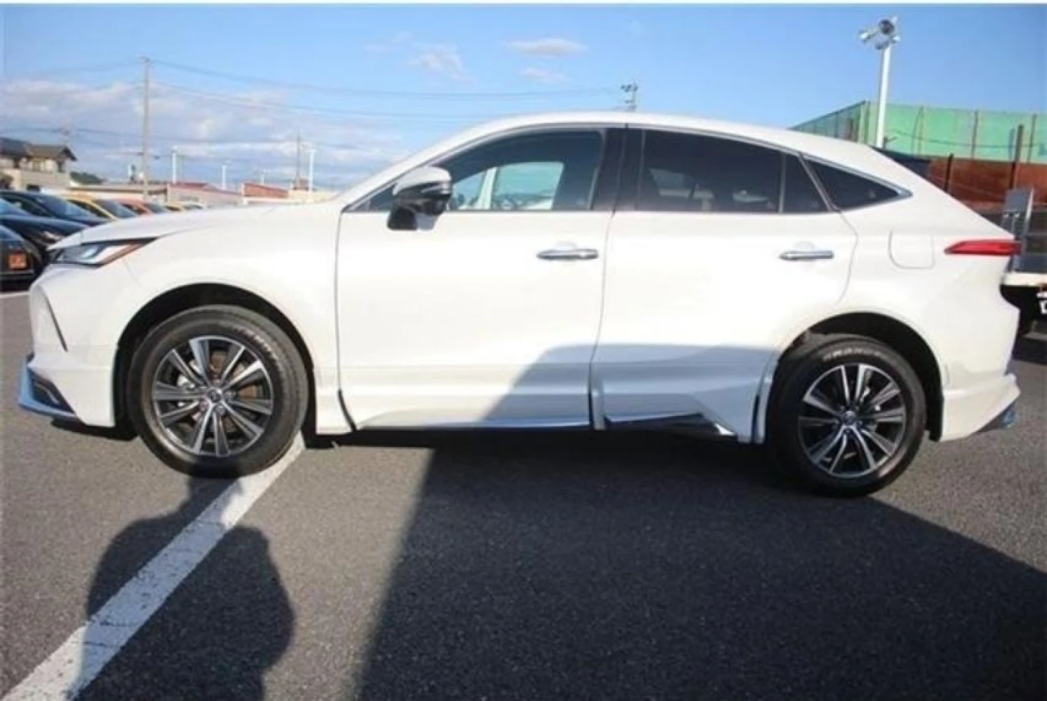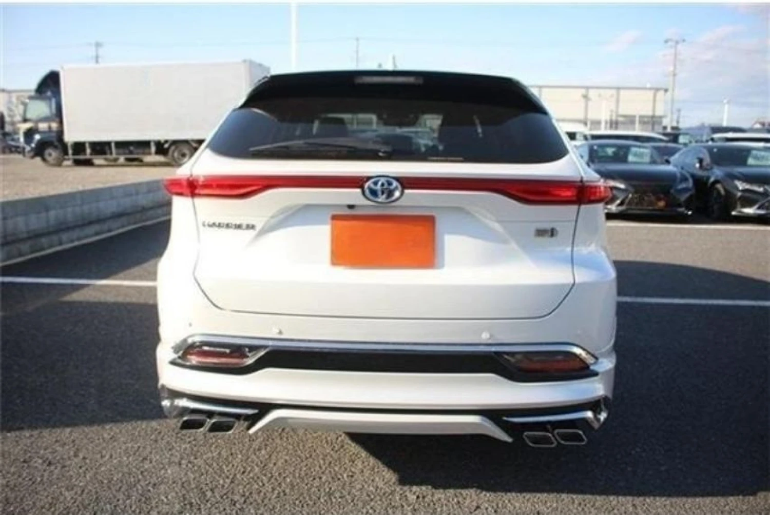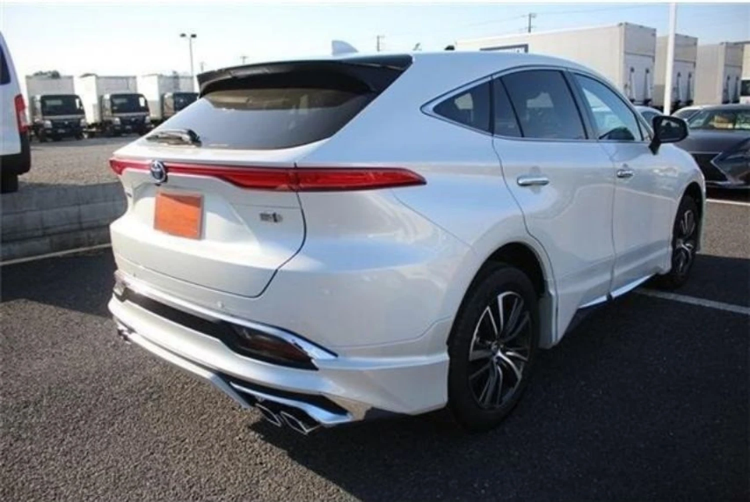 The Platinum White Pearl Mica color enhances the sleek and dynamic body lines of the Harrier. The Modellista aero kit adds a sporty and premium appearance, complemented by LED headlights, aluminum wheels, fog lamps, and a power tailgate for added convenience.