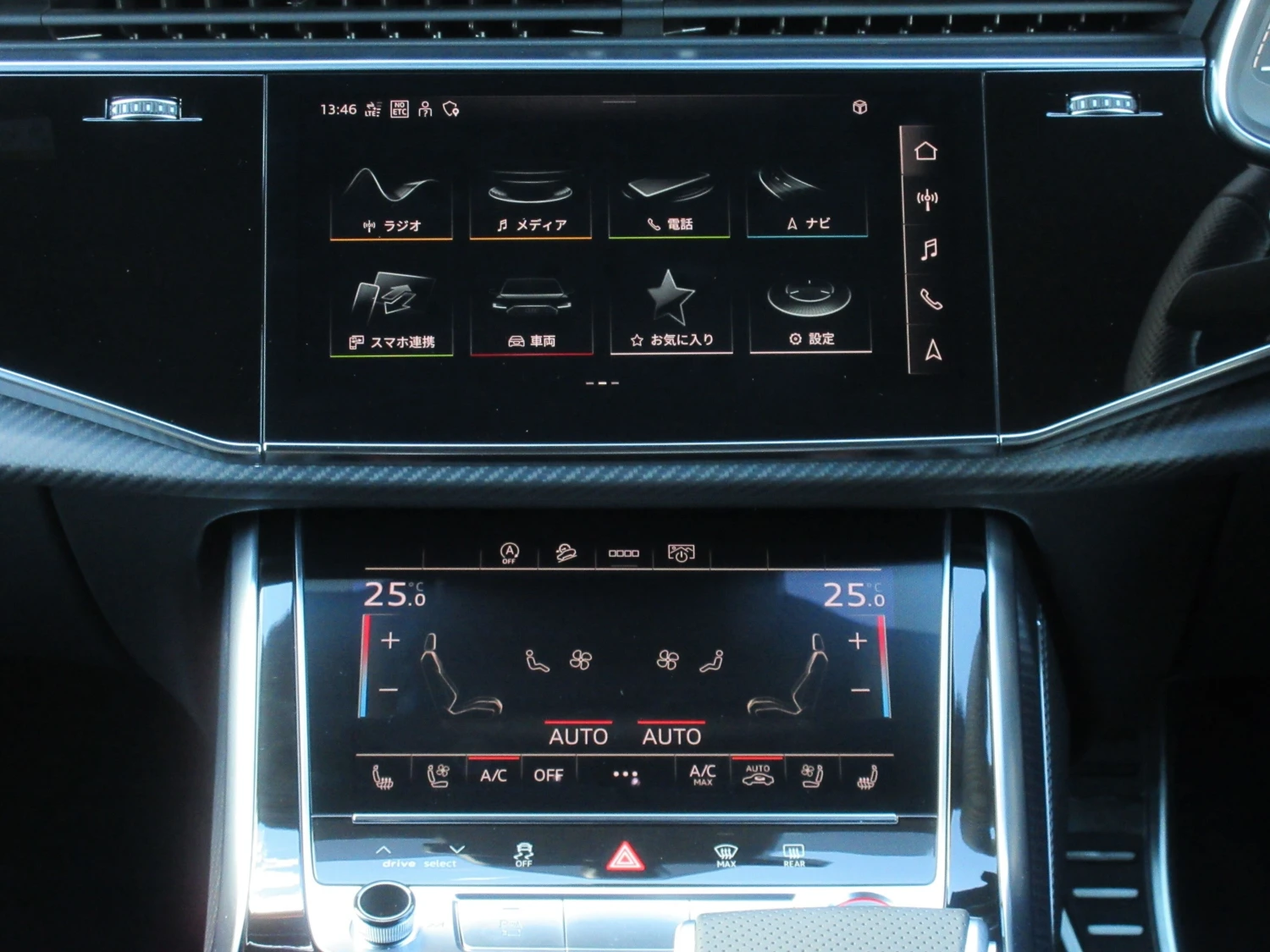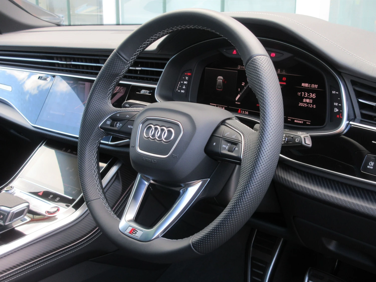 Полный привод Quattro, 8-ступенчатая АКПП Tiptronic с режимом MT, бензиновый двигатель 4000cc, усилитель руля, ABS, система предотвращения столкновений, адаптивный круиз-контроль, система удержания в полосе, парковочный ассистент, система предотвращения ошибочного нажатия педали, датчики препятствий, подушки безопасности (водителя/пассажира/боковые/шторки), камера кругового обзора, камеры передняя/боковая/задняя, мониторинг слепых зон и заднего трафика, система стабилизации, система Start/Stop, противоугонная система, автоматический дальний свет, двухзонный климат-контроль, навигация, ТВ Full-seg, подключение мультимедиа, ETC, пневмоподвеска (Advanced Suspension Package), поддержка Apple CarPlay и Android Auto, бесключевой доступ, смарт-ключ, электростеклоподъёмники, электропривод сидений, вентиляция и подогрев сидений, кожаный салон (Leather Package), адаптивные LED фары, панорамная стеклянная крыша, легкосплавные диски 22", цифровые OLED задние фонари