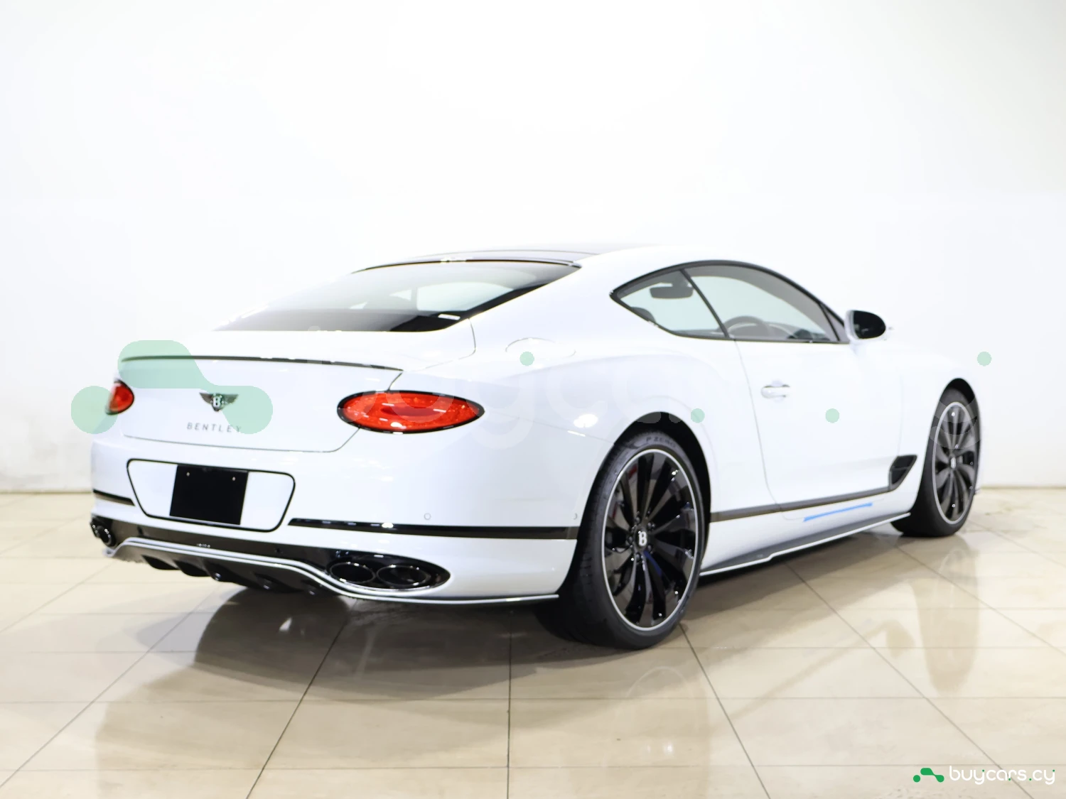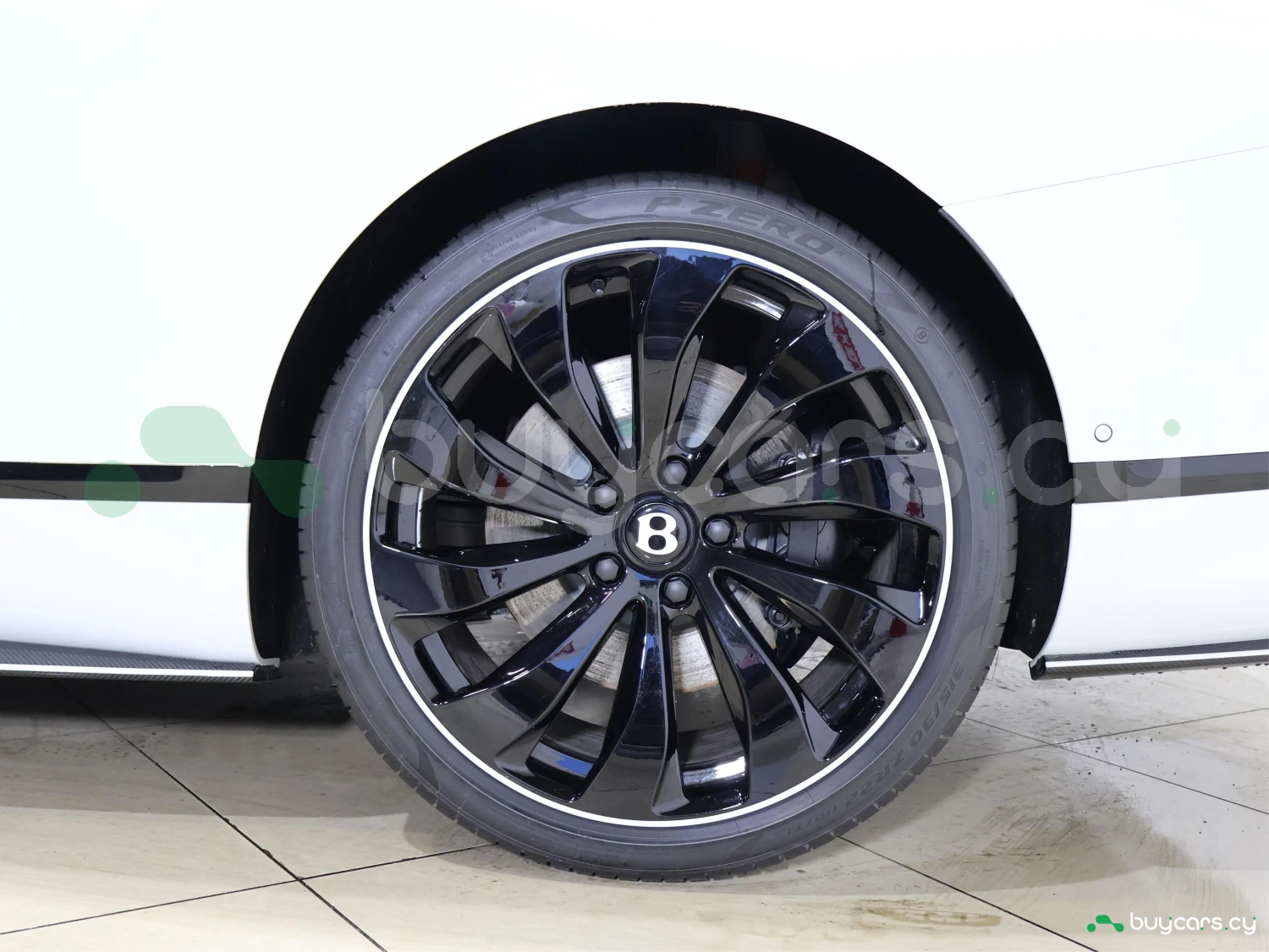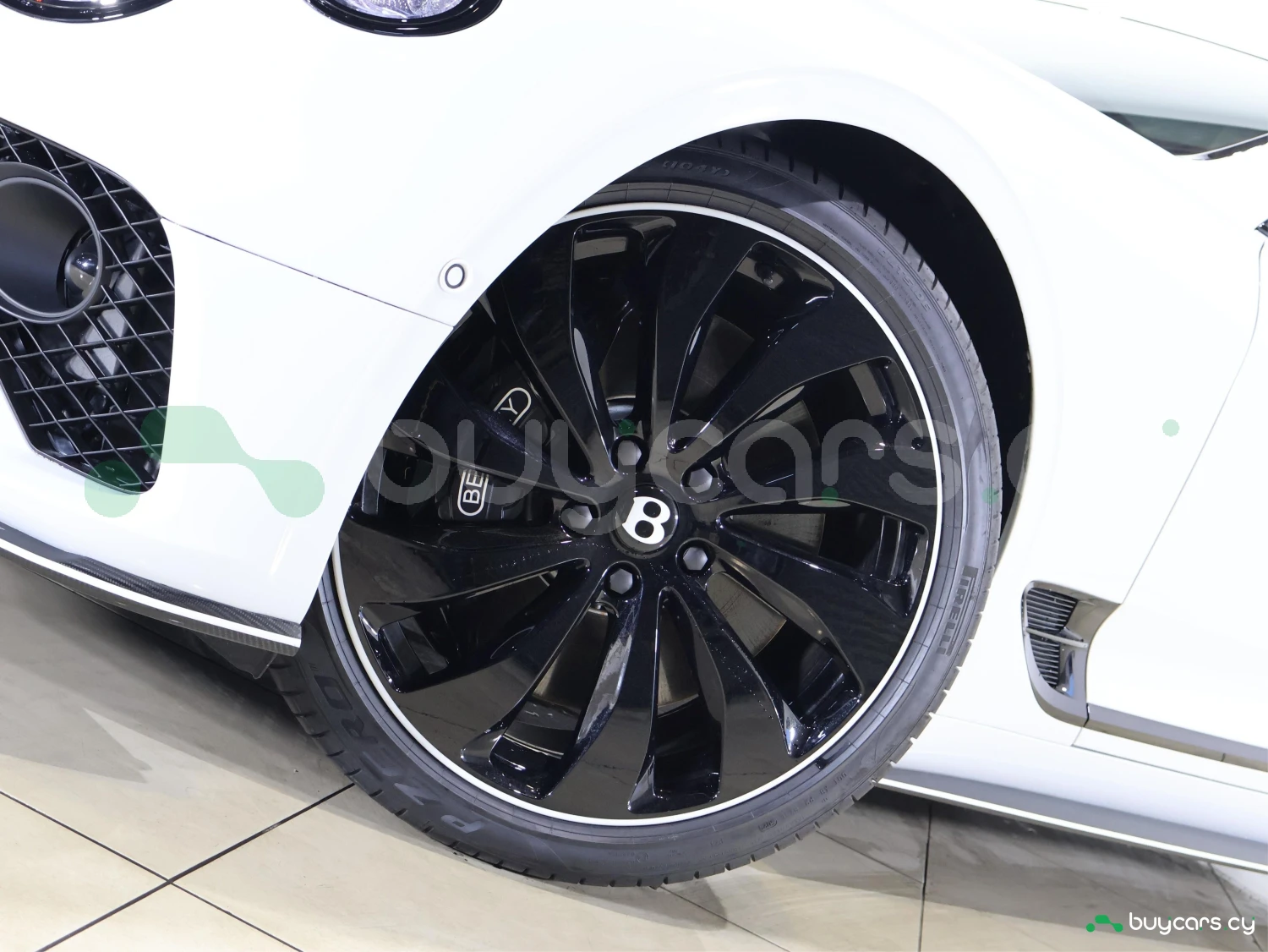 Кузов окрашен в цвет Arctica. Blackline Spec, карбоновые элементы Styling Spec, LED-оптика и оригинальные 22-дюймовые легкосплавные диски подчёркивают фирменный стиль Bentley.