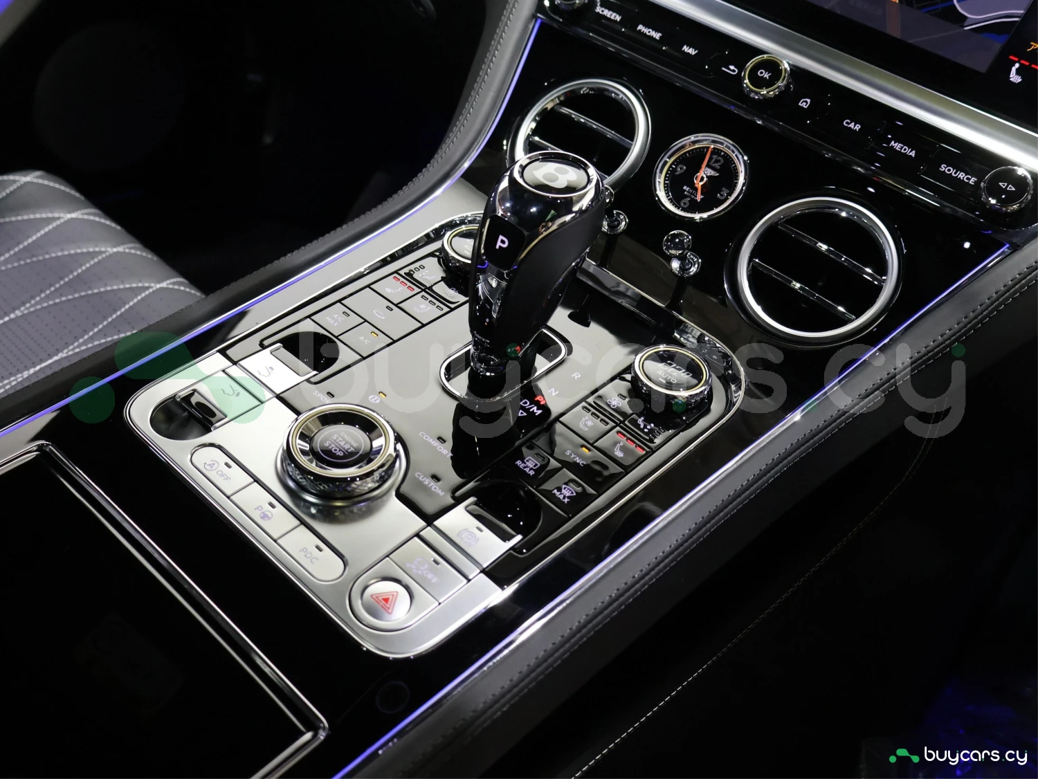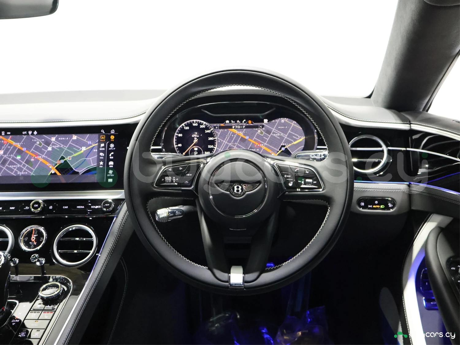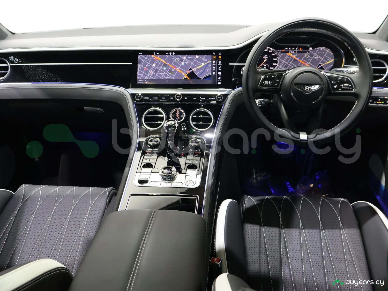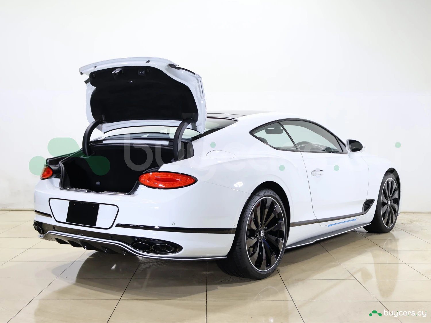 Кузов окрашен в цвет Arctica. Blackline Spec, карбоновые элементы Styling Spec, LED-оптика и оригинальные 22-дюймовые легкосплавные диски подчёркивают фирменный стиль Bentley.