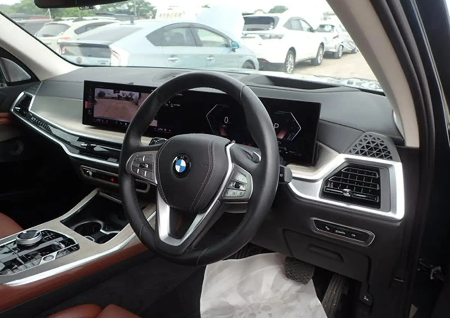 Салон X7 выполнен с исключительным вниманием к деталям. Комфортные кожаные сиденья с вентиляцией и функцией массажа, а также пятизонный климат-контроль создают идеальные условия для всех пассажиров. Элементы отделки, такие как кристаллические органы управления CraftedClarity, атмосферная подсветка салона и двери с доводчиками (Soft-Close), подчёркивают высокий уровень исполнения. Регулируемые по температуре подстаканники, шторки на задних окнах и система бесключевого доступа Comfort Access дополняют премиальный уровень комфорта, а матовая древесная отделка придаёт салону светлый и утончённый характер.