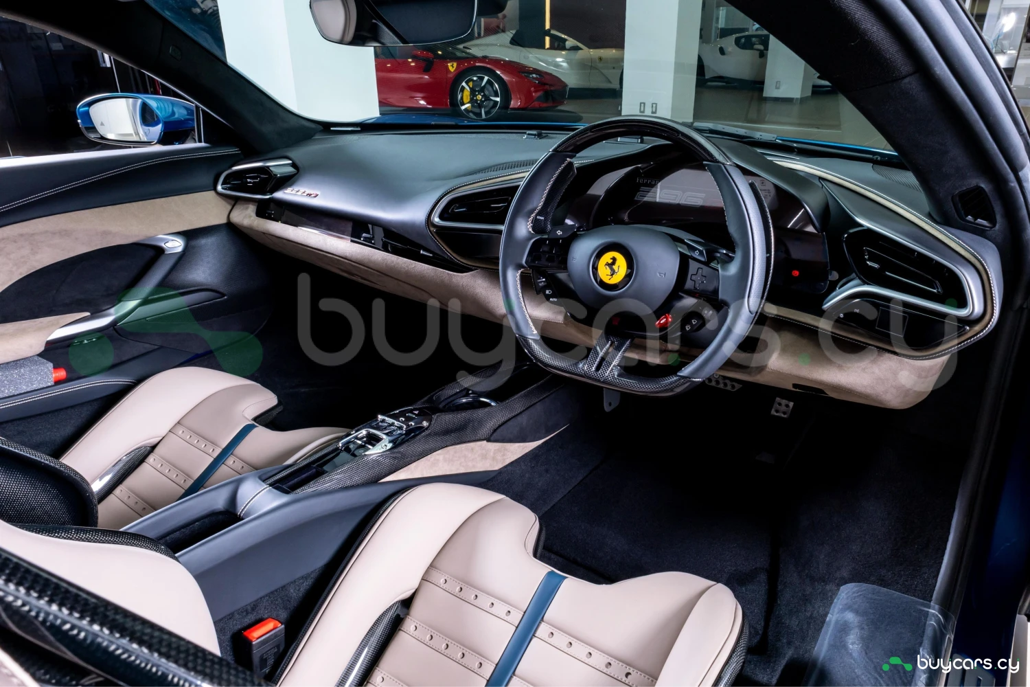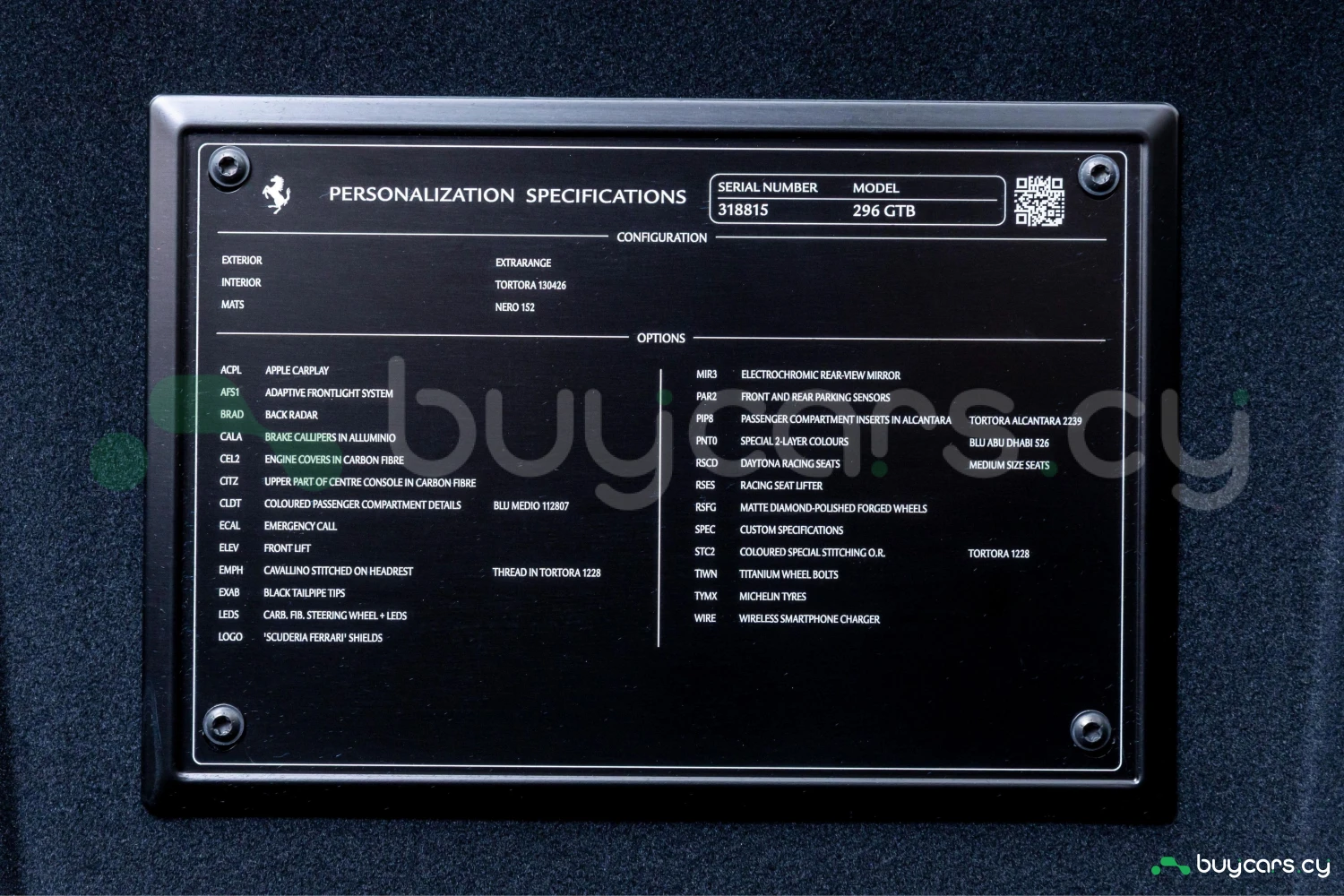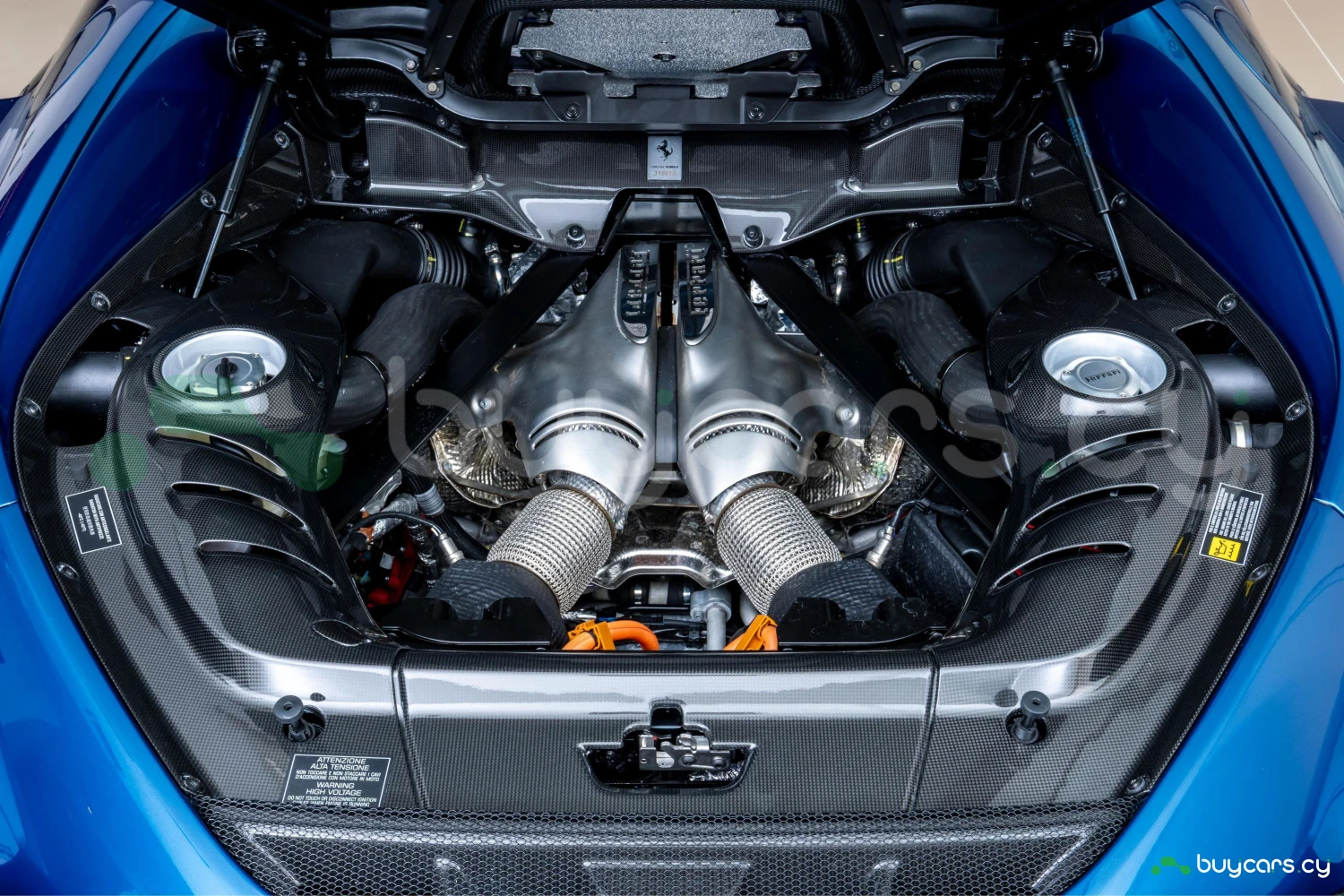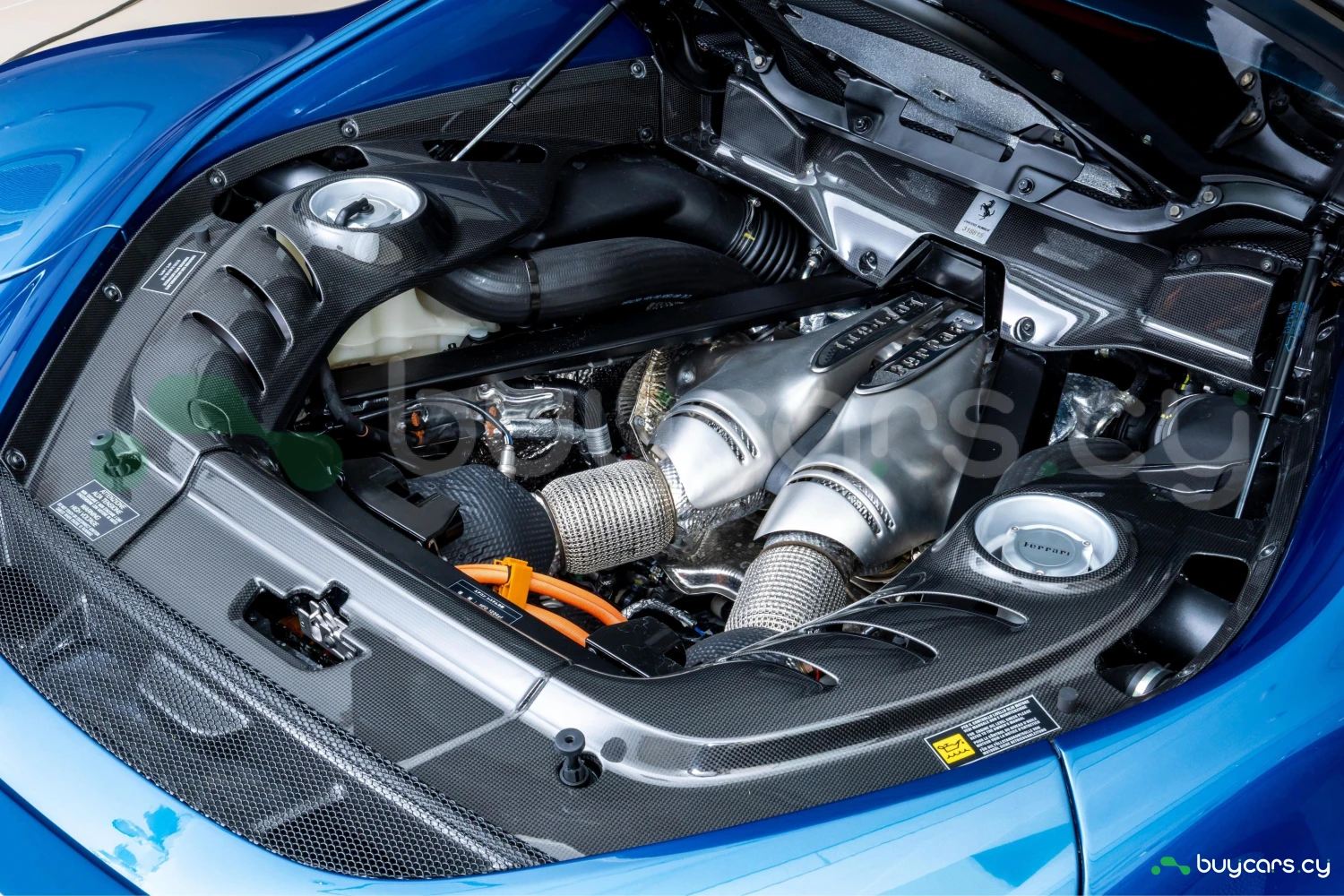 2-дверное купе, 2 места, гибридная силовая установка с бензиновым двигателем V6 Twin-Turbo 3000cc (Plug-in Hybrid), роботизированная коробка передач F1 DCT (8AT), задний привод (2WD), правый руль, эксклюзивный цвет Blu Abu Dhabi, усилитель руля, ABS, круиз-контроль, датчики препятствий, подушки безопасности Driver/Passenger/Side, система стабилизации, противоугонная система, автоматический дальний свет, адаптивные светодиодные фары, система подъёма передней оси (Suspension Lifter), карбоновые элементы экстерьера и интерьера, карбоновый центральный тоннель, карбоновый руль с LED-индикаторами переключения передач (Daytona), карбоновые спортивные сиденья Racing Seats, кожаный салон, двухзонный климат-контроль, мультимедийная система с Apple CarPlay / Android Auto, навигационная система, музыкальный сервер, поддержка смартфона, ETC, бесключевой доступ, Smart Key, электростеклоподъёмники, легкосплавные диски, переход гарантии Ferrari (Warranty Succession).