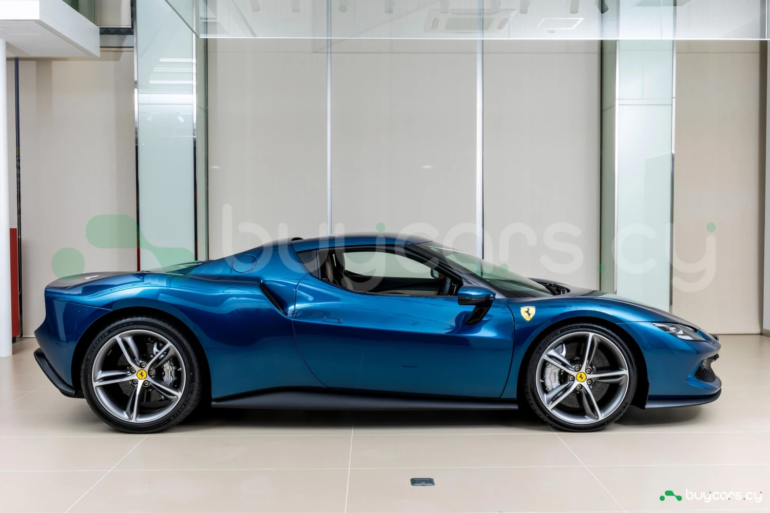 Аэродинамичный кузов Ferrari 296 GTB выполнен в эксклюзивном цвете Blu Abu Dhabi, подчёркивающем его динамичные линии и агрессивный характер. Карбоновые элементы, адаптивные светодиодные фары и лёгкосплавные диски усиливают спортивный облик, создавая эффектный и узнаваемый силуэт легендарного итальянского суперкара.