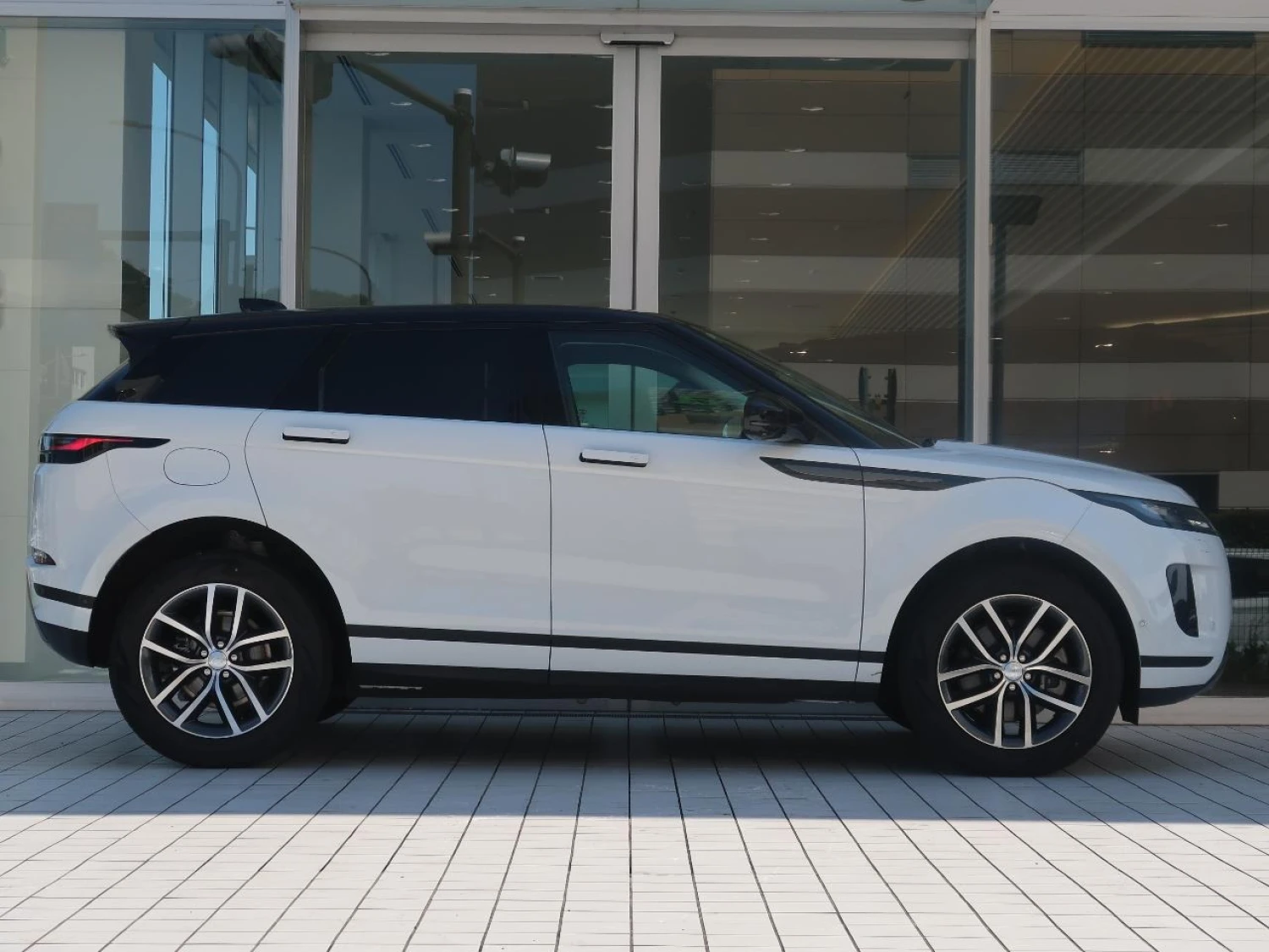 Стильный белый кузов подчёркивает купеобразный силуэт Evoque, дополненный премиальными 19-дюймовыми легкосплавными дисками и фирменной светодиодной оптикой. Чистые линии и современные акценты формируют выразительный и узнаваемый облик внедорожника.