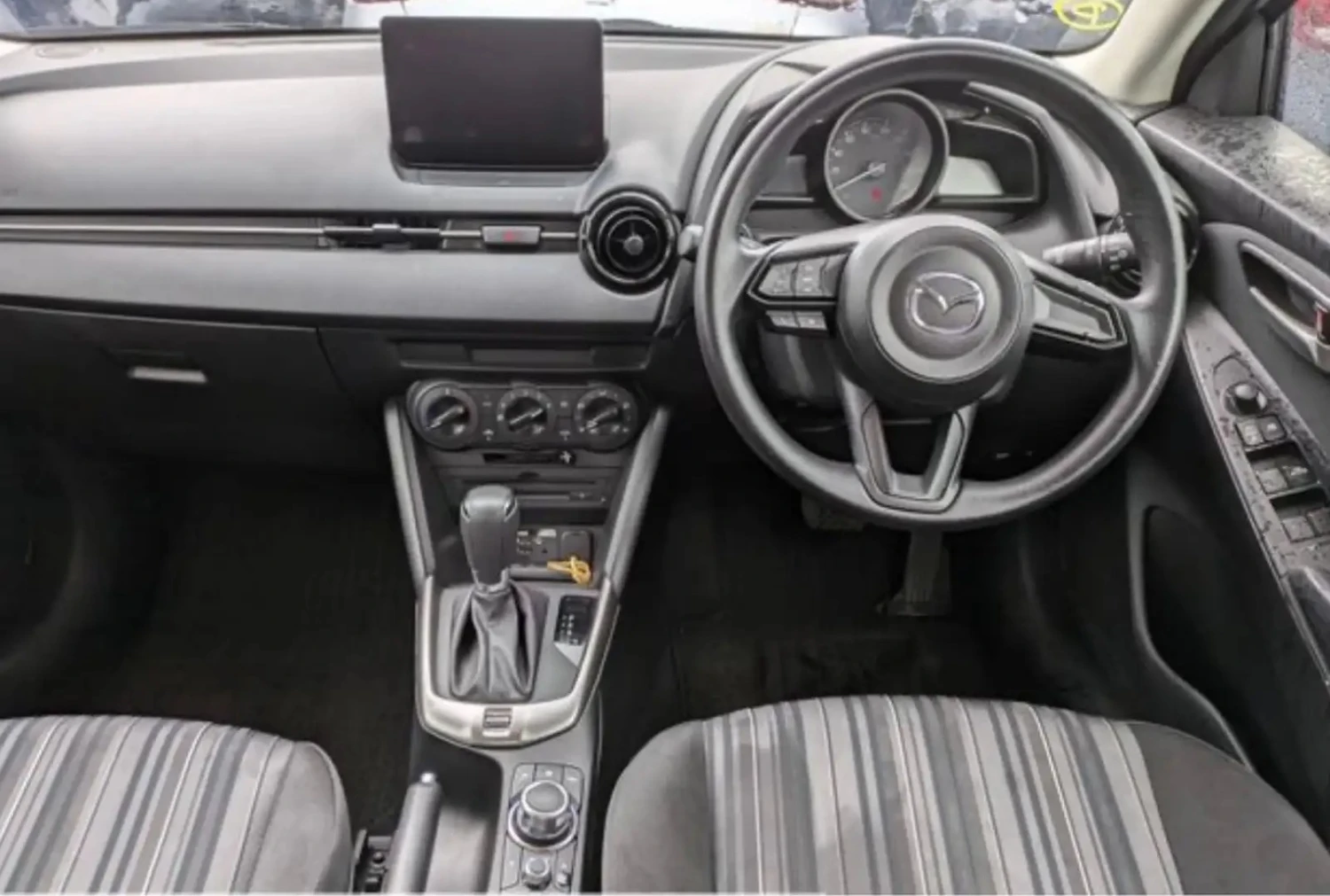 Салон Mazda 2 сочетает эргономику и современный стиль. В оснащение входят бесключевой запуск, регулируемое по высоте и вылету рулевое колесо, кондиционер, электростеклоподъёмники, мультимедийная система с 8-дюймовым цветным дисплеем, поддержка Apple CarPlay и Android Auto. Несмотря на компактные размеры, салон просторен и рассчитан на 5 пассажиров, обеспечивая комфорт и удобство в повседневных поездках.