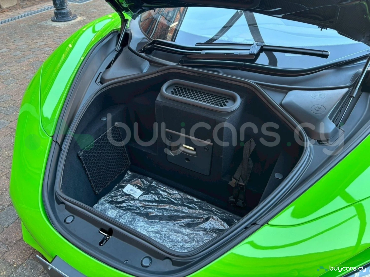 Аэродинамичный дизайн McLaren 750S Spider подчёркнут ярким цветом Mantis Green и пакетом Black Pack Exterior. Карбоновые элементы, карбон-керамические тормоза, спортивный выхлоп и лёгкосплавные диски усиливают динамичный и агрессивный характер автомобиля, а складная жёсткая крыша превращает его в захватывающий открытый суперкар.