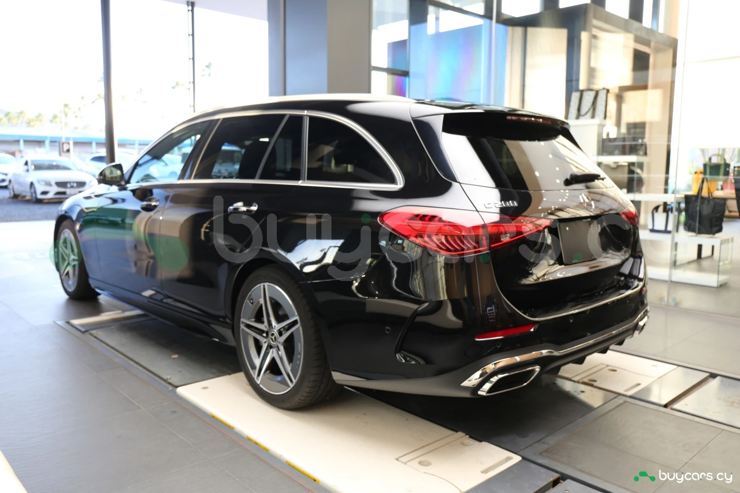 Кузов окрашен в Obsidian Black и дополнен элементами стиля AMG Line. Функциональные особенности, такие как сдвижная крыша, автоматический дальний свет и камера 360°, подчёркивают современный дизайн универсала.
